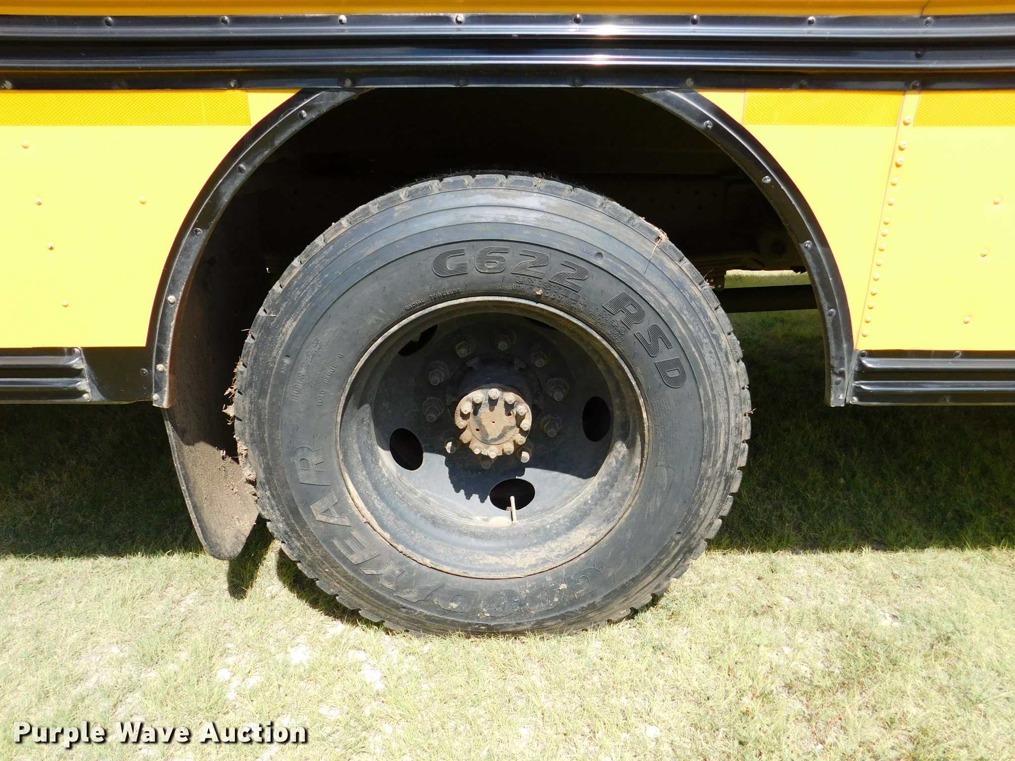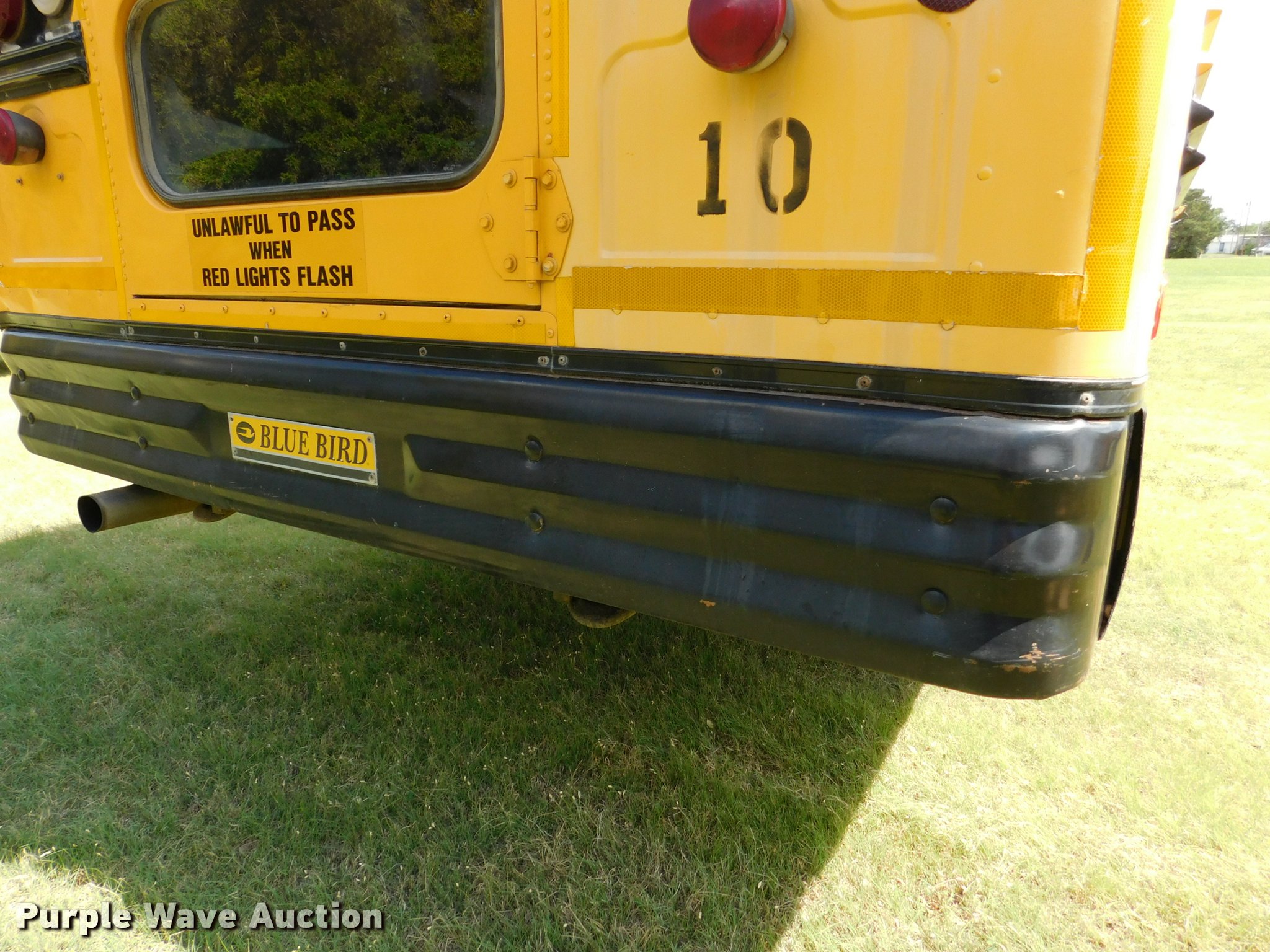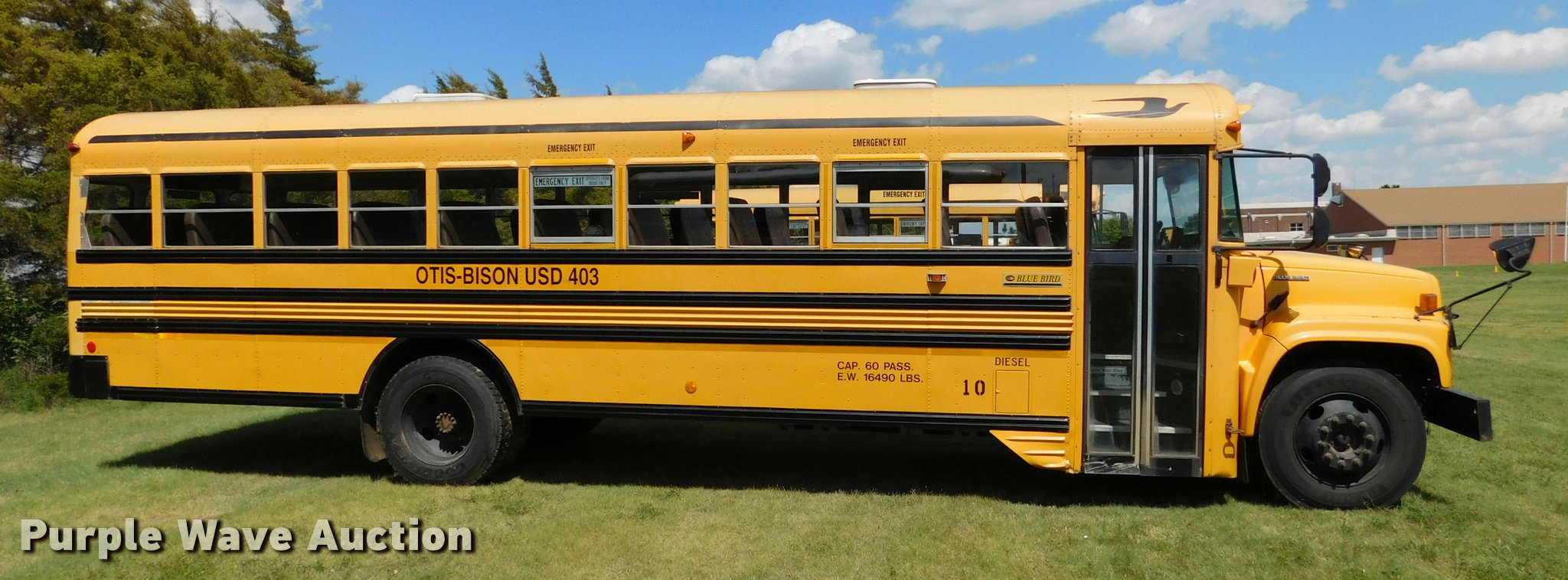 Purple Wave is selling a used Bus in Kansas. This item is a 2001 Chevrolet B7 Blue Bird school bus with the following: 147,107 miles on odometer, Caterpillar 3126 C7 7.2L six cylinder turbo diesel engine, Serial 8YL75205, Automatic transmission, Heat, AM/FM, Block heater, Backup alarm, 59 passenger capacity, Ceiling, rear, and side emergency exits, Emergency door alarms, Lighted stop sign, Front and rear tow hooks, Approximately 238" wheelbase, Spring suspension, Hydraulic brakes, 10R22.5 tires, GVWR 28,000 lbs, ABS light on, Possible front end issues, Unit# 10
