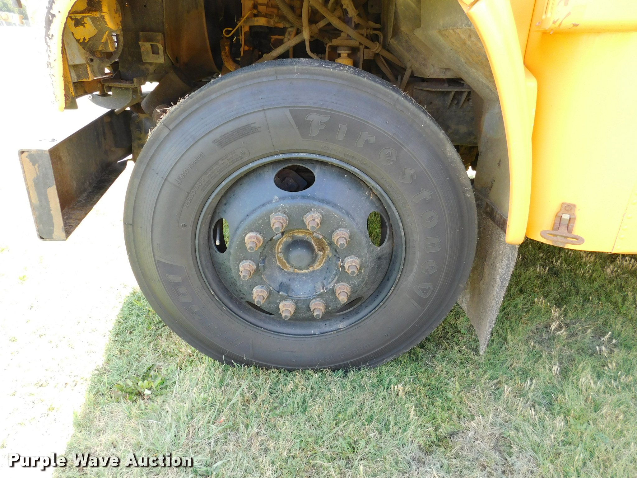 2001 Chevrolet B7 Blue Bird school bus. 147,107 miles on odometer, Caterpillar 3126 C7 7.2L six cylinder turbo diesel engine Serial 8YL75205, Automatic transmission, Heat, AM/FM, Block heater, Backup alarm, 59 passenger capacity, Ceiling, rear, and side emergency exits, Emergency door alarms, Lighted stop sign, Front and rear tow hooks, Approximately 238" wheelbase, Spring suspension, Hydraulic brakes, 10R22.5 tires, GVWR 28,000 lbs, ABS light on, Possible front end issues, Unit# 10. Kansas title. 1GBL7T1C7YJ527028. USD 403 Otis Bison. 301 Eagle Ave. Otis, KS 67565