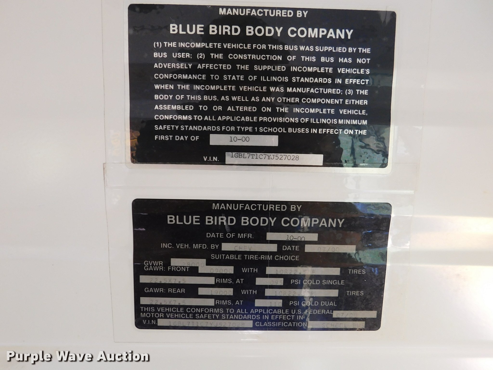 Take a look at this used 2001 Chevrolet B7 Blue Bird school bus being sold on August 8th, 2017 in the SOLD! August 8 Government Auction made by Chevrolet. Take a look at all of the item information below or take a look at similar auctions for Transit Vehicles.