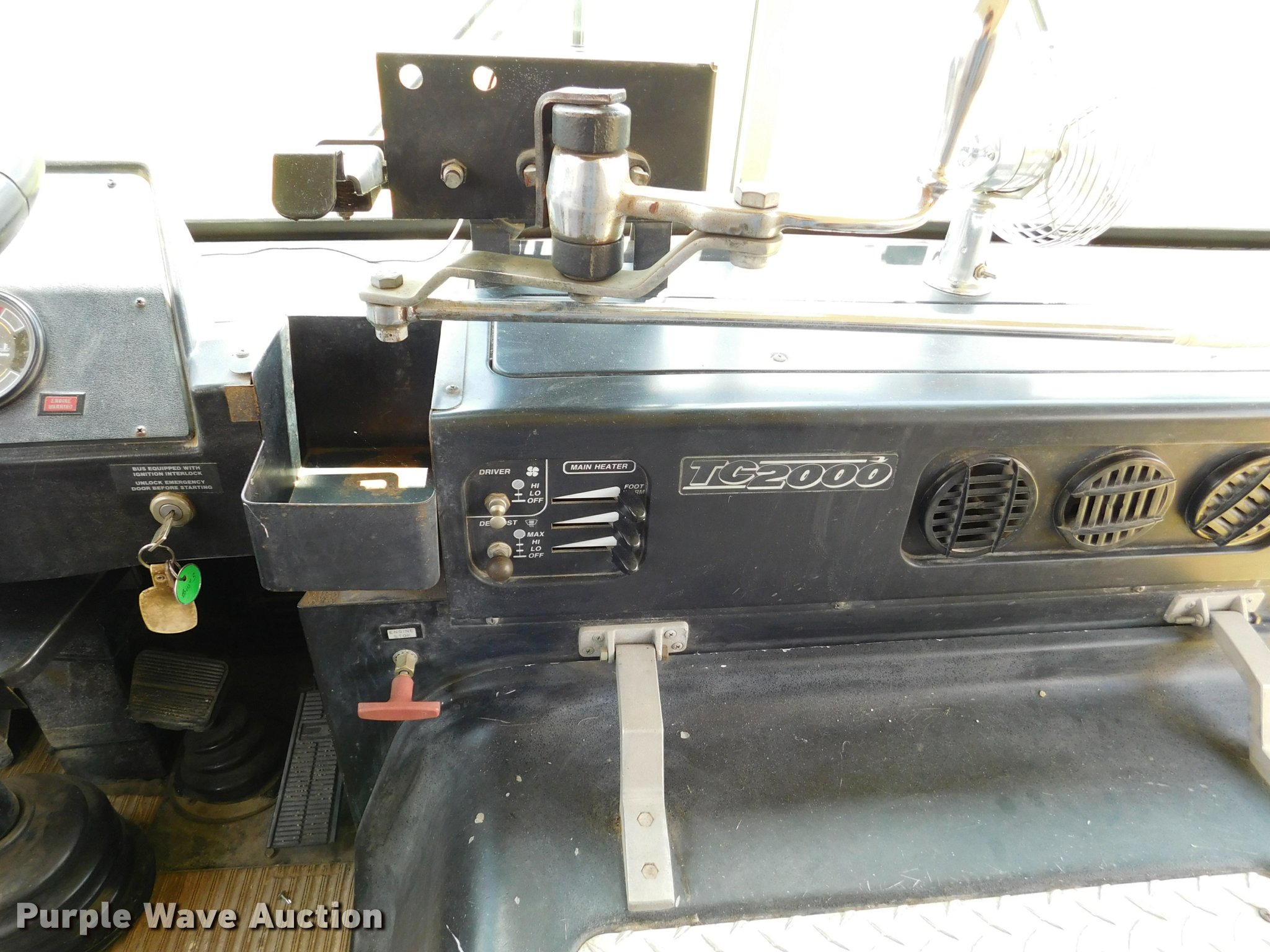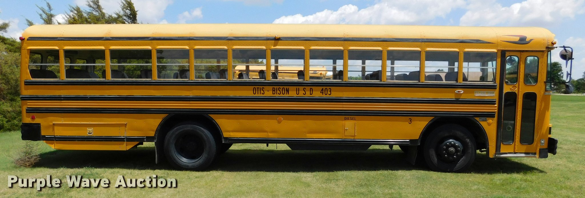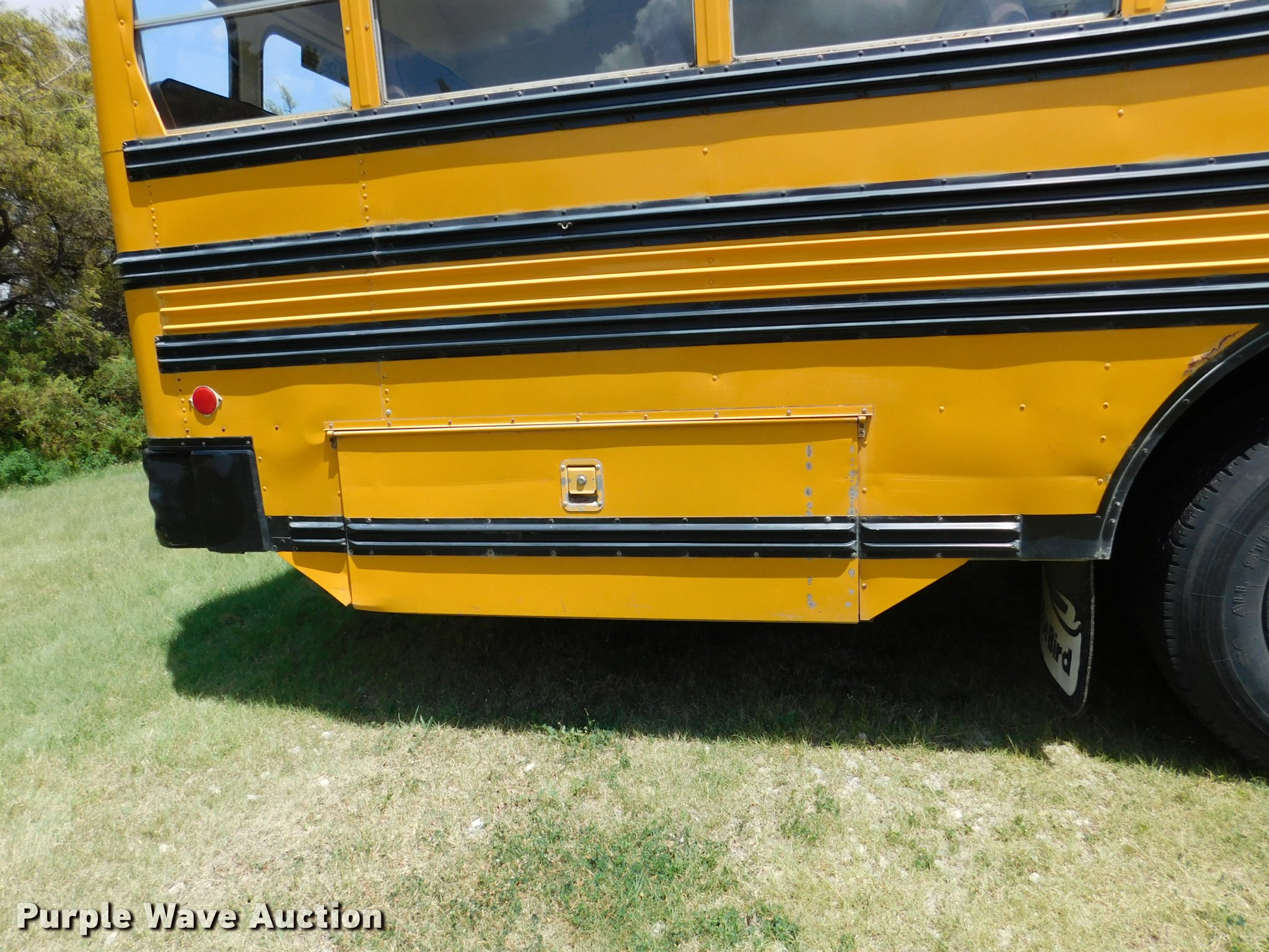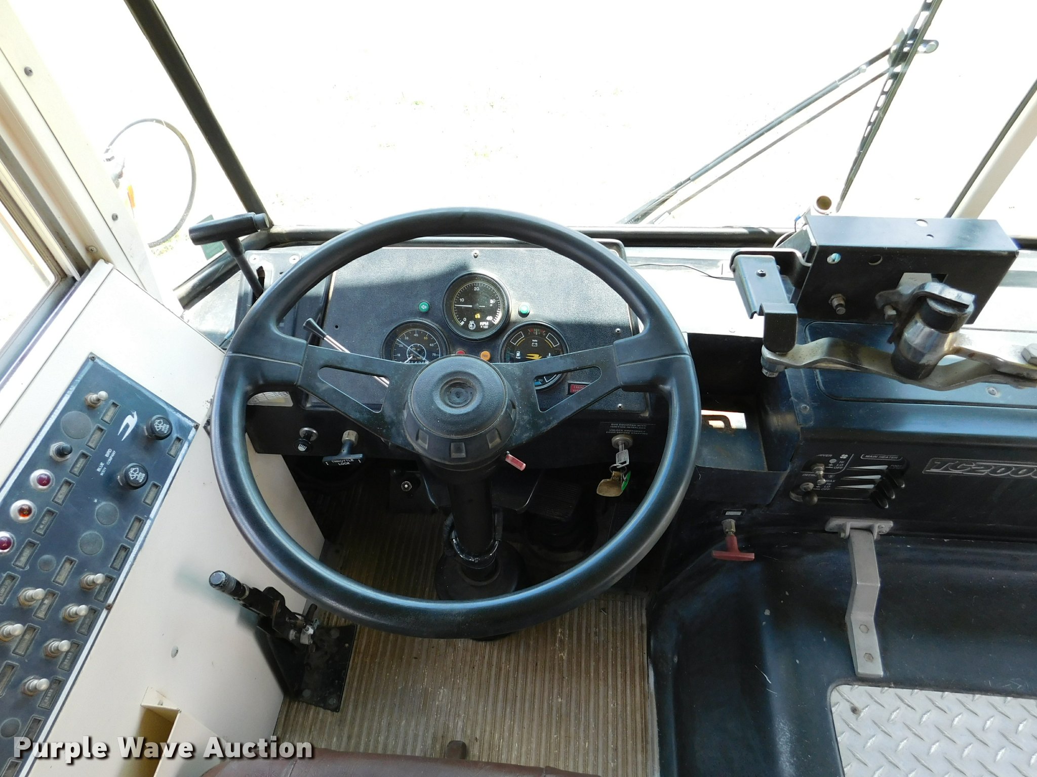 Purple Wave is selling a used Bus in Kansas. This item is a 1992 Blue Bird TC2000 school bus with the following: 21,437 miles on odometer, 178,730 miles on odometer prior to replacement, Cummins 5.9L L6 turbo diesel engine, Automatic transmission, Heat, AM/FM/cassette, Block heater, Backup alarm, Rear emergency exits, Emergency door alarms, Underside luggage storage, Front and rear tow hooks, Spring suspension, Hydraulic brakes, 10R22.5 tires, GVWR 27,800 lbs, Unit# 3