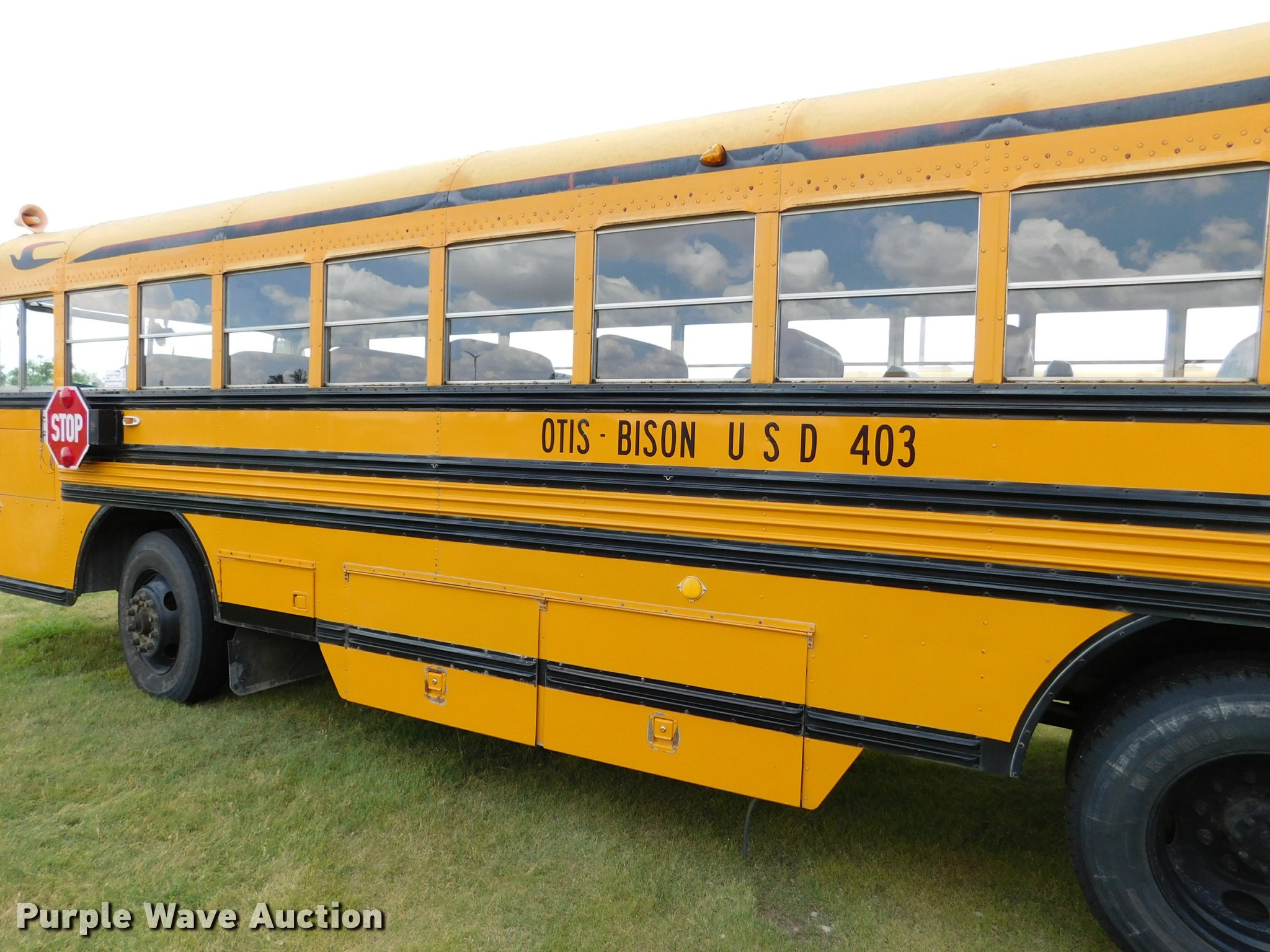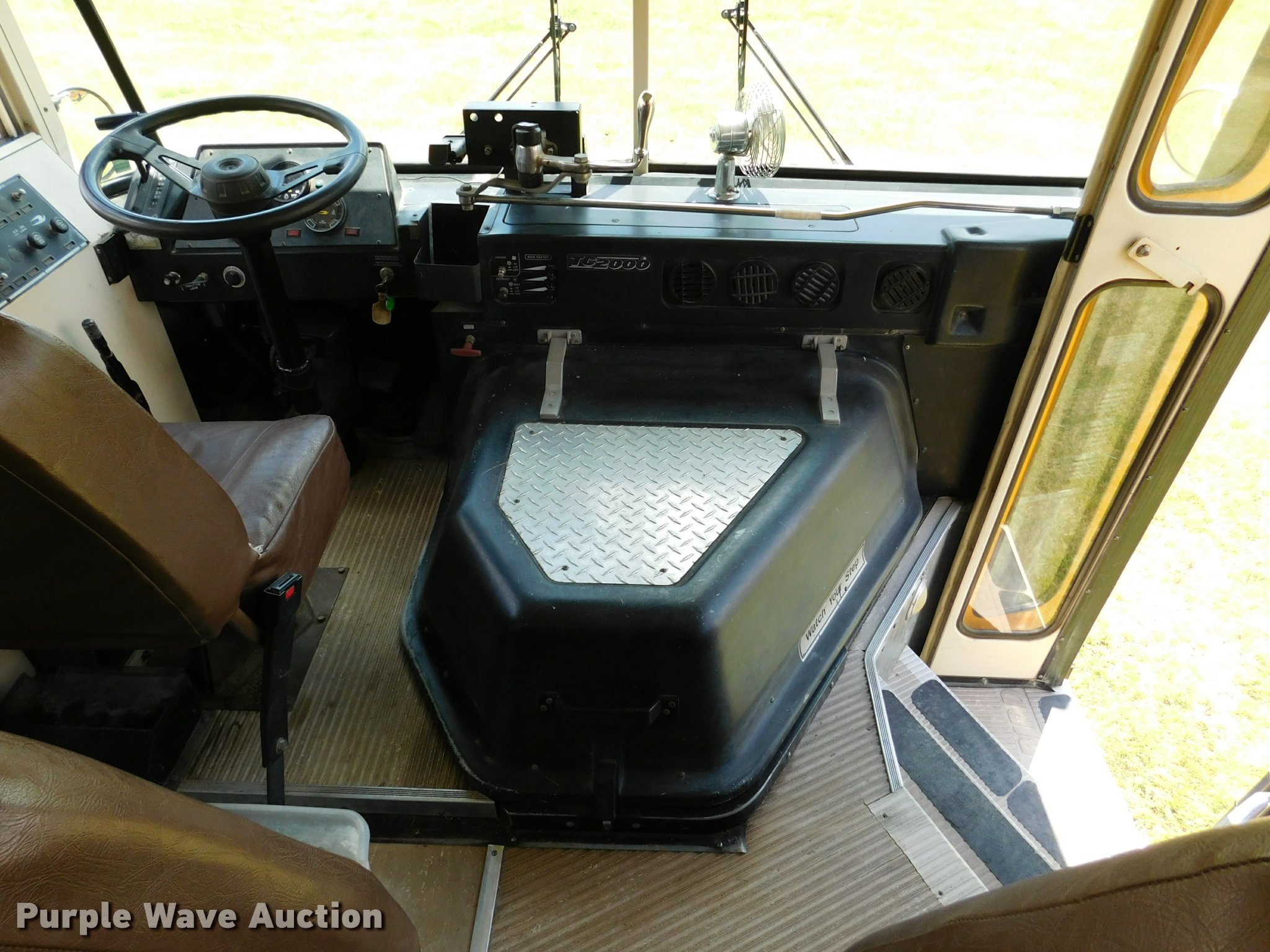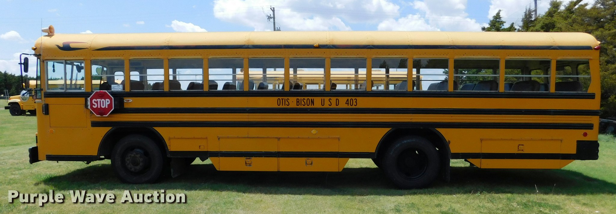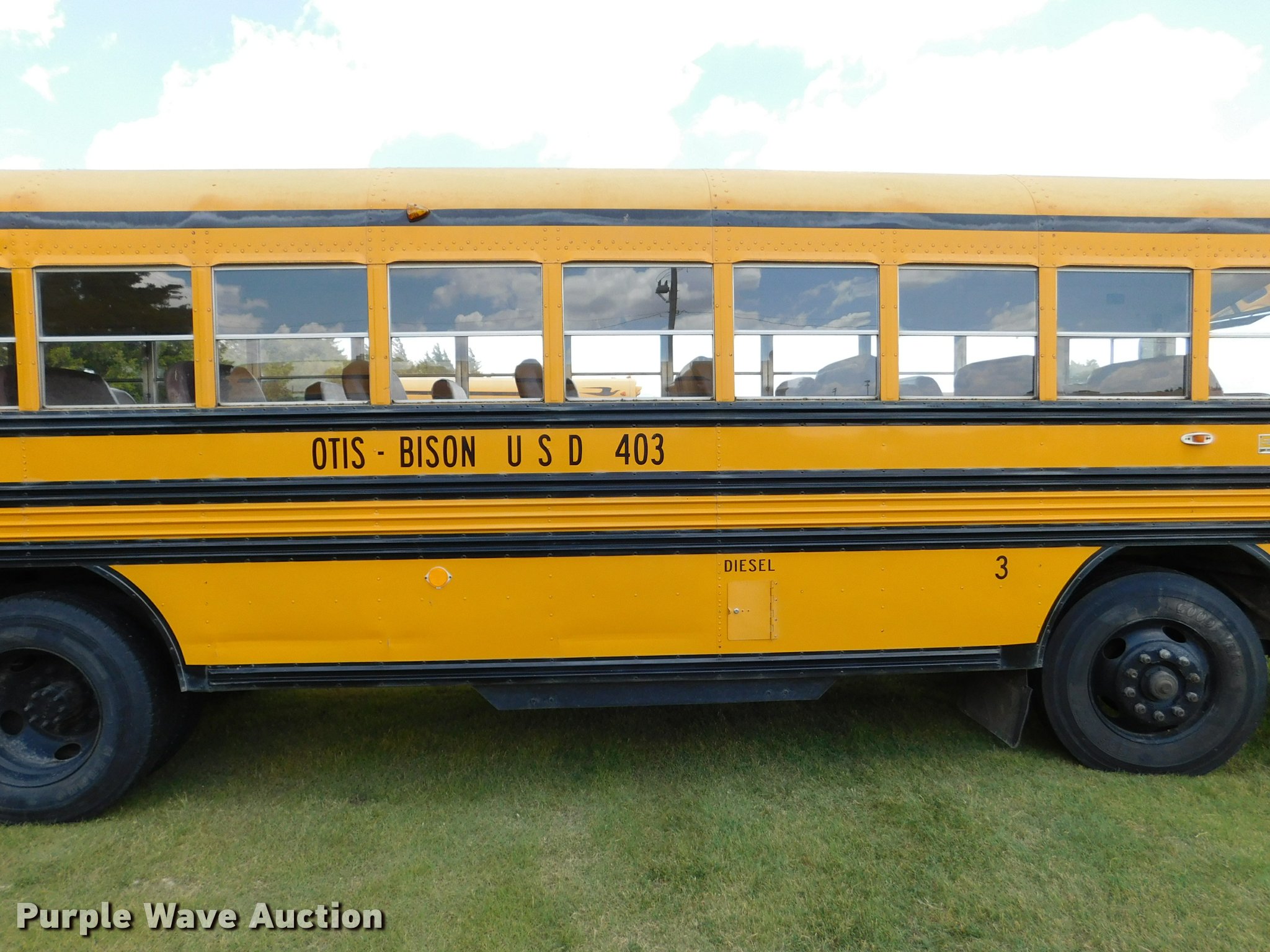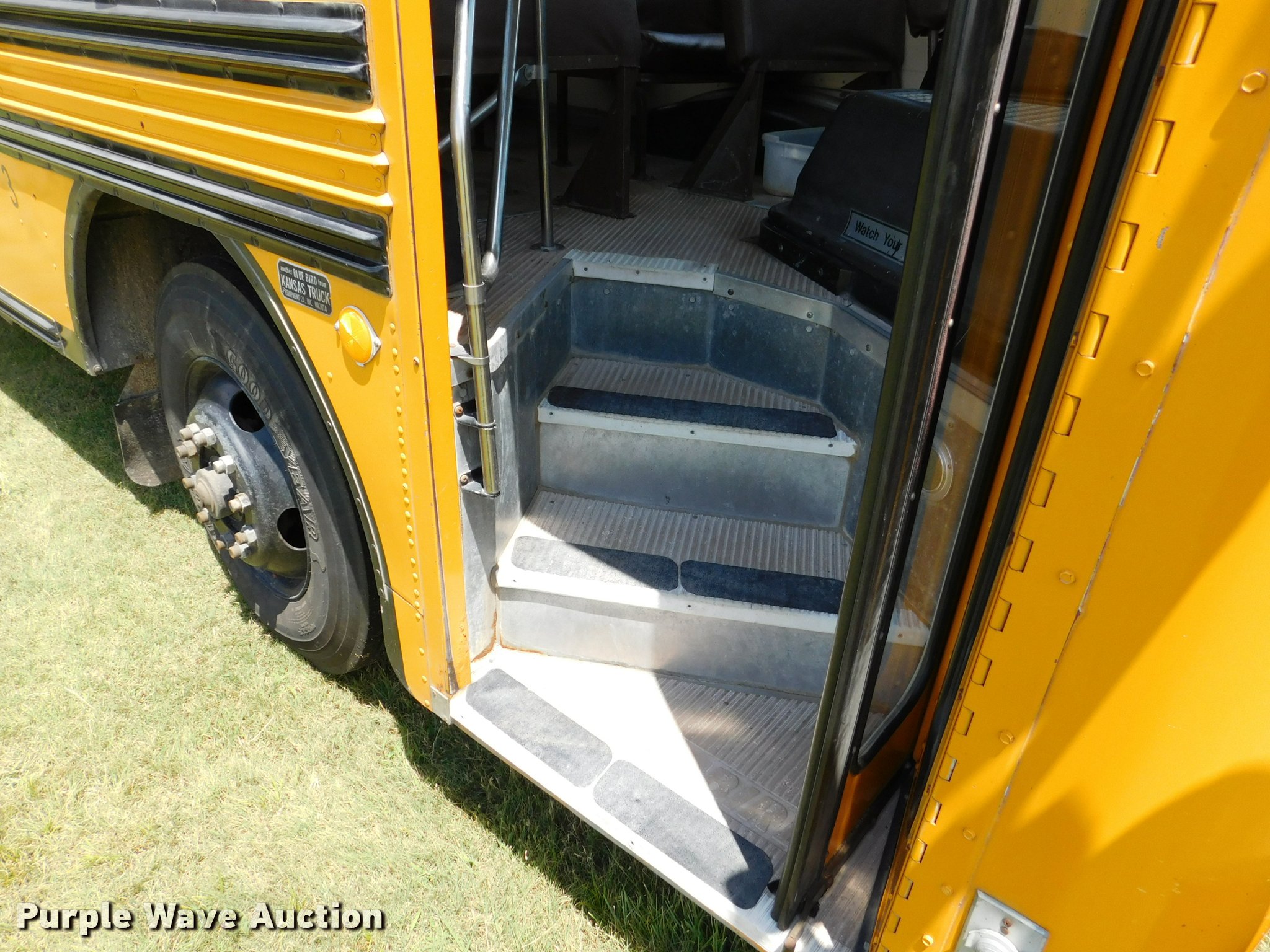 Purple Wave is selling a used Bus in Kansas. This item is a 1992 Blue Bird TC2000 school bus with the following: 21,437 miles on odometer, 178,730 miles on odometer prior to replacement, Cummins 5.9L L6 turbo diesel engine, Automatic transmission, Heat, AM/FM/cassette, Block heater, Backup alarm, Rear emergency exits, Emergency door alarms, Underside luggage storage, Front and rear tow hooks, Spring suspension, Hydraulic brakes, 10R22.5 tires, GVWR 27,800 lbs, Unit# 3