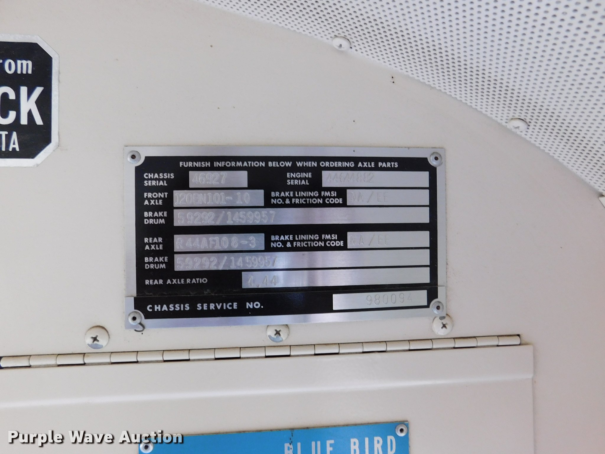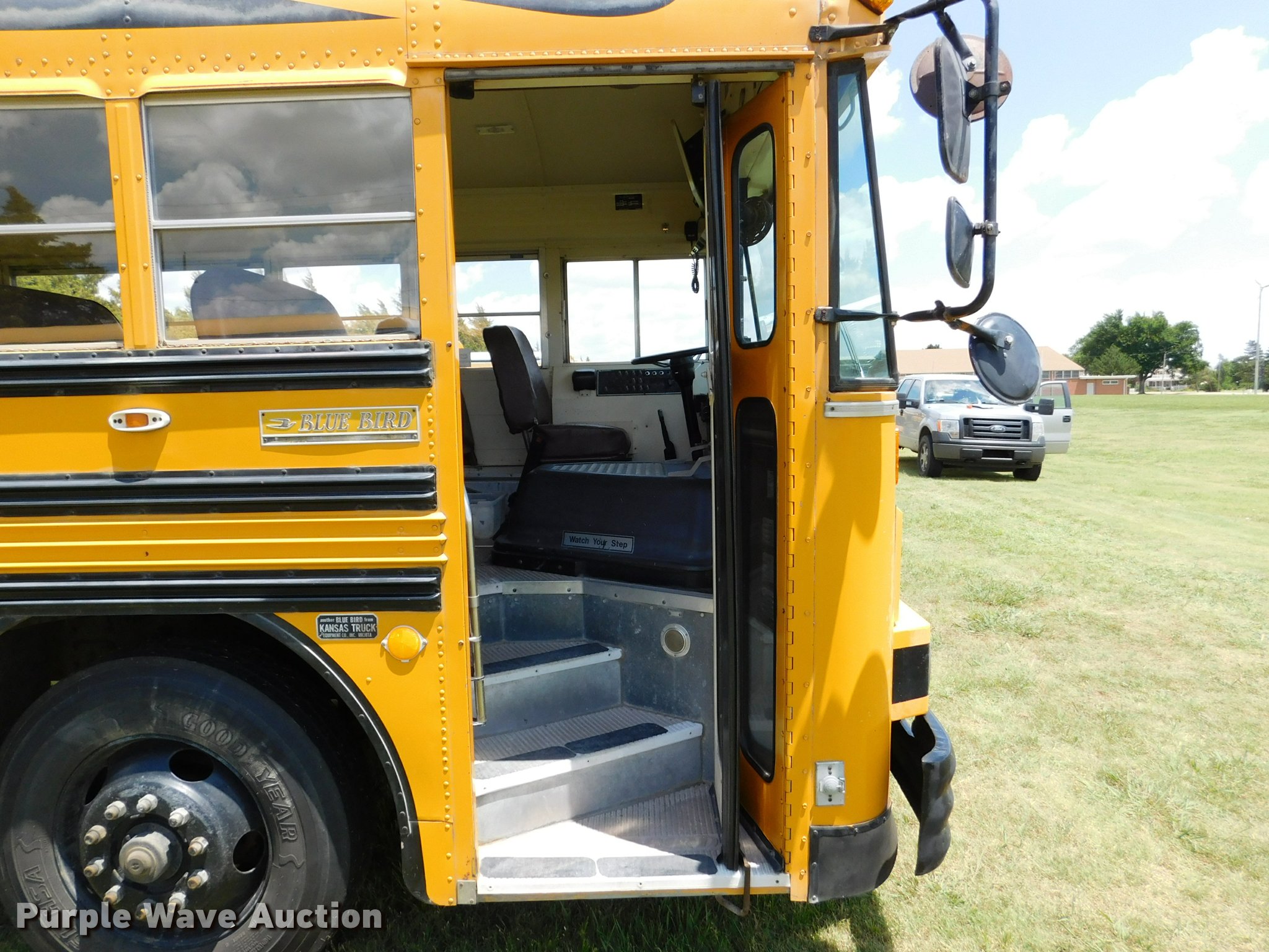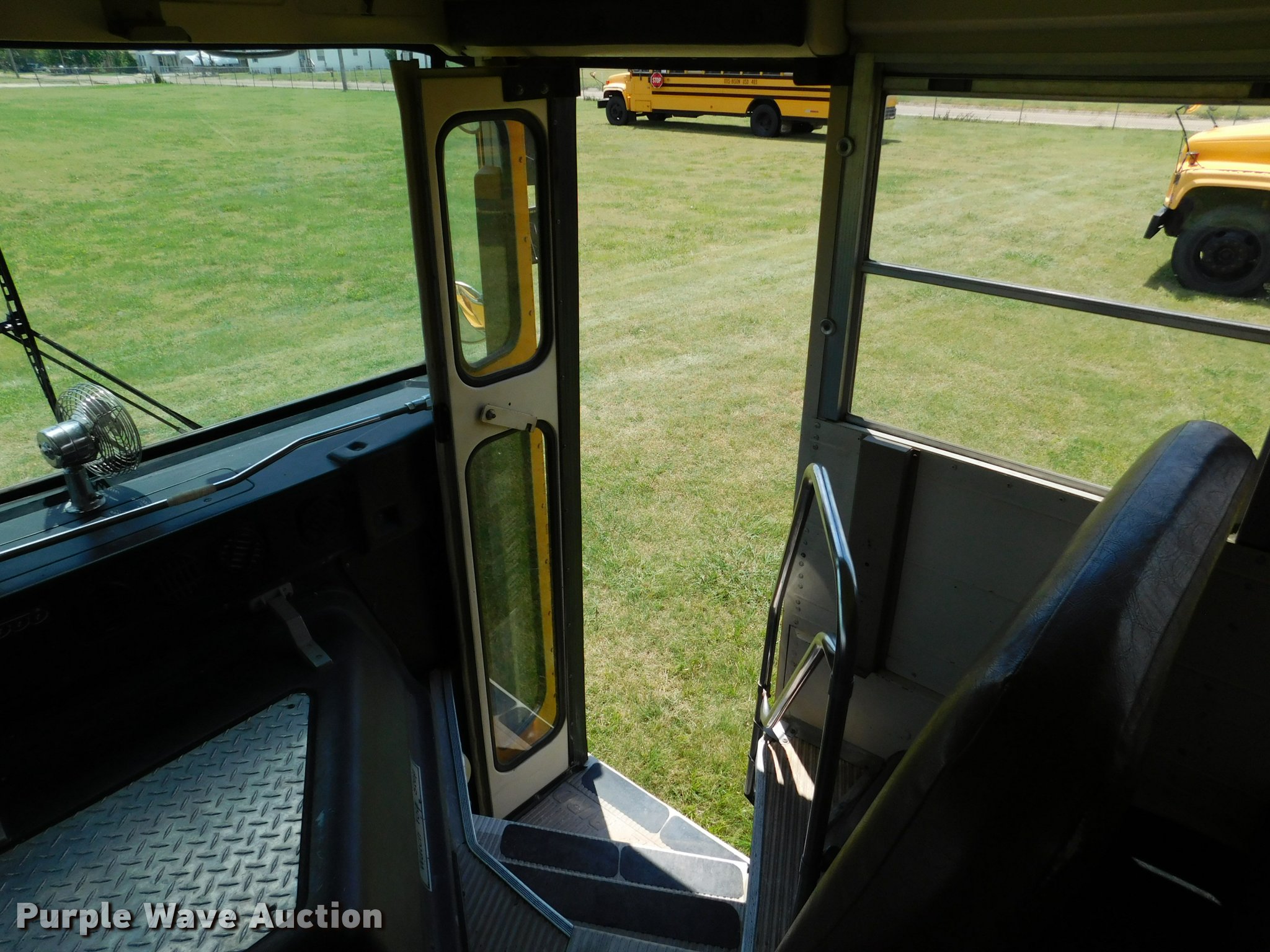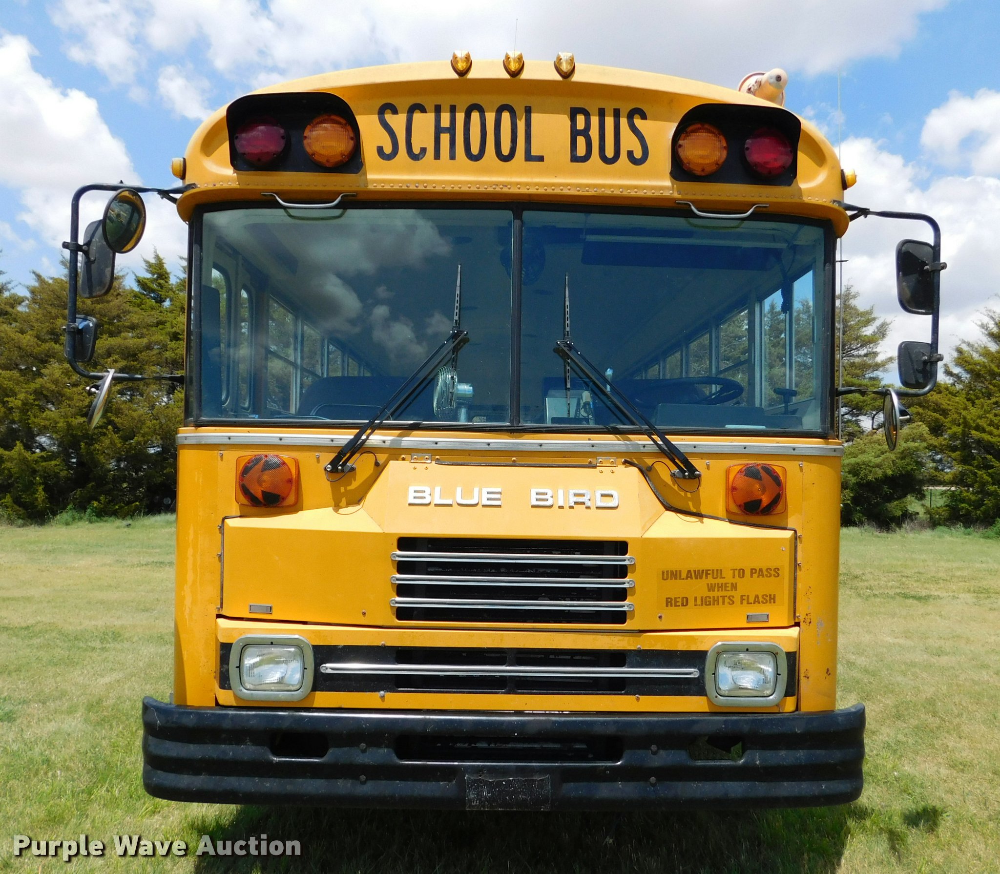 Purple Wave is selling a used Bus in Kansas. This item is a 1992 Blue Bird TC2000 school bus with the following: 21,437 miles on odometer, 178,730 miles on odometer prior to replacement, Cummins 5.9L L6 turbo diesel engine, Automatic transmission, Heat, AM/FM/cassette, Block heater, Backup alarm, Rear emergency exits, Emergency door alarms, Underside luggage storage, Front and rear tow hooks, Spring suspension, Hydraulic brakes, 10R22.5 tires, GVWR 27,800 lbs, Unit# 3