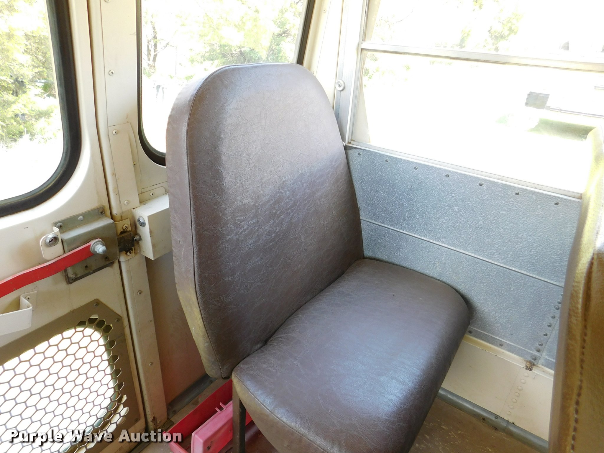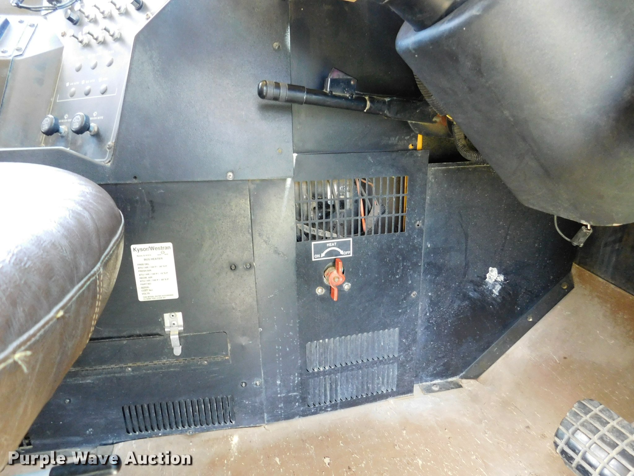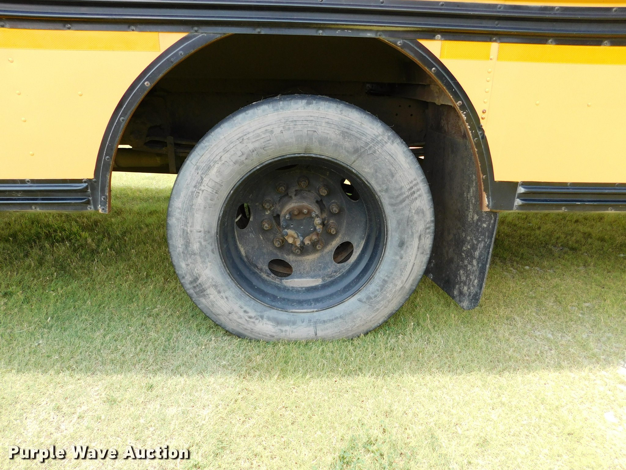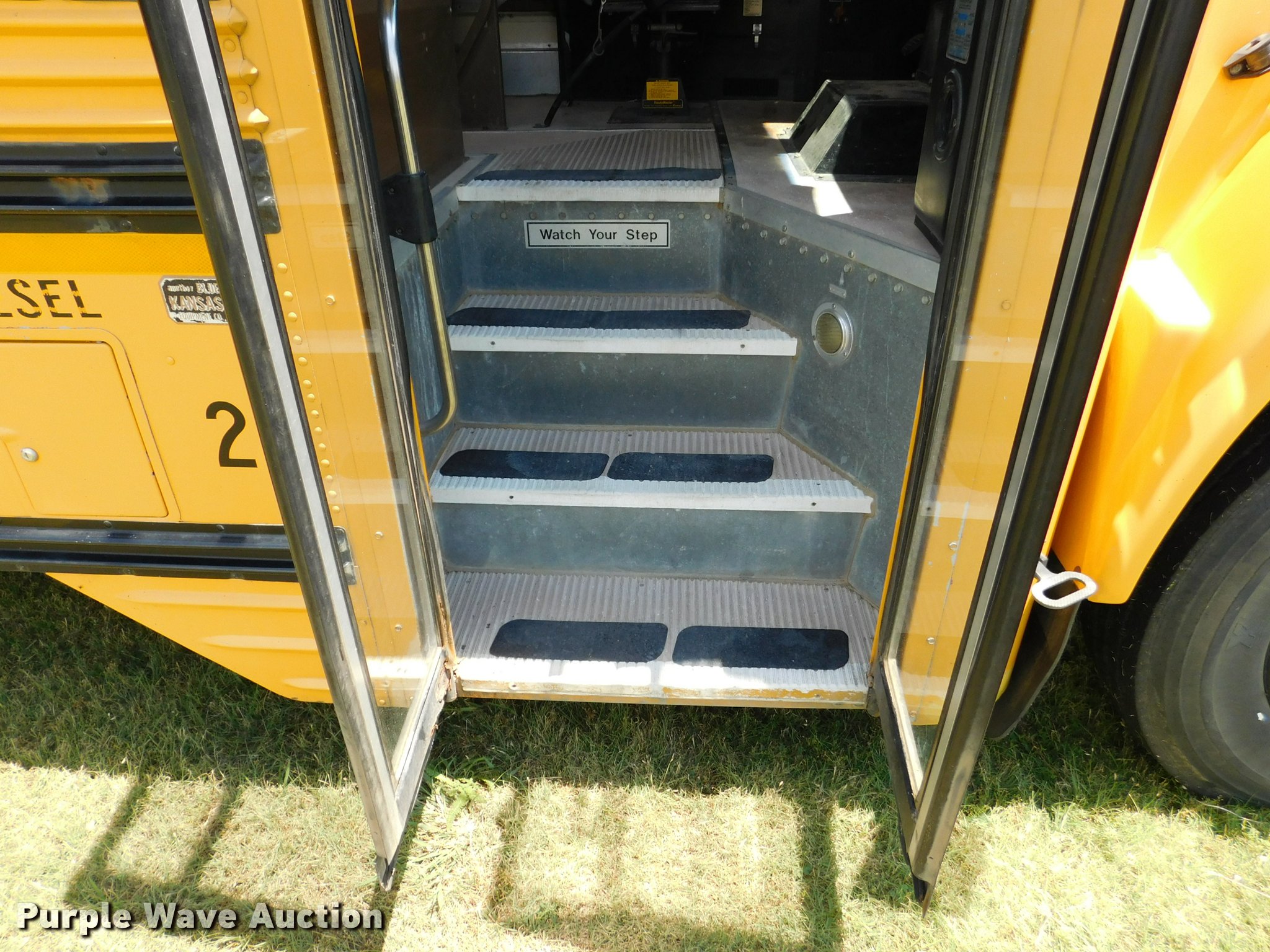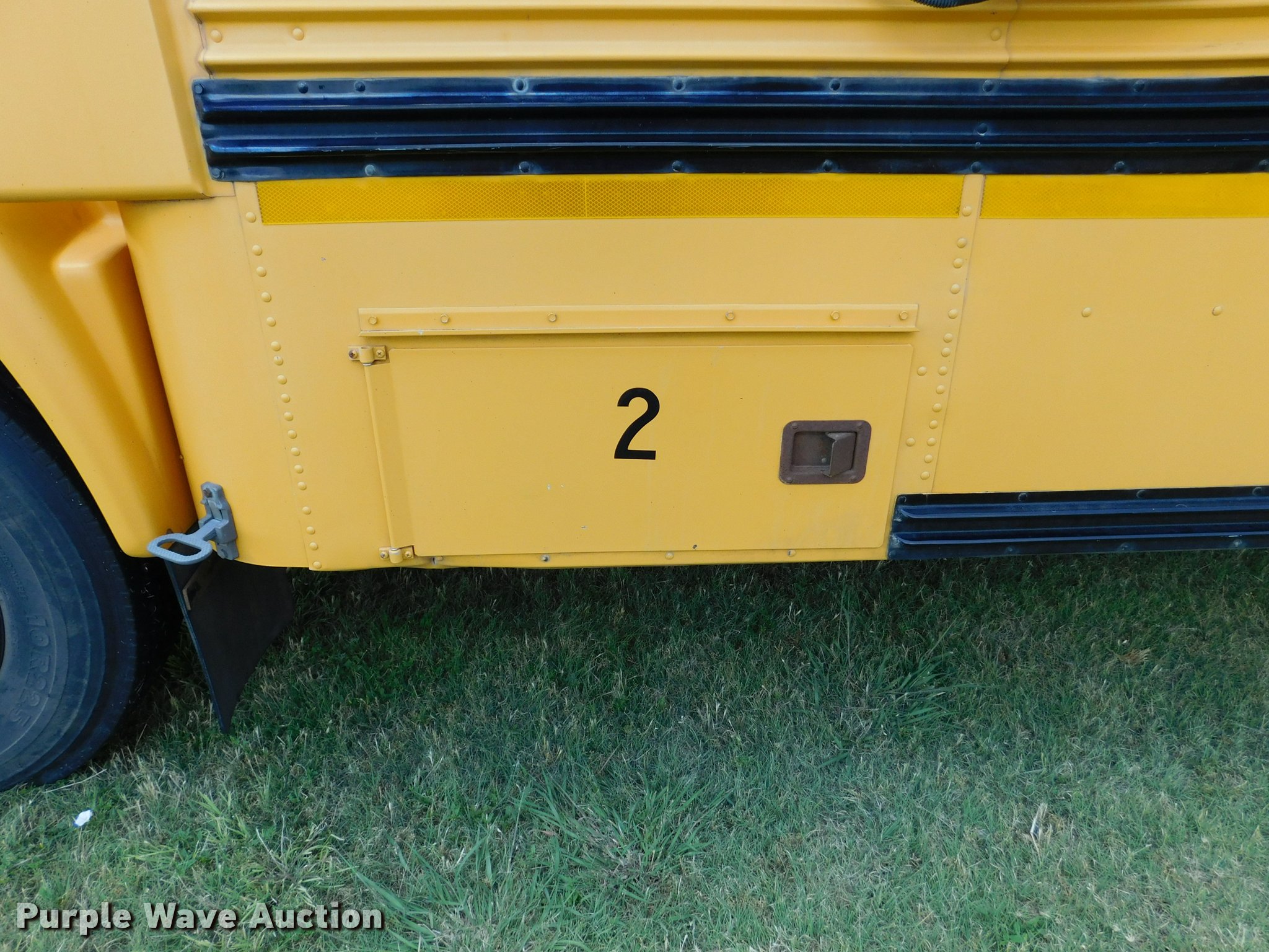 Purple Wave is selling a used Bus in Kansas. This item is a 1996 Chevrolet B7 Blue Bird school bus with the following: 236,744 miles on odometer, Caterpillar 3113 6.6L six cylinder turbo diesel engine, Serial 9GK, Automatic transmission, Heat, AM/FM/cassette, Heated mirrors, Block heater, Backup alarm, 59 passenger capacity, Ceiling, rear, and side emergency exits, Emergency door alarms, Lighted stop sign, Front and rear tow hooks, Approximately 241" wheelbase, Spring suspension, Hydraulic brakes, 10R22.5 front tires, 275/70R22.5 rear tires, GVWR 27,060 lbs, Possible engine issues, Blows smoke, Unit# 2