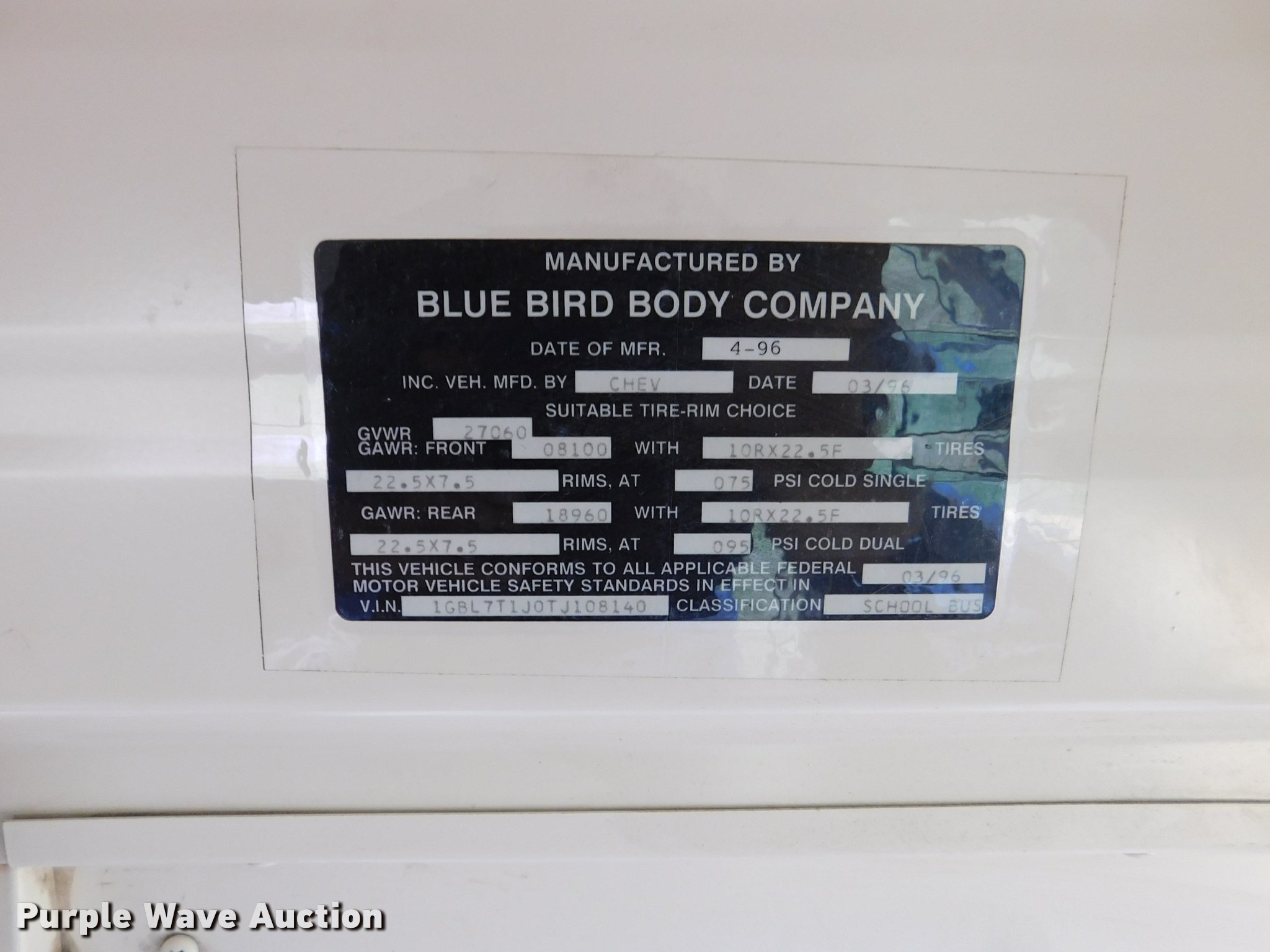 1996 Chevrolet B7 Blue Bird school bus | SOLD! August 8 Government Auction