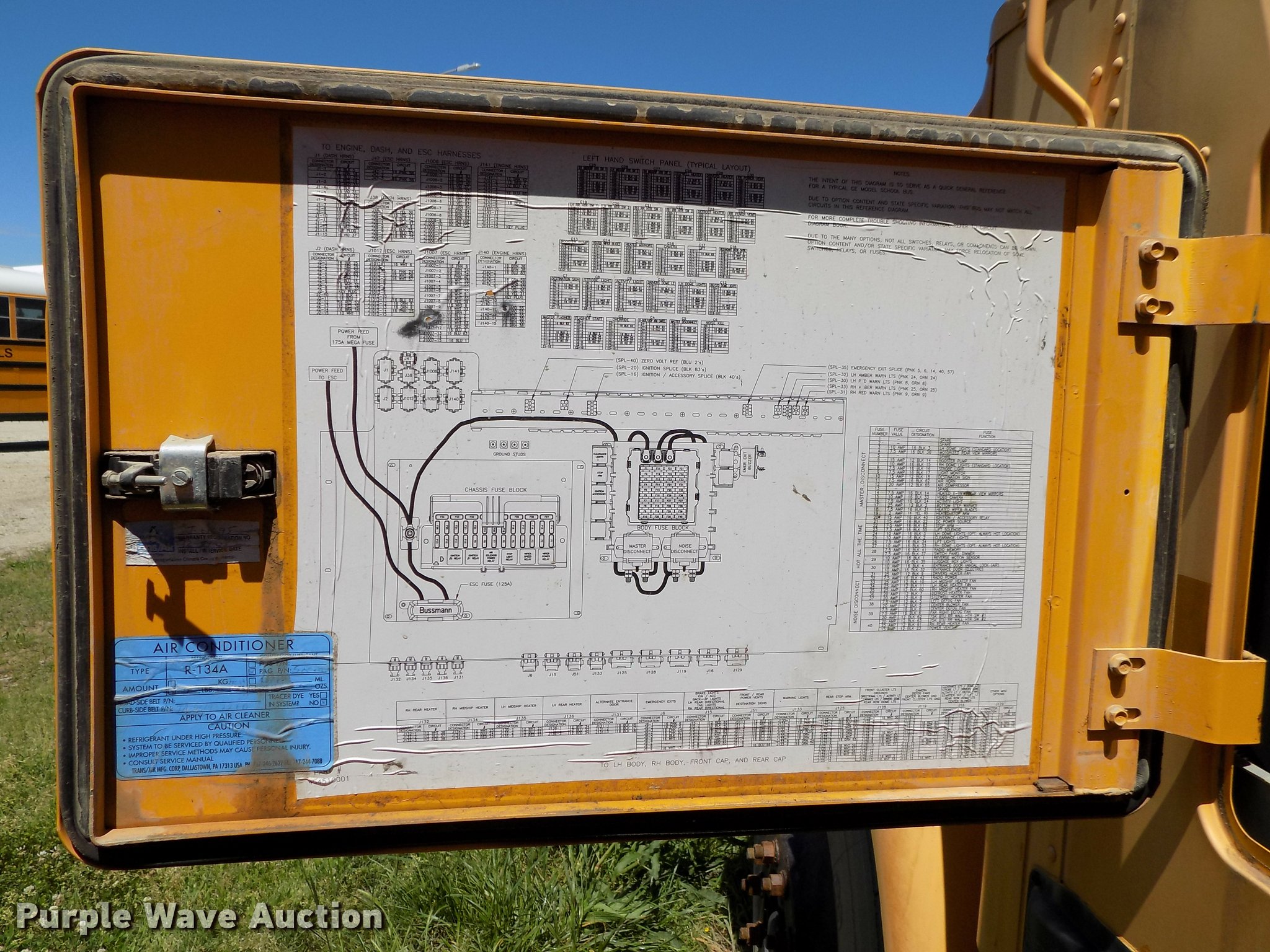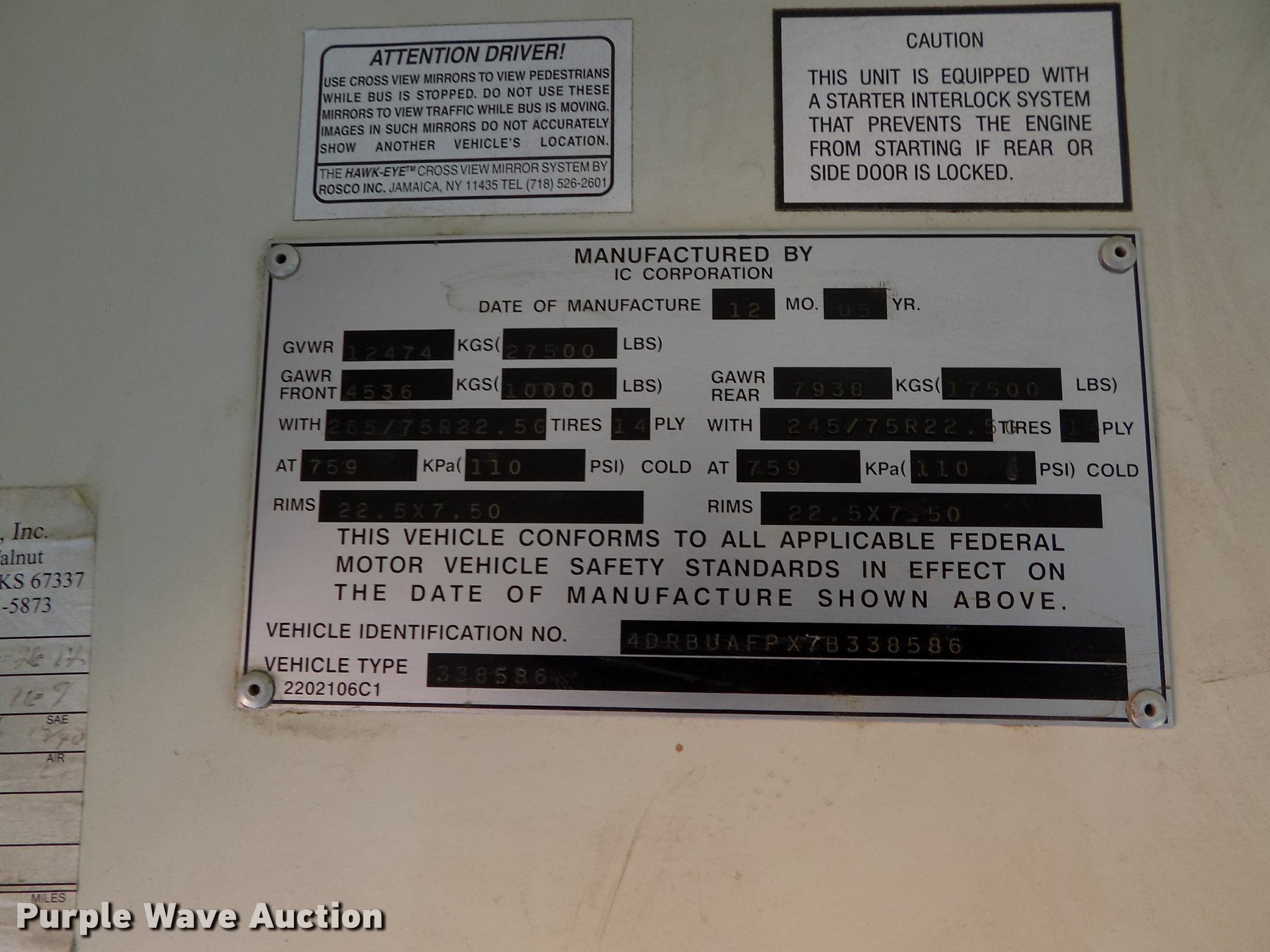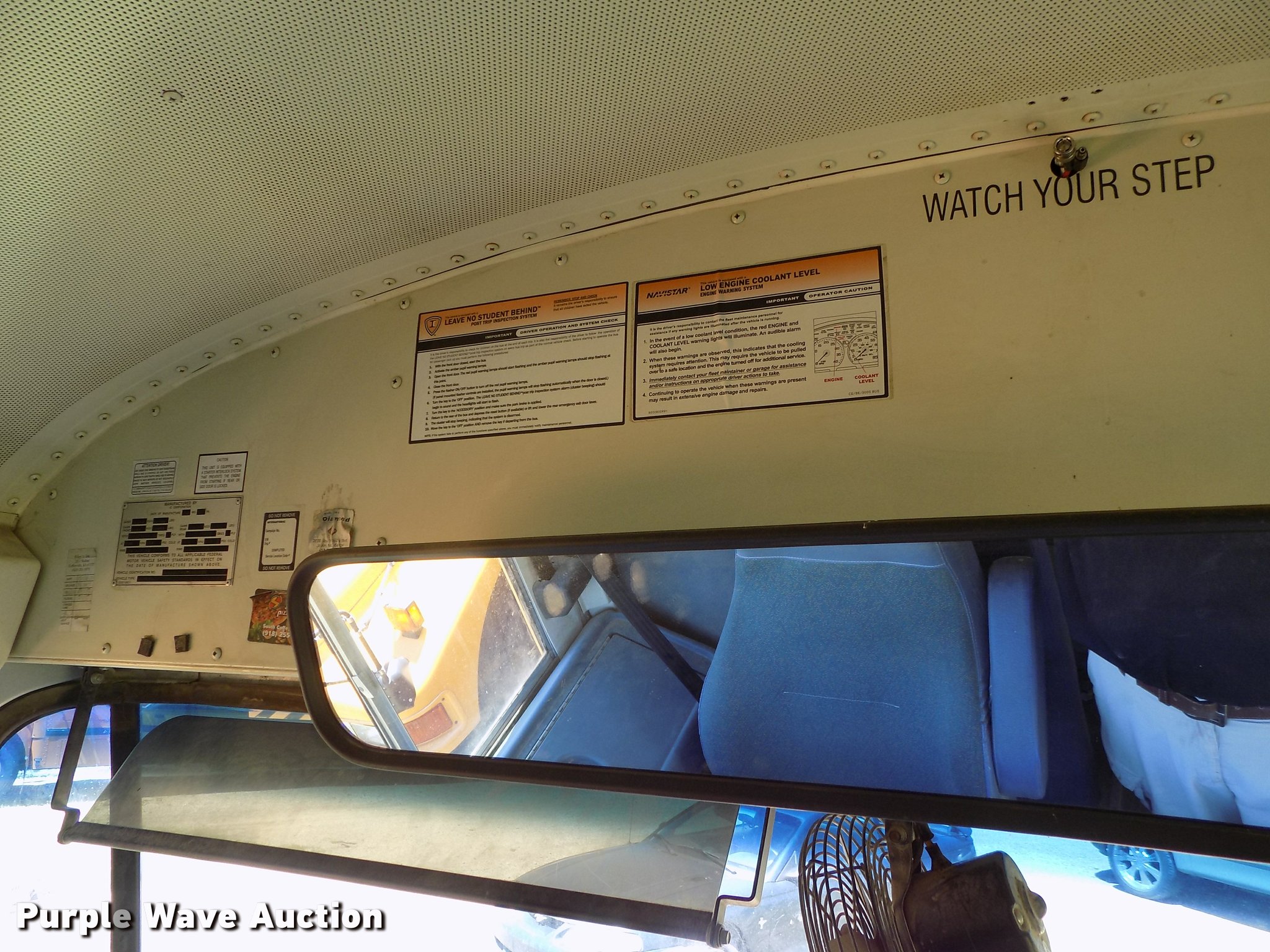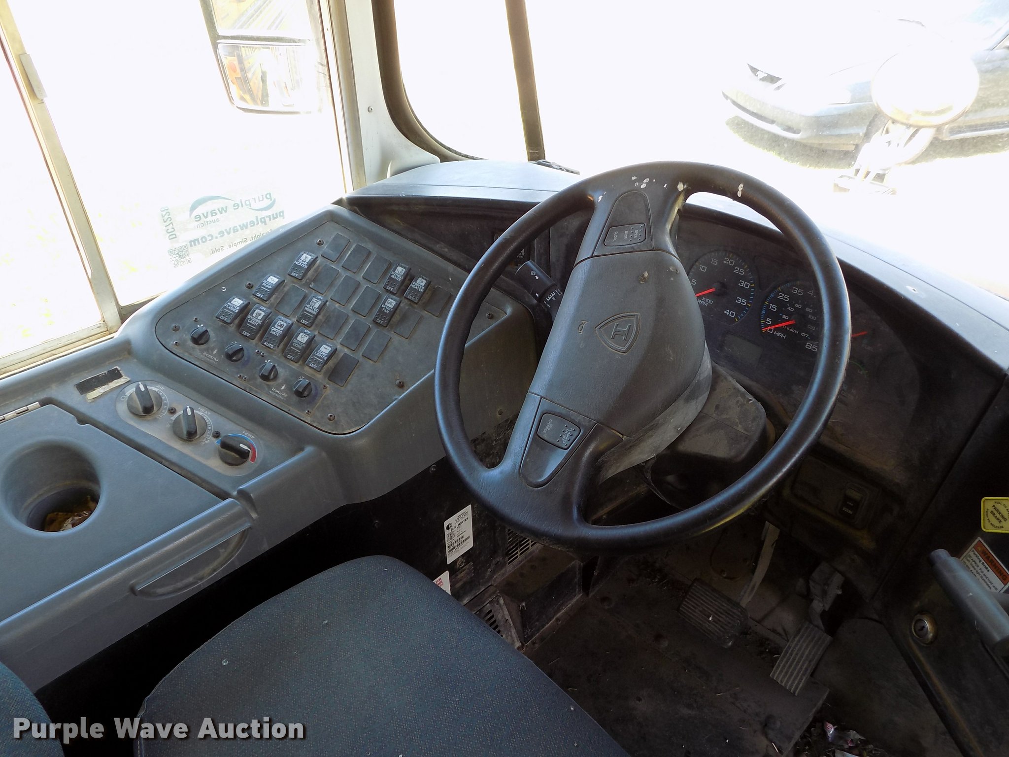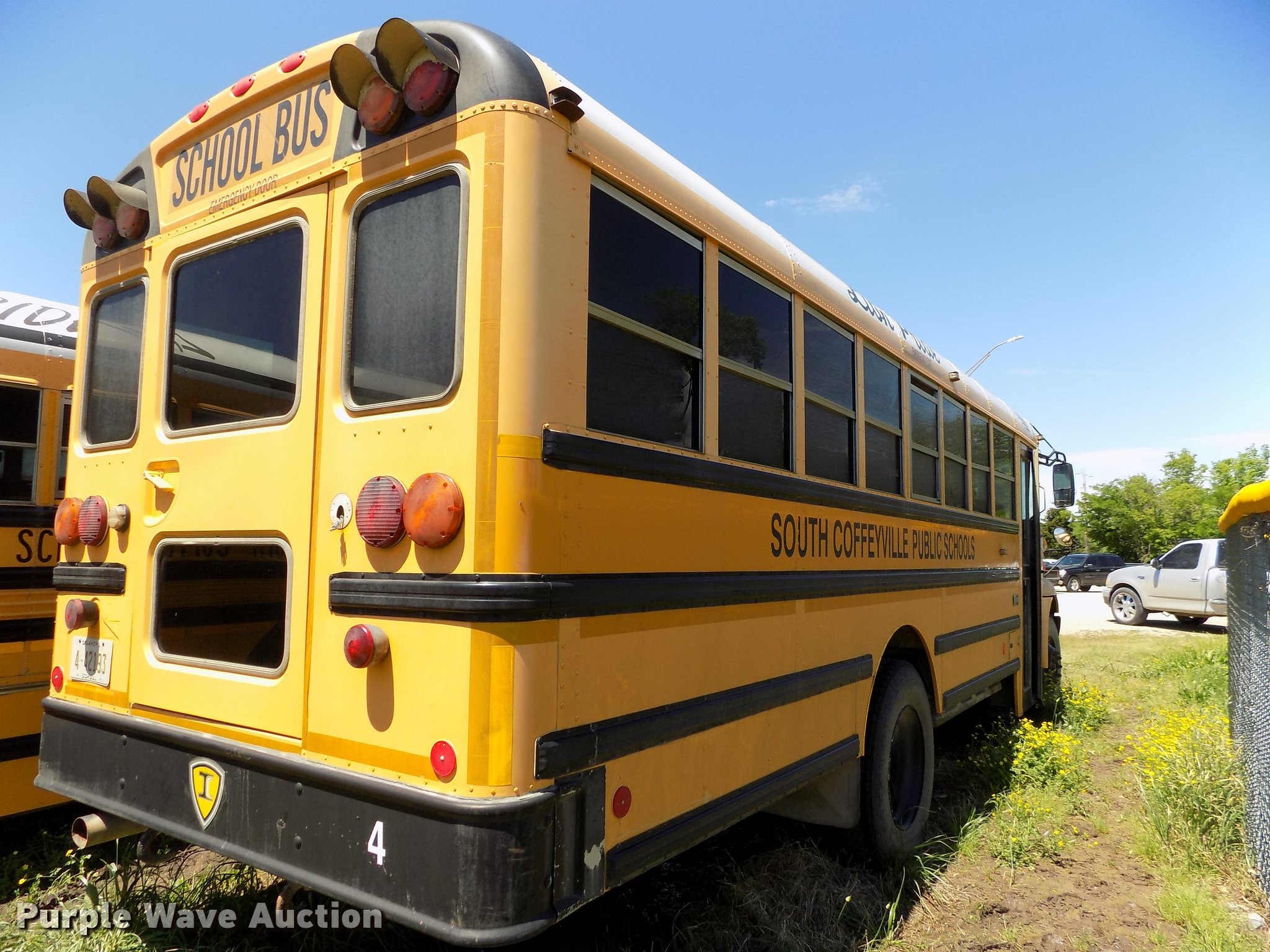 Purple Wave is selling a used Bus in Oklahoma. This item is a 2007 International CE school bus with the following: Approx. 125,000 miles, International VT365 6.0L V8 turbo diesel engine, Automatic transmission, Single axle, AC and heat, AM/FM/CD, Heated mirrors, Cloth driver interior, Vinyl passenger interior, Electric passenger sliding door, Block heater, 47 passenger capacity, Ceiling, rear, and side emergency exits, Emergency door alarms, Lighted stop sign, Crossing arm rod, Trans Air AC roof unit, Front and rear tow hooks, Hydraulic suspension, 238" wheelbase, 11R22.5 tires, GVWR 27,500 lbs, Seat damage, Unit# 4