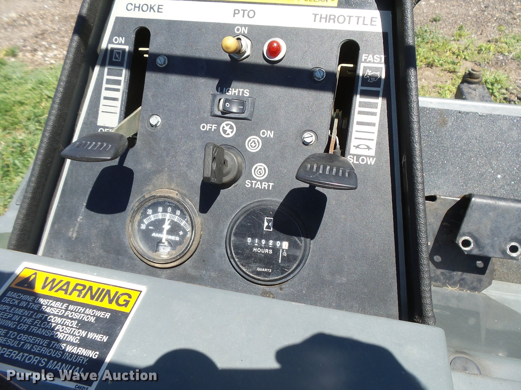 Purple Wave is selling a used Lawn Mower in Kansas. This item is a Grazer G1897V ZTR lawn mower with the following: 1,920 hours on meter, 60" cut, Briggs & Stratton 18 HP gas engine, Hydrostatic transmission, 18x9.50-8 front tires, Non-operational unit
