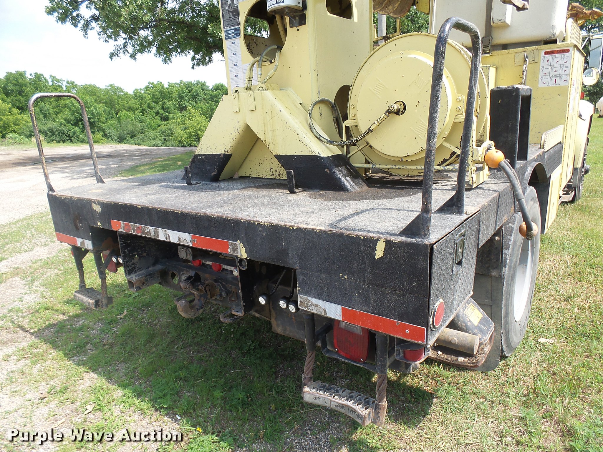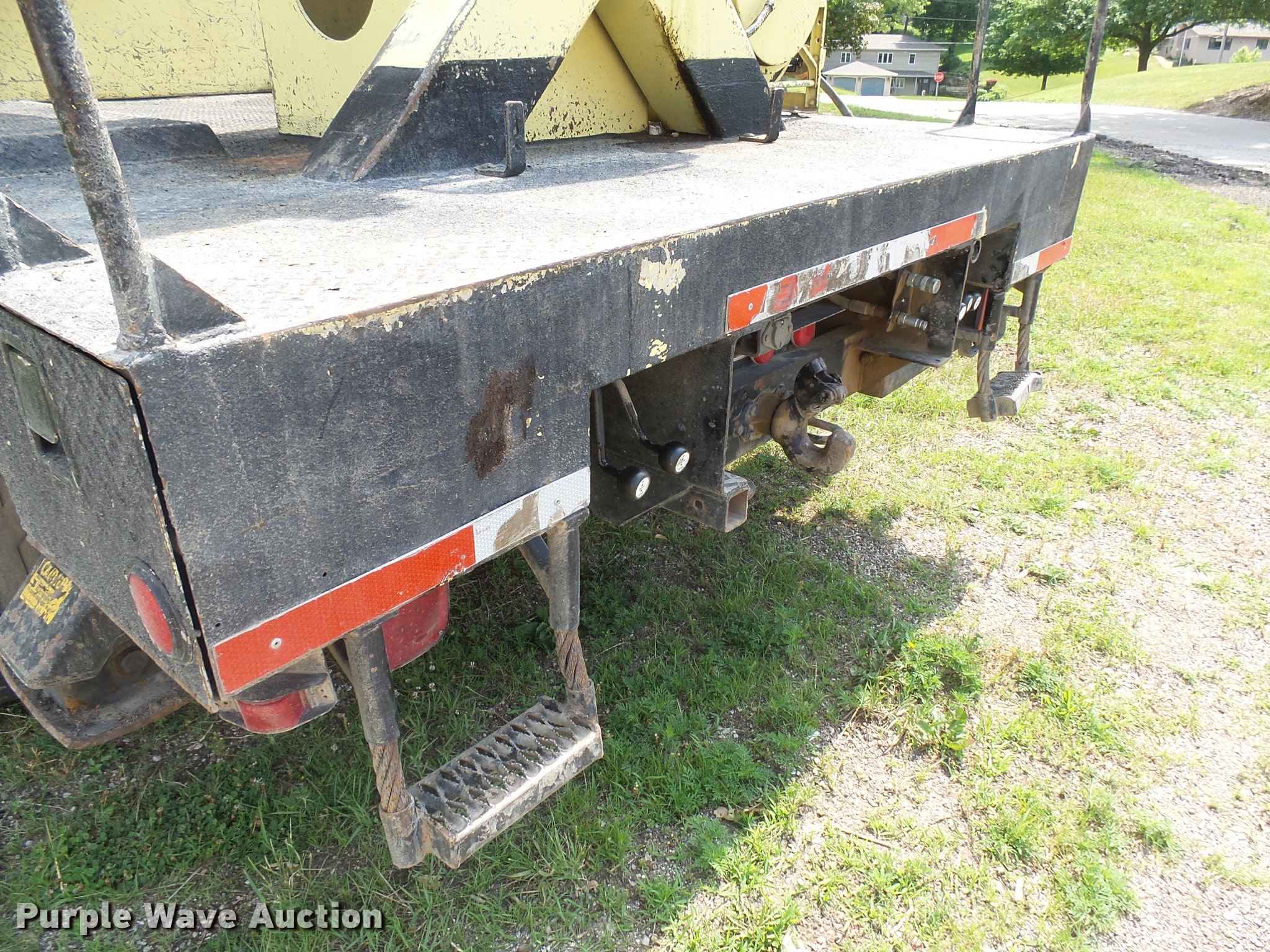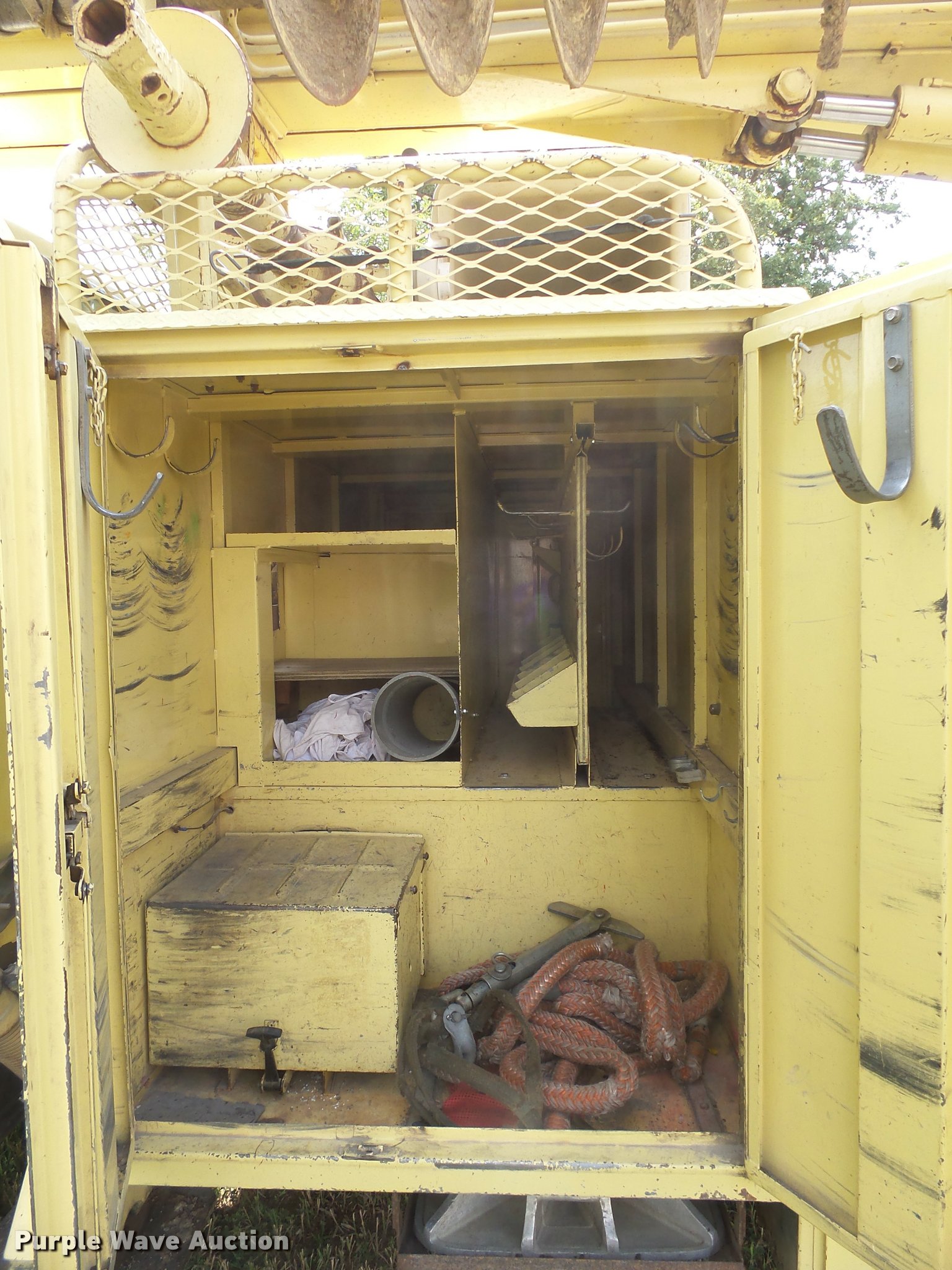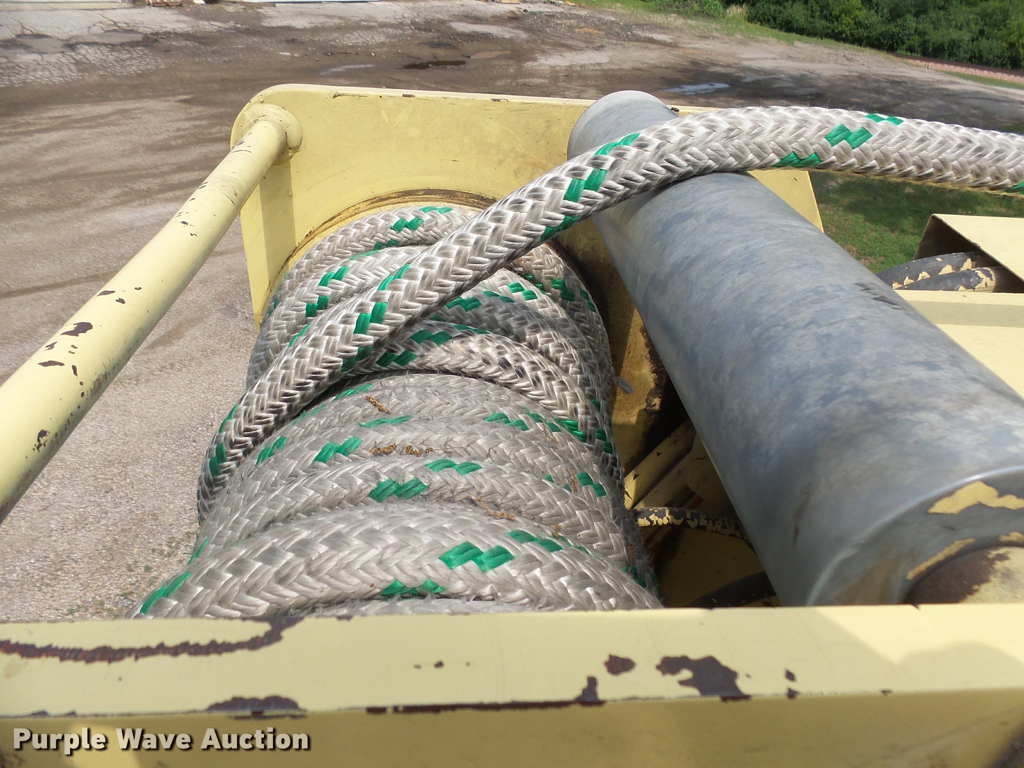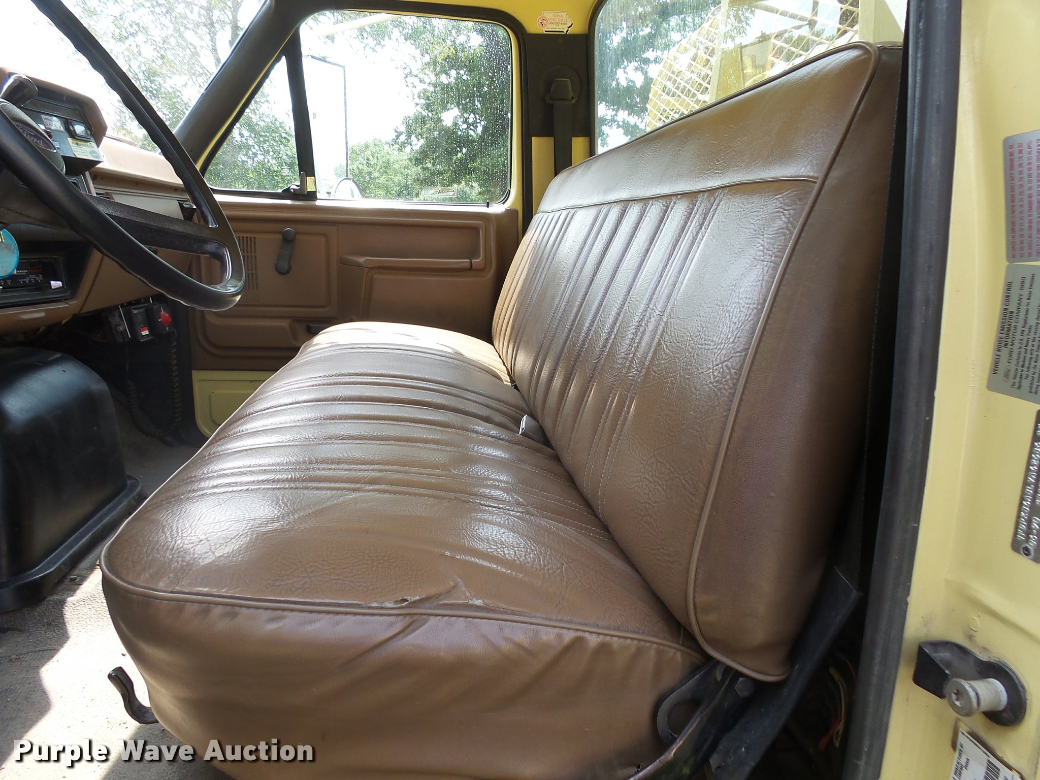 Purple Wave is selling a used Digger Derrick Truck in Iowa. This item is a 1990 Ford F800 digger derrick truck with the following: 42,724 miles on odometer, 3,723 hours on meter, 7.8L L6 diesel engine, Allison automatic transmission, Single axle, Heat, AM/FM, Spring suspension seat, Auxiliary controls, Beacon light, Backup alarm, Block heater, Front tow hooks, Service bed, 118"L x 93"W, Shelving, Slide-out drawers, Utility rack, Telelect Commander boom, Boom tip basket, Platform controls, Turret winch, Boom rotation, Pole guide, 8" auger, 18" auger, Rope material handler, Outriggers, Serial 1035-45HX, Certification valid through November 2015, Capstan hoist motor, Grounding cable, Single exhaust stack, Dual fuel tanks, Spring suspension, Pintle hitch, Trailer wiring, Hydraulic brakes, Samson 11R22.5 front tires, 10.00R20 rear tires