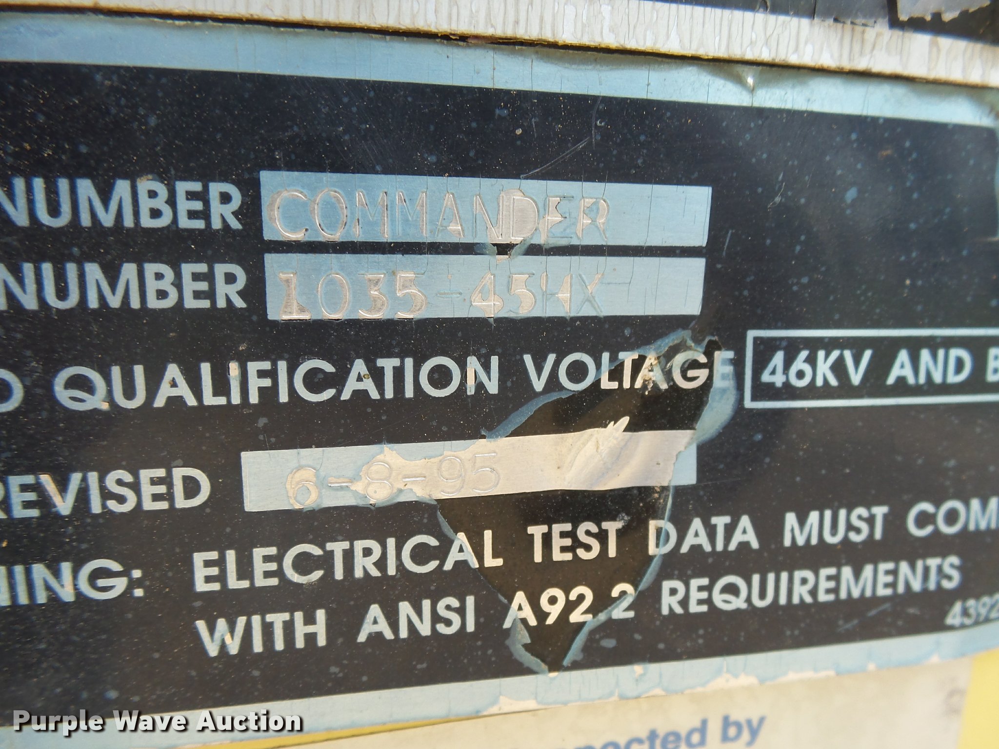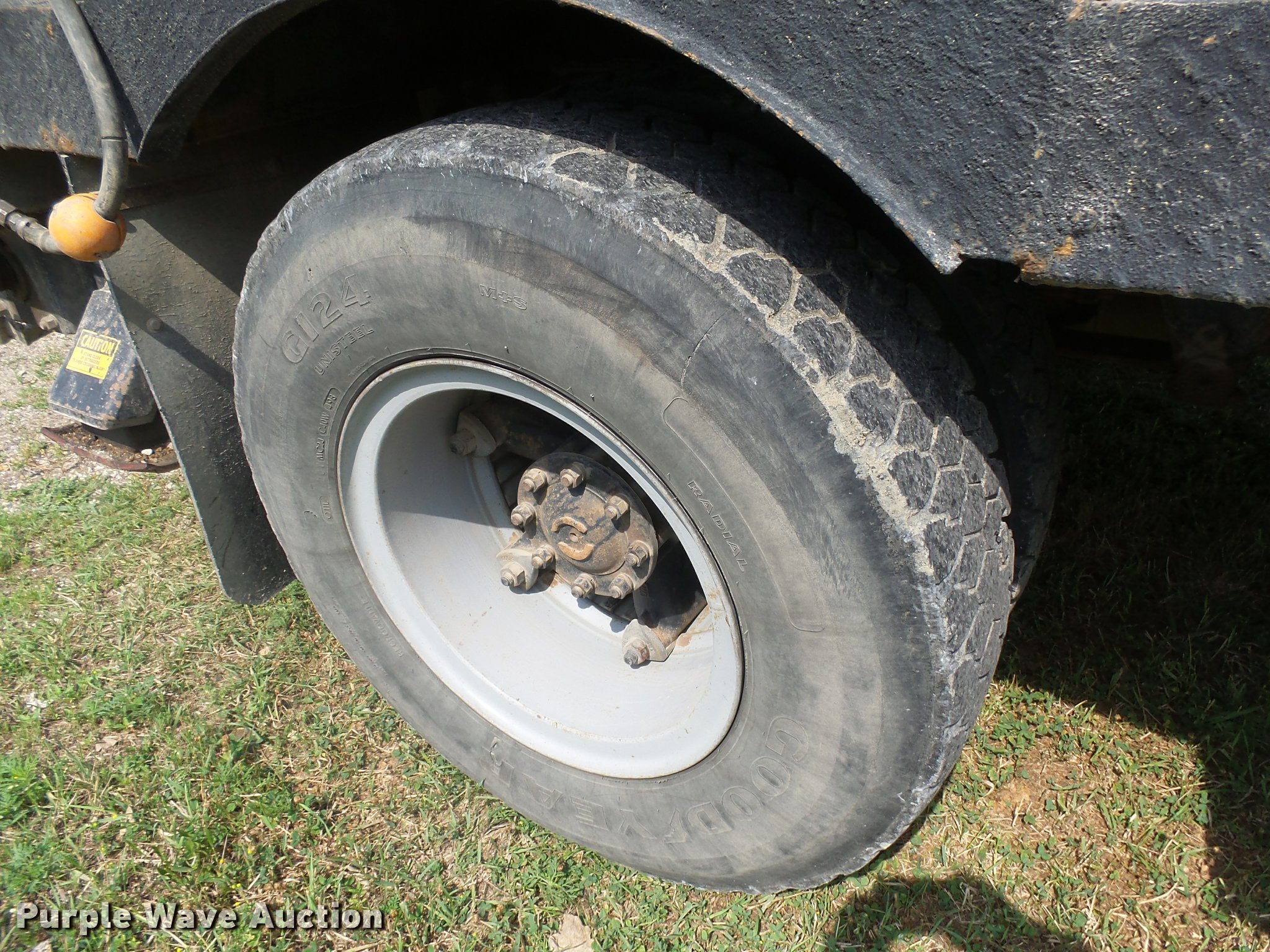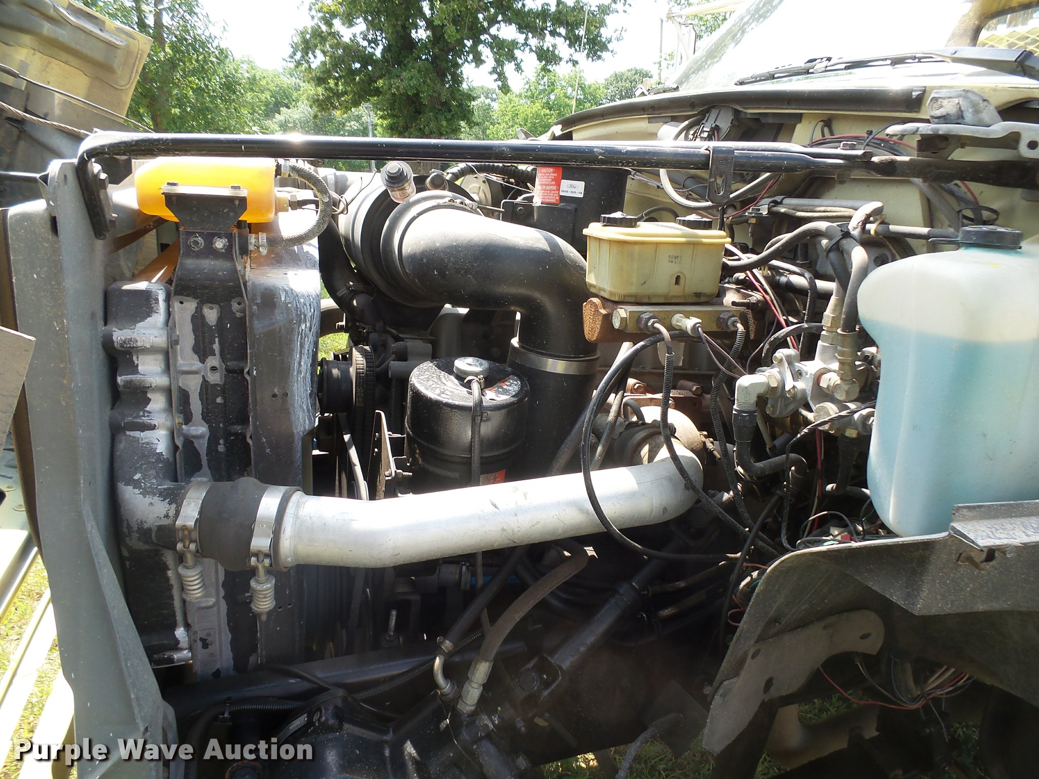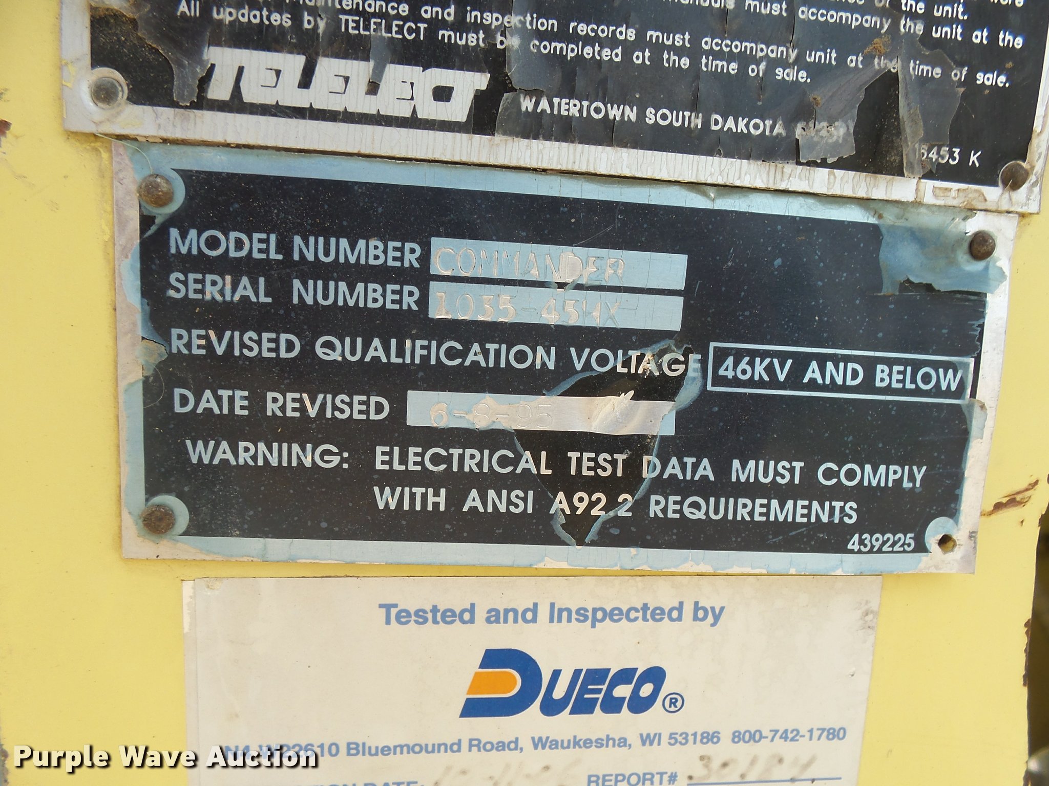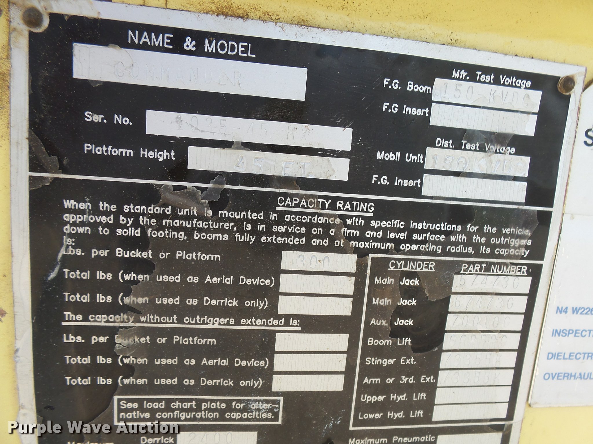 Purple Wave is selling a used Digger Derrick Truck in Iowa. This item is a 1990 Ford F800 digger derrick truck with the following: 42,724 miles on odometer, 3,723 hours on meter, 7.8L L6 diesel engine, Allison automatic transmission, Single axle, Heat, AM/FM, Spring suspension seat, Auxiliary controls, Beacon light, Backup alarm, Block heater, Front tow hooks, Service bed, 118"L x 93"W, Shelving, Slide-out drawers, Utility rack, Telelect Commander boom, Boom tip basket, Platform controls, Turret winch, Boom rotation, Pole guide, 8" auger, 18" auger, Rope material handler, Outriggers, Serial 1035-45HX, Certification valid through November 2015, Capstan hoist motor, Grounding cable, Single exhaust stack, Dual fuel tanks, Spring suspension, Pintle hitch, Trailer wiring, Hydraulic brakes, Samson 11R22.5 front tires, 10.00R20 rear tires