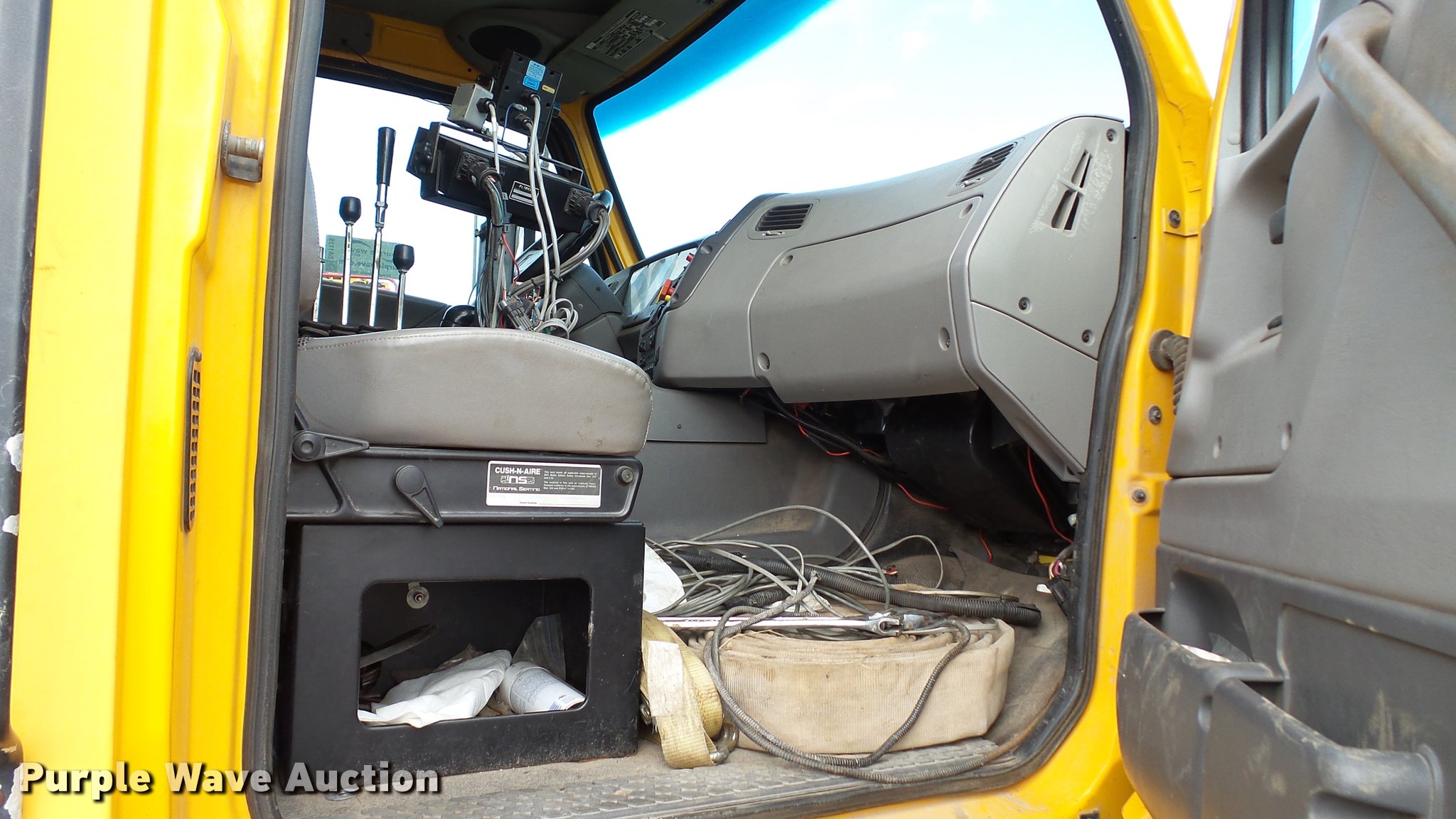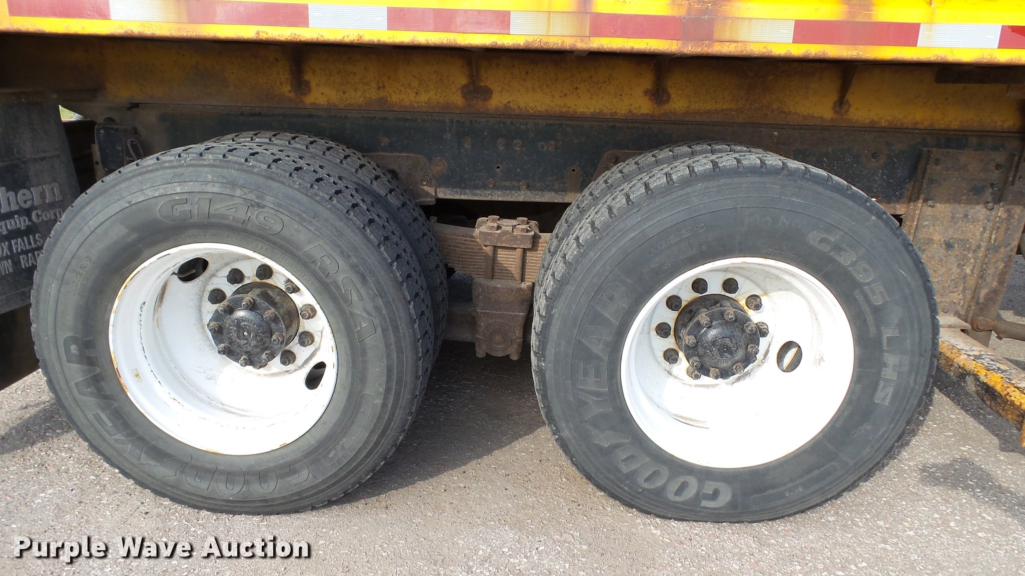 Purple Wave is selling a used Construction Dump Truck in South Dakota. This item is a 1998 Ford LT9501 Louisville 101 dump truck with the following: 197,437 miles on odometer, 7,932 hours on meter, Caterpillar C12 11.9L L6 turbo diesel engine, 375 HP, Serial 1YN11877, Eaton Fuller Road Ranger 10 speed manual transmission, Tandem axle, Inter-axle differential lock, AC and heat, Tilt, Cruise, AM/FM, Power and heated mirrors, Power windows, Air suspension seat, Trailer brake controller, Beacon light, Front mounted PTO, Gallion 502FT steel dump bed, 15'L x 96"W, 32" side height, Single ram hoist, Bed vibrator, Air operated end gate, Roll tarp, Monroe MP48R12 snow plow, 12'W, Serial 97-10-2581, Henke 8' side plow, Monroe MSV-144 spreader, (2) saline solution tanks, 200 gallon capacity, Serial SD97-10-8485, Work lights, Toolboxes, Single fuel tank, Trailer wiring, 207" wheelbase, Spring over walking beam suspension, Air brakes, Engine brake, 385/65R22.5 front tires, 11R22.5 rear tires, GVWR 54,600 lbs, FAWR 14,600 lbs, IAWR 20,000 lbs, RAWR 20,000 lbs, Poly water tank in bed not included, will be removed prior to auction, Decals will be removed prior to auction, Unit# DT011, RD026, RN870, RN576