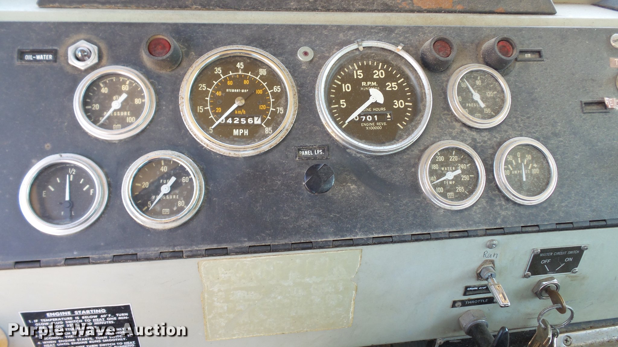 Purple Wave is selling a used Truck Chassis in South Dakota. This item is a 1988 Oshkosh W700-15-R snow blower truck with the following: 4,256 hours on meter, 701 hours on meter, Caterpillar 3306 six cylinder turbo diesel engine, 10 speed manual transmission, Four wheel drive, Four wheel hydraulic steering, Single axle, Heat, Spot light, PTO, Beacon light, Brake controller, Work lights, Front mounted spot light, Sicaro snow blower, 1,450 hours on meter, Caterpillar D343 six cylinder turbo diesel engine, 375 HP, Serial 62B11396, Block heater, 102"W, Hydraulic chute control, Serial 4776R88, Spring suspension, Air brakes, Goodyear 14.00R20 tires, GVWR 34,000 lbs, Serial 4776R88, Unit# DH103
