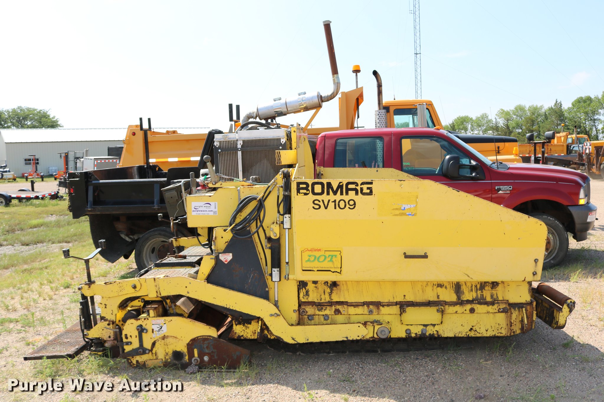Purple Wave is selling a used Paver or Screed in South Dakota. This item is a 2006 Bomag paver with the following: 802 hours on meter, Four cylinder turbo diesel engine, 8'W, (2) propane burner wands, Serial 1001, Unit# SV109