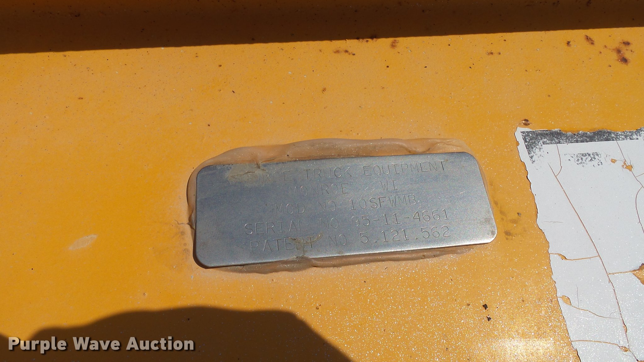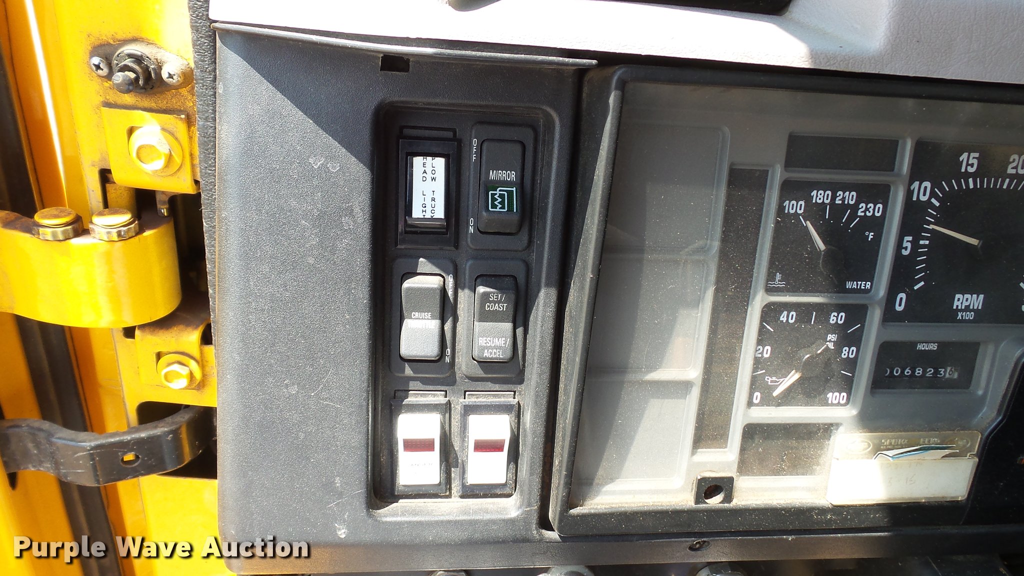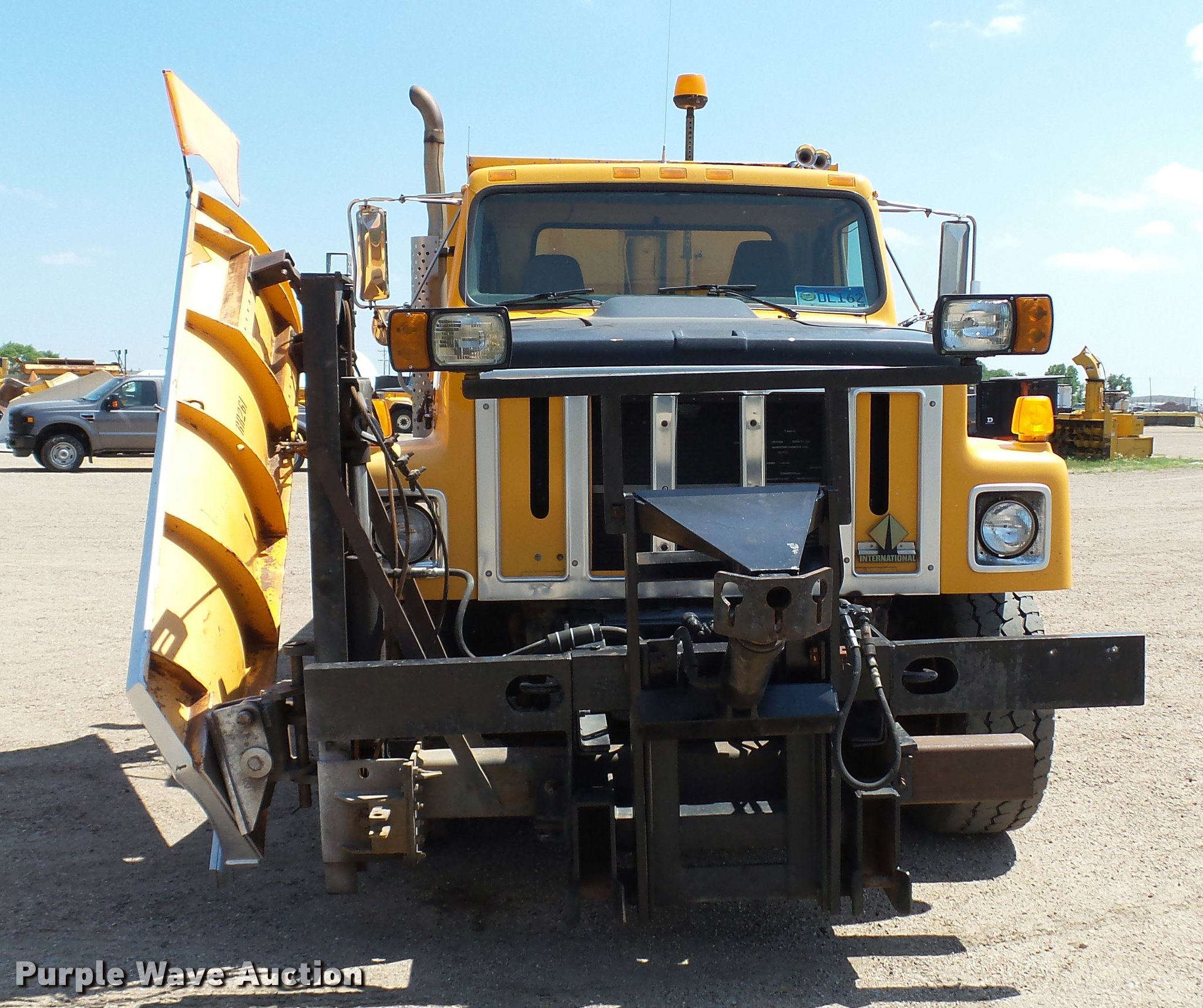 1998 International 2554 dump truck. 142,992 miles on odometer, 6,824 hours on meter, International DT530 8.7L L6 turbo diesel engine, Eaton Fuller 10 speed manual transmission, Tandem axle, Heat, Tilt, Telescoping steering wheel, Cruise, AM/FM/cassette, Heated mirrors, Beacon light, Brake controller, Block heater, Front mounted PTO, Steel dump bed 15'L x 8'W, 32" side height, Single ram hoist, Bed vibrator, Manual operated end gate, (2) hydraulic remotes, Monroe MP48R12-ISCT plow 12'W, Serial 97-10-2633, Monroe 105FWMB wing plow 10'W, Serial 95-11-4661, Single fuel tank, Pintle hitch, Trailer wiring, 210" wheelbase, Spring walking beam suspension, Air brakes, 385/65R22.5 front tires, 12R22.5 rear tires, Unit# DL162, RD040, RR261. South Dakota title. 1HTGCADR8WH498398. South Dakota Property Management. 1300 S Ohlman St. Mitchell, SD 57301