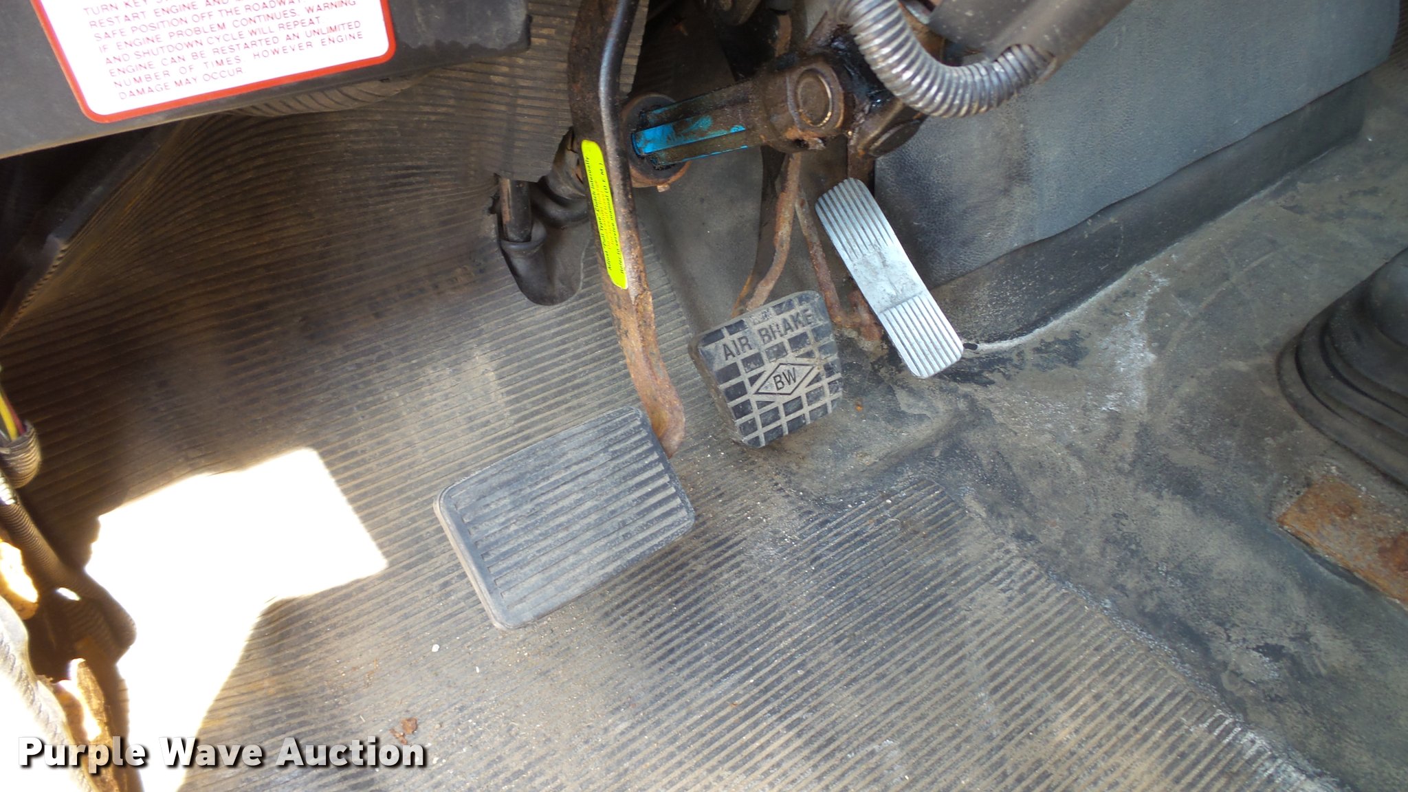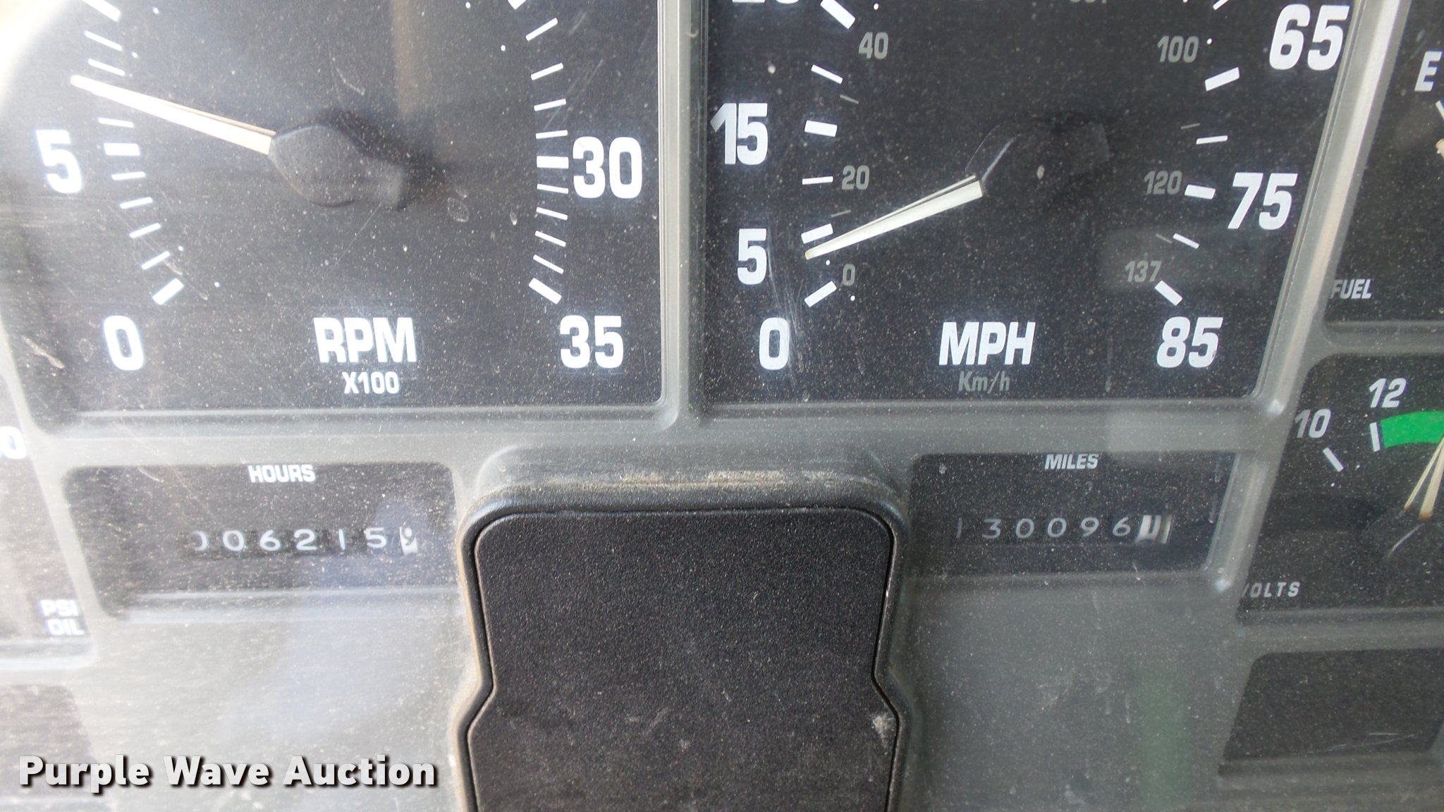 Purple Wave is selling a used Construction Dump Truck in South Dakota. This item is a 2001 International F2554 dump truck with the following: 130,096 miles on odometer, 6,216 hours on meter, International DT530 8.7L L6 turbo diesel engine, 300 HP, Serial 531HM34129845, Eaton Fuller 10 speed manual transmission, Tandem axle, Inter-axle differential lock, Heat, Tilt, Cruise, AM/FM, Power windows, Power and heated mirrors, Beacon light, Block heater, Brake conroller, Front mounted PTO, Steel dump bed, 15'L x 96"W, 32" side height, Single ram hoist, Bed vibrator, Front mounted hydraulic remotes, (2) side hydraulic remotes, Rear hydraulic remote, Rear D-ring tie downs, Single fuel tank, 216" wheelbase, Camelback suspension, Air brakes, 385/65R22.5 front tires, 11R22.5 rear tires, GVWR 58,000 lbs, FAWR 18,000 lbs, IAWR 20,000 lbs, RAWR 20,000 lbs, Spreader controls are not included, Unit# DL225