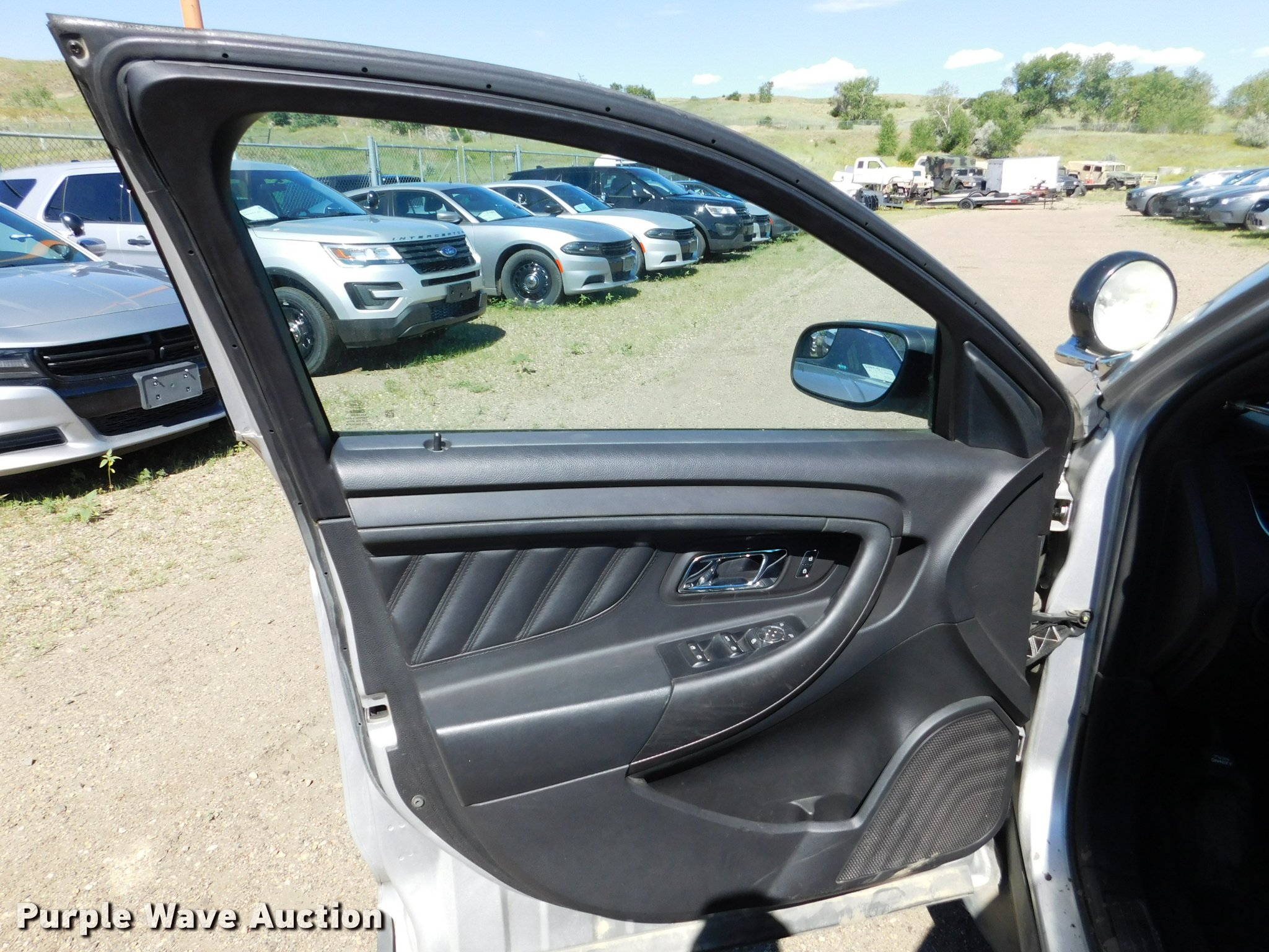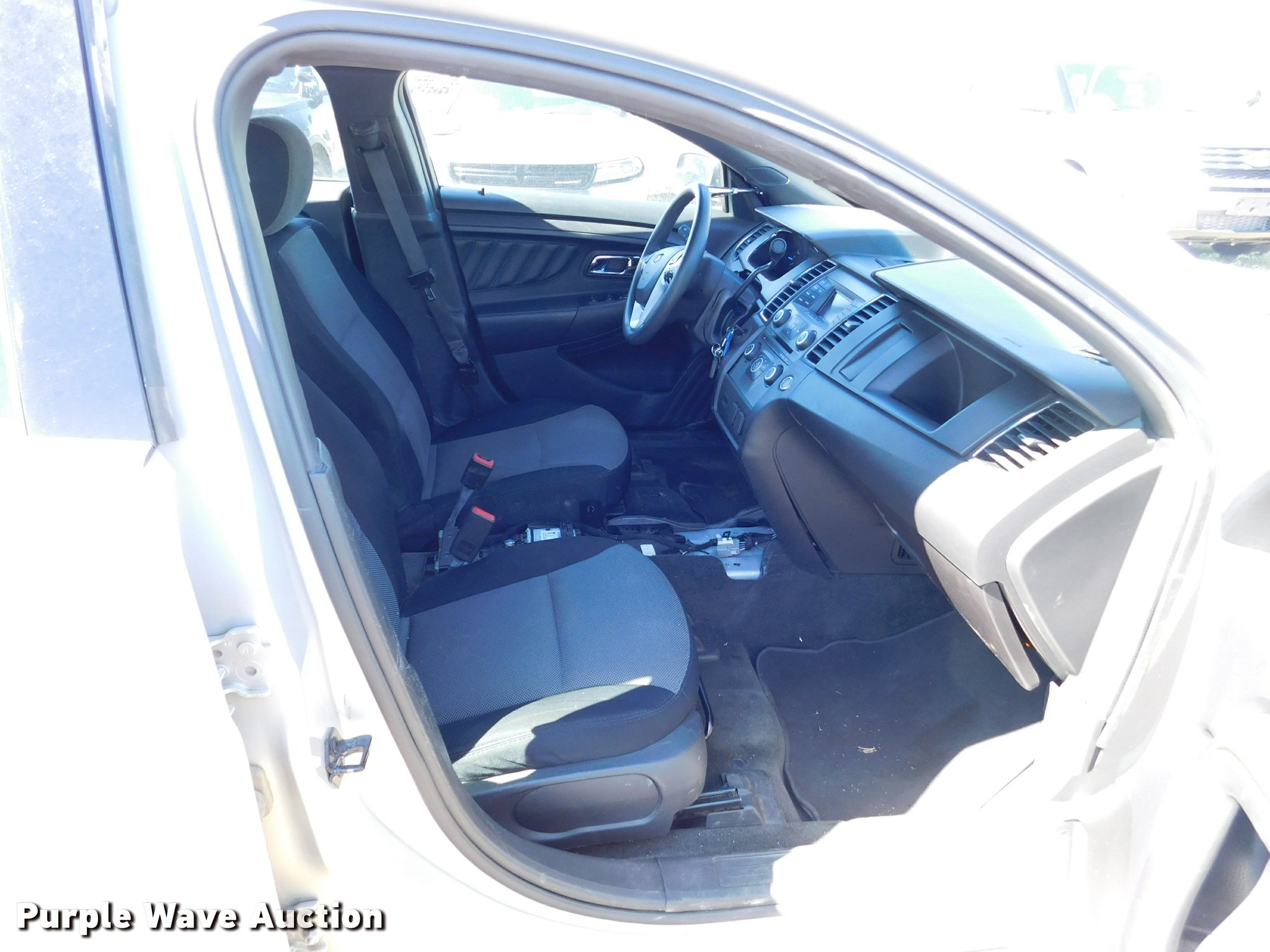 Purple Wave is selling a used Passenger Vehicle in South Dakota. This item is a 2013 Ford Taurus Police with the following: 111,408 miles on odometer, 3.5L V6 DOHC 24V gas engine, Automatic transmission, AC and heat, Tilt, Cruise, AM/FM/cassette, Power windows, locks, mirrors, and seat, Cloth interior, Front police equipment brackets, 245/55R18 tires, Hail damage, Center console missing, Front clip damage, Holes from police equipment, Asset# 352223, Equip ID 14AK272