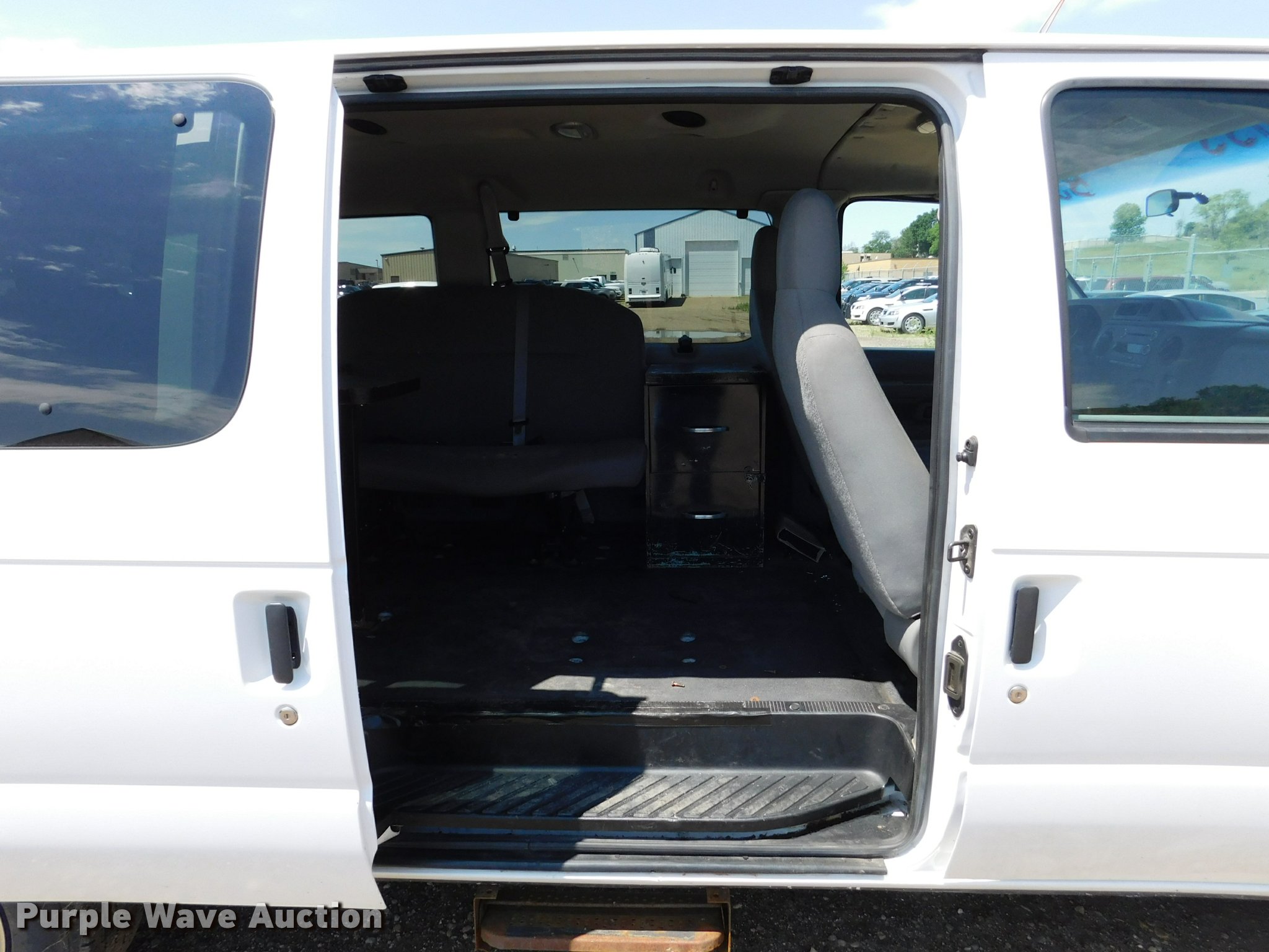Purple Wave is selling a used 3/4 or 1 Ton Pickup or Van in South Dakota. This item is a 2010 Ford E350 Super Duty XL Extended van with the following: 158,996 miles on odometer, 5.4L V8 SOHC 16V gas engine, Automatic transmission, AC and heat, Tilt, Cruise, AM/FM/CD, Power windows, locks, and mirrors, Cloth interior, Receiver hitch, Trailer wiring, 137" wheelbase, 245/75R16 tires, Passenger visor clip missing, Holes from police equipment, Cracked windshield, Asset# 349011, Equip ID 14BS359