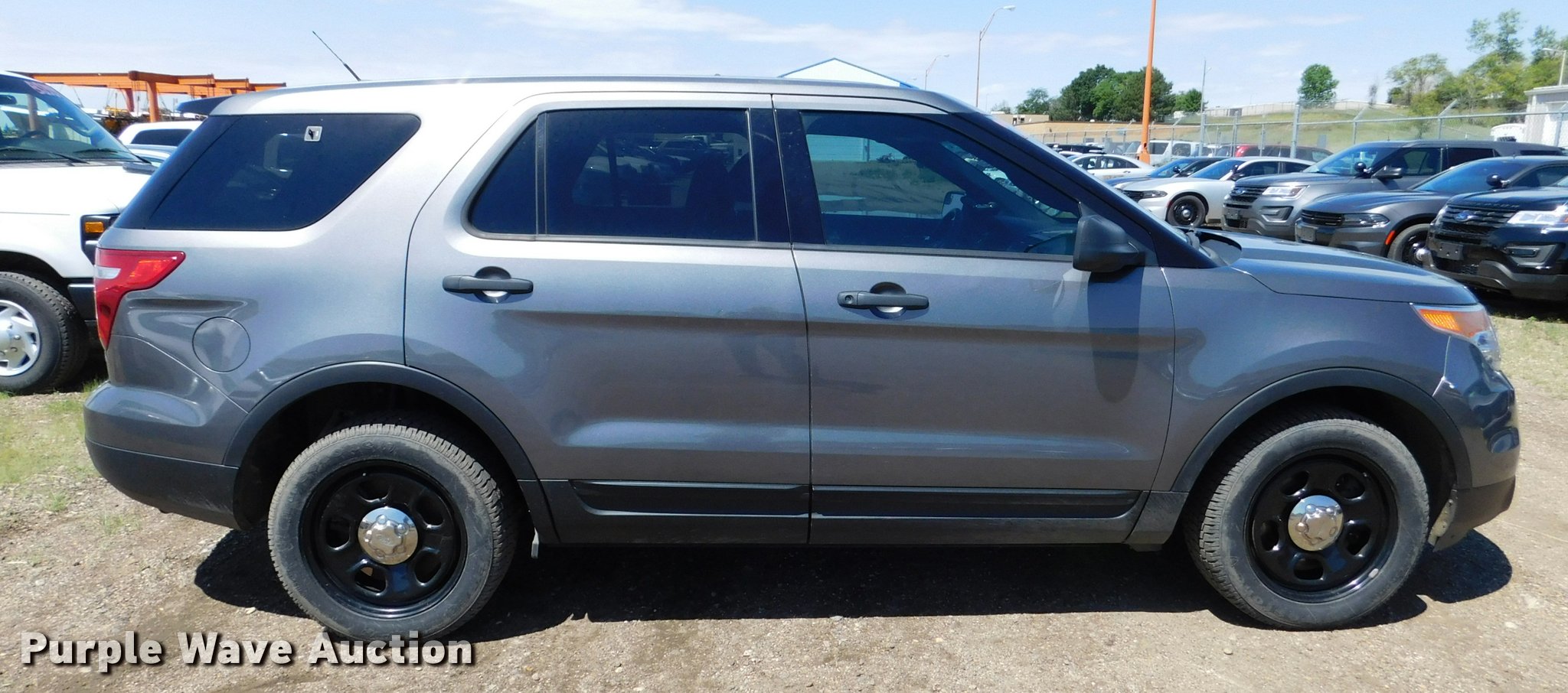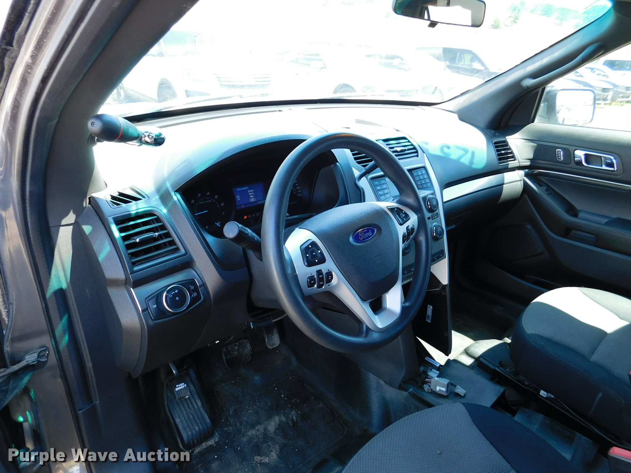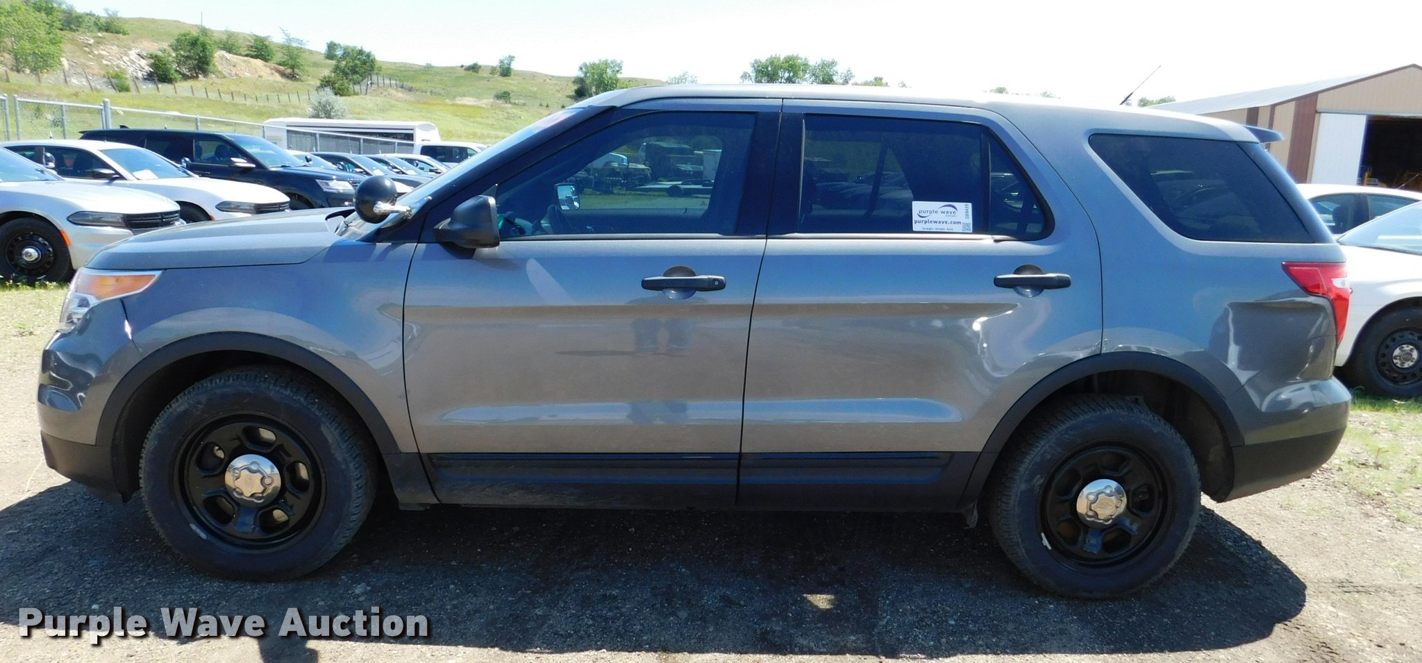 Purple Wave is selling a used Passenger Vehicle in South Dakota. This item is a 2013 Ford Explorer Police Interceptor SUV with the following: 125,337 miles on odometer, 3.7L V6 DOHC 24V gas engine, Automatic transmission, AC and heat, Tilt, Cruise, AM/FM/CD, Power windows, locks, mirrors, and seat, Cloth interior, Rear tow hook, 245/55R18 tires, Center console missing, Holes from police equipment, Rear seat are not bolted down, Hail damage, Cracked windshield, Asset# 351071, Equip ID 14BT036