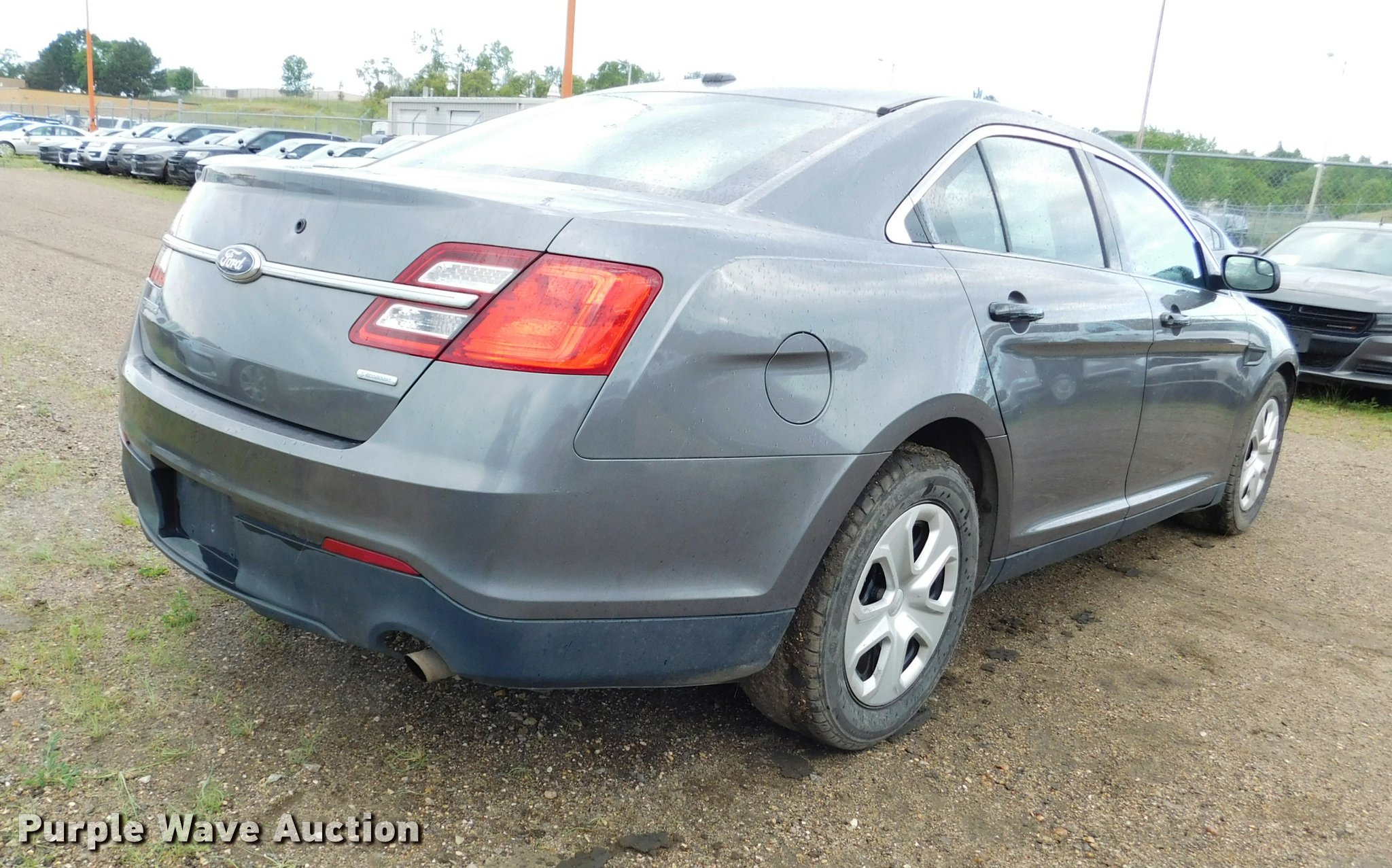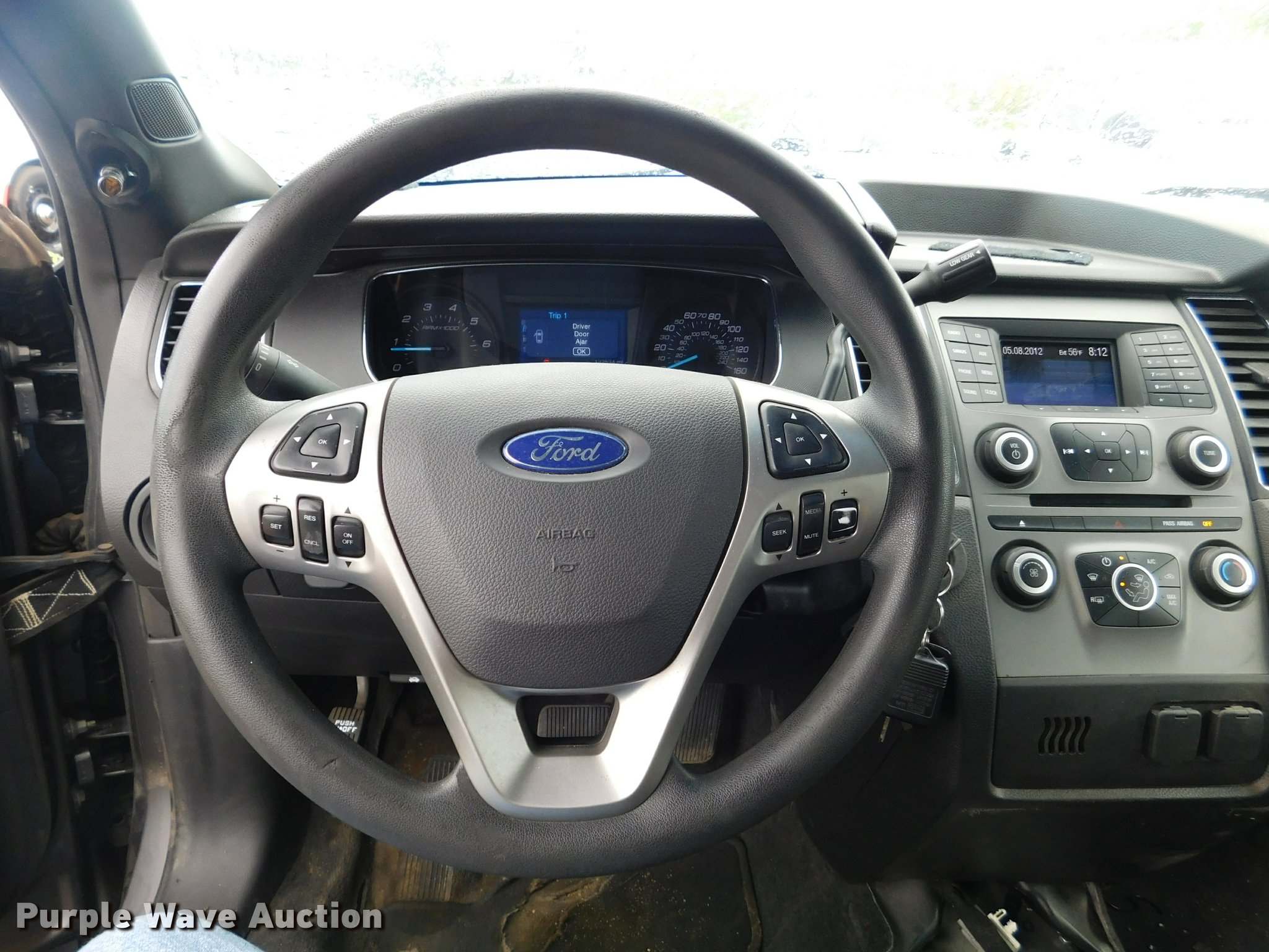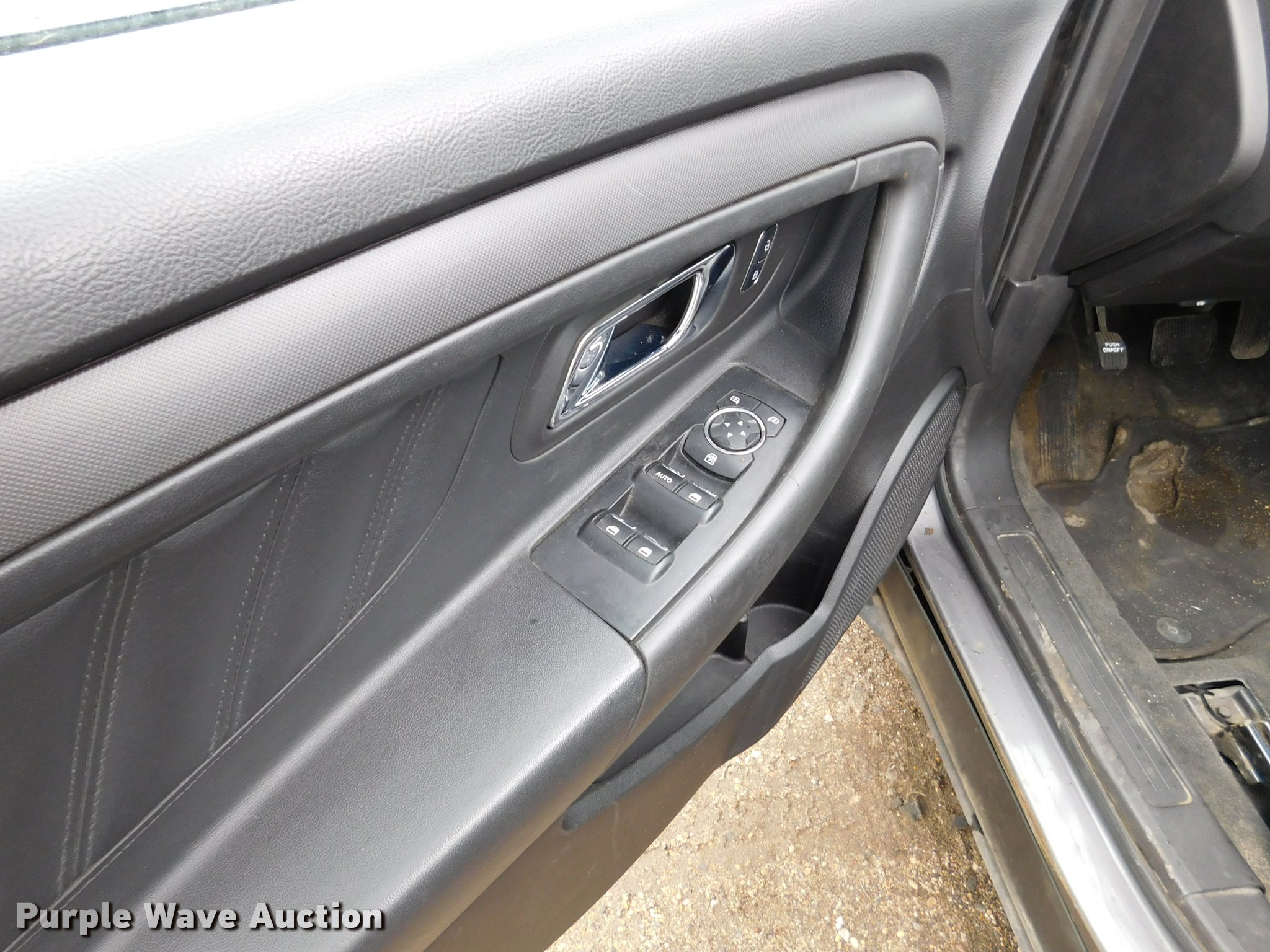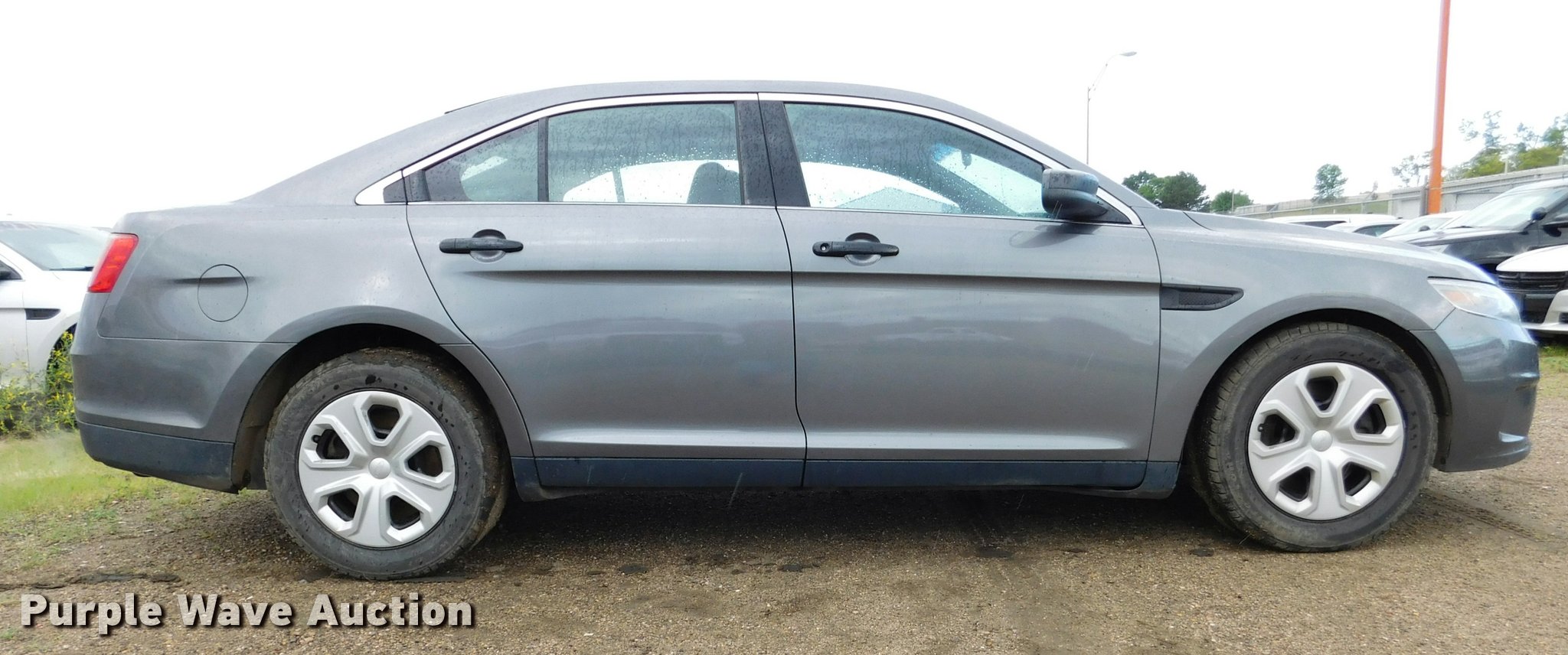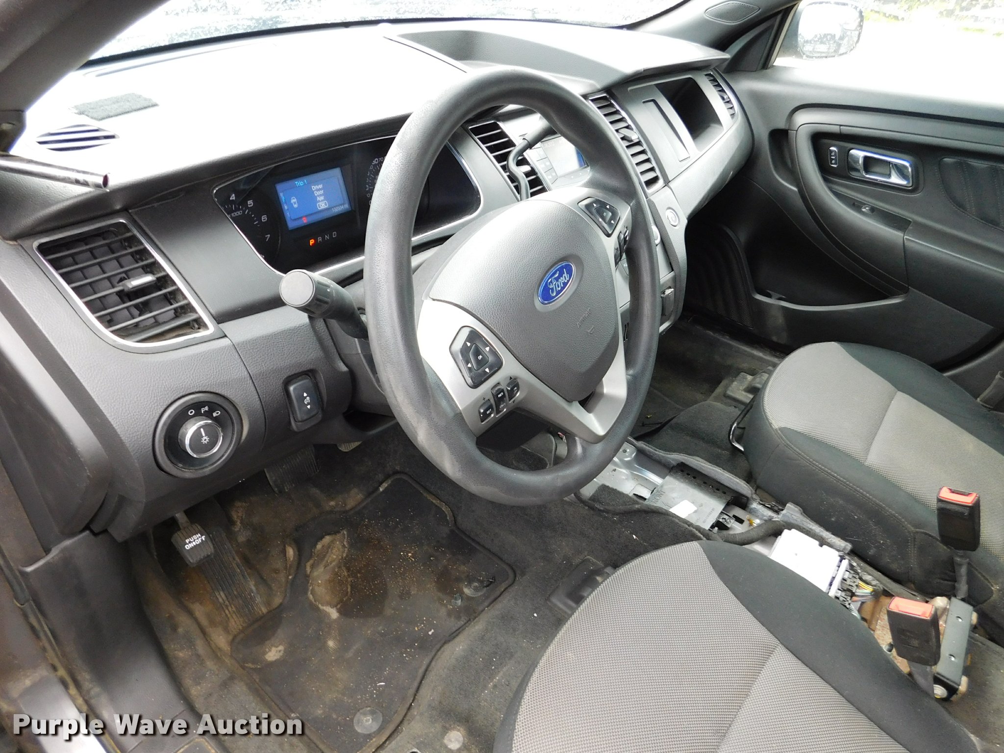 Purple Wave is selling a used Passenger Vehicle in South Dakota. This item is a 2013 Ford Taurus Police with the following: 132,535 miles on odometer, 3.5L V6 DOHC 24V gas engine, Automatic transmission, AC and heat, Tilt, Cruise, AM/FM/CD, Power windows, locks, mirrors, and seat, Cloth interior, 245/55R18 tires, Center console missing, Holes from police equipment, Asset# 351400, Equip ID 14AK259