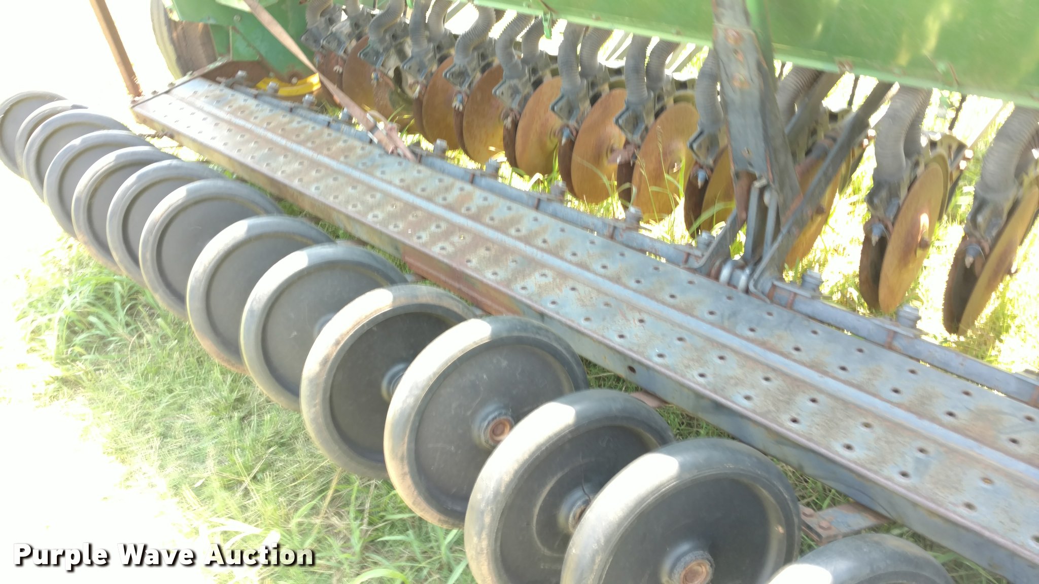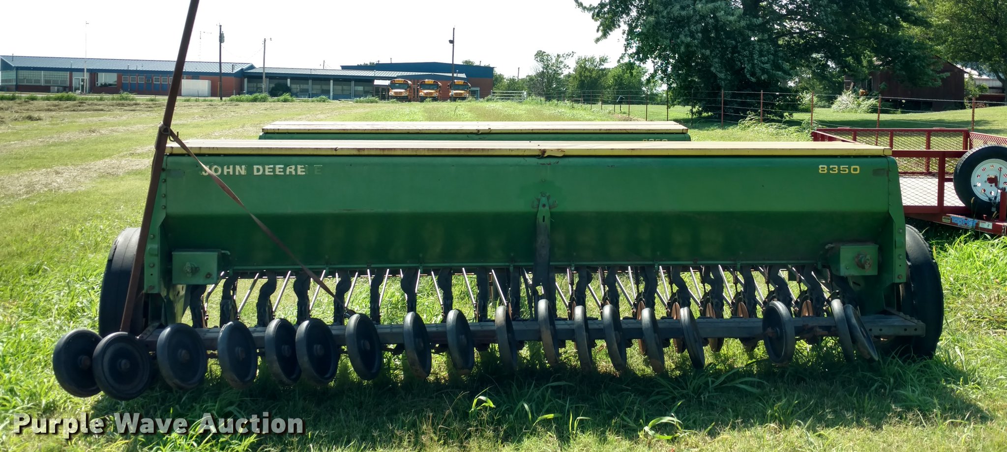 Purple Wave is selling a used Grain Drill or Seeder in Oklahoma. This item is a (2) John Deere 830 grain drills with the following: (20) row units, Double disk openers, Factory John Deere hitch, 7.50-20 tires, Hydraulic cylinders are not included, Serial 046635N