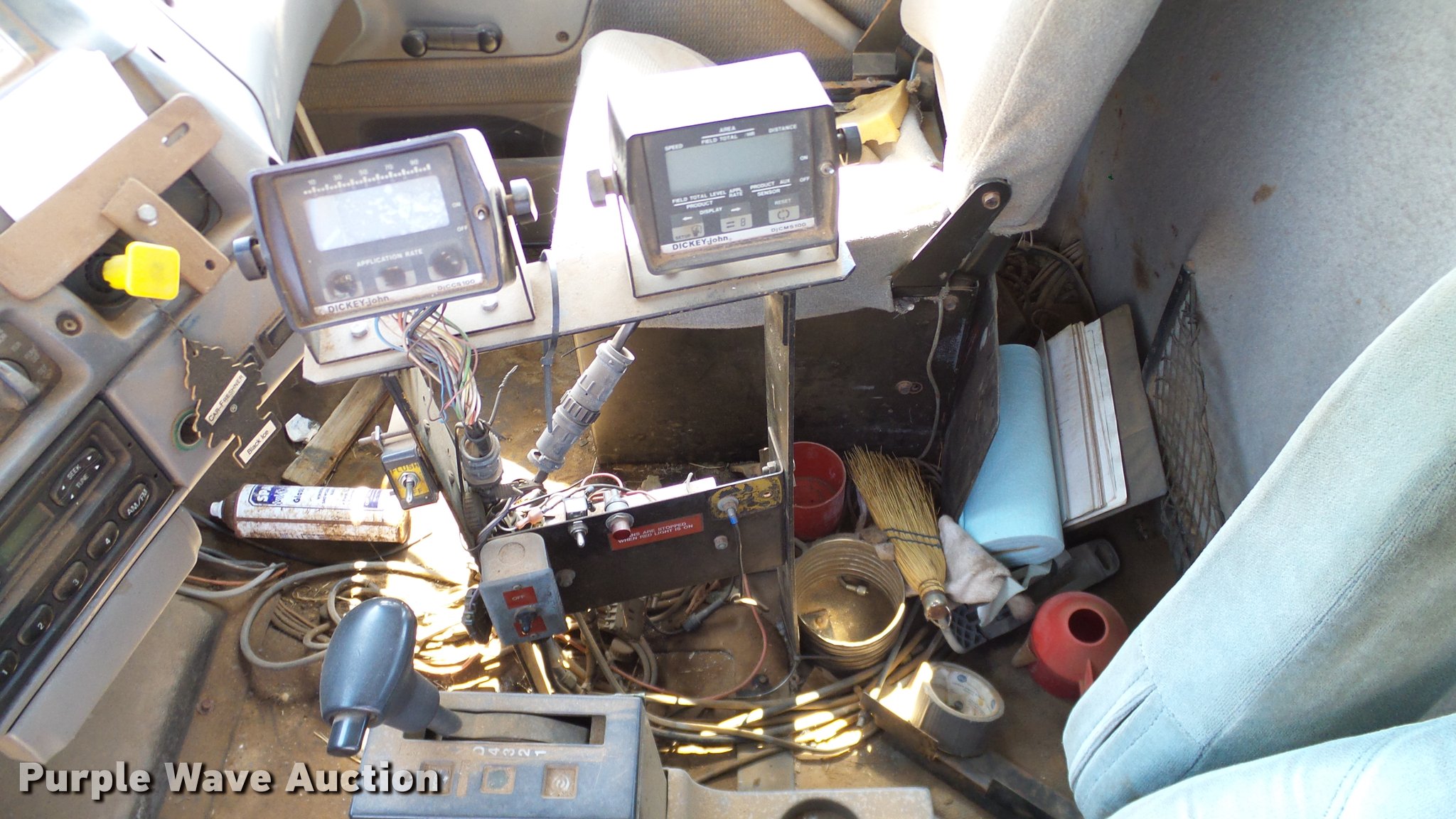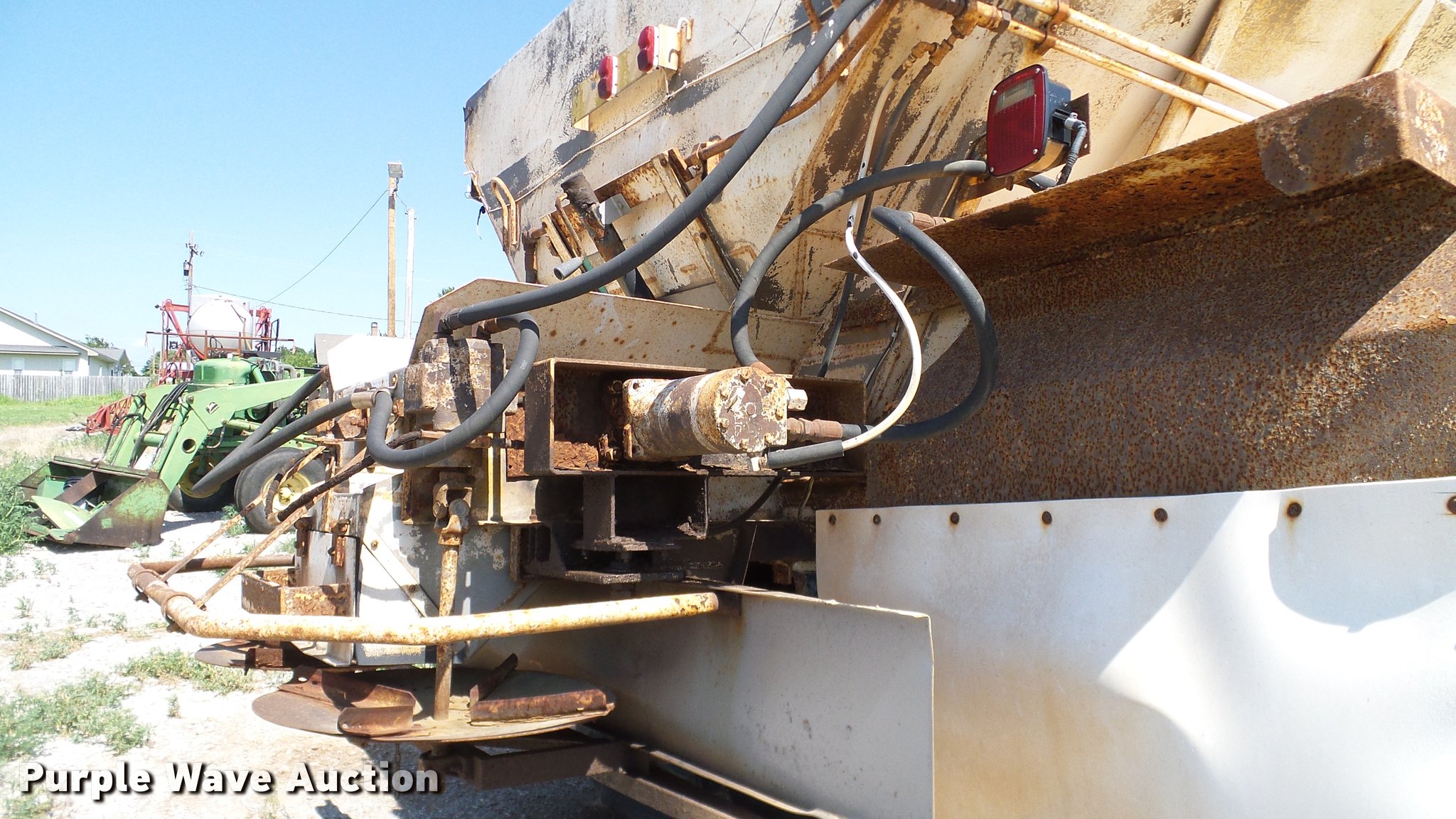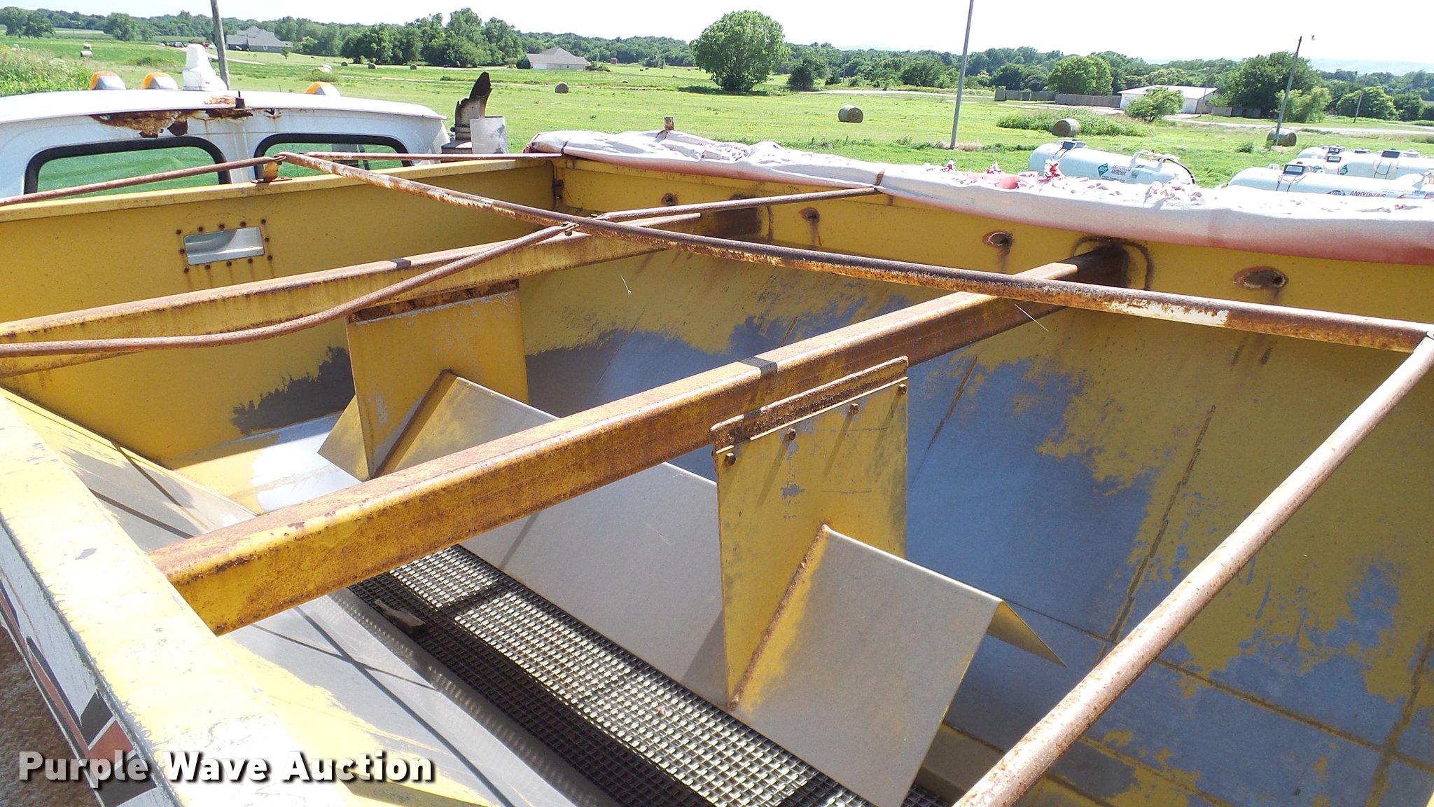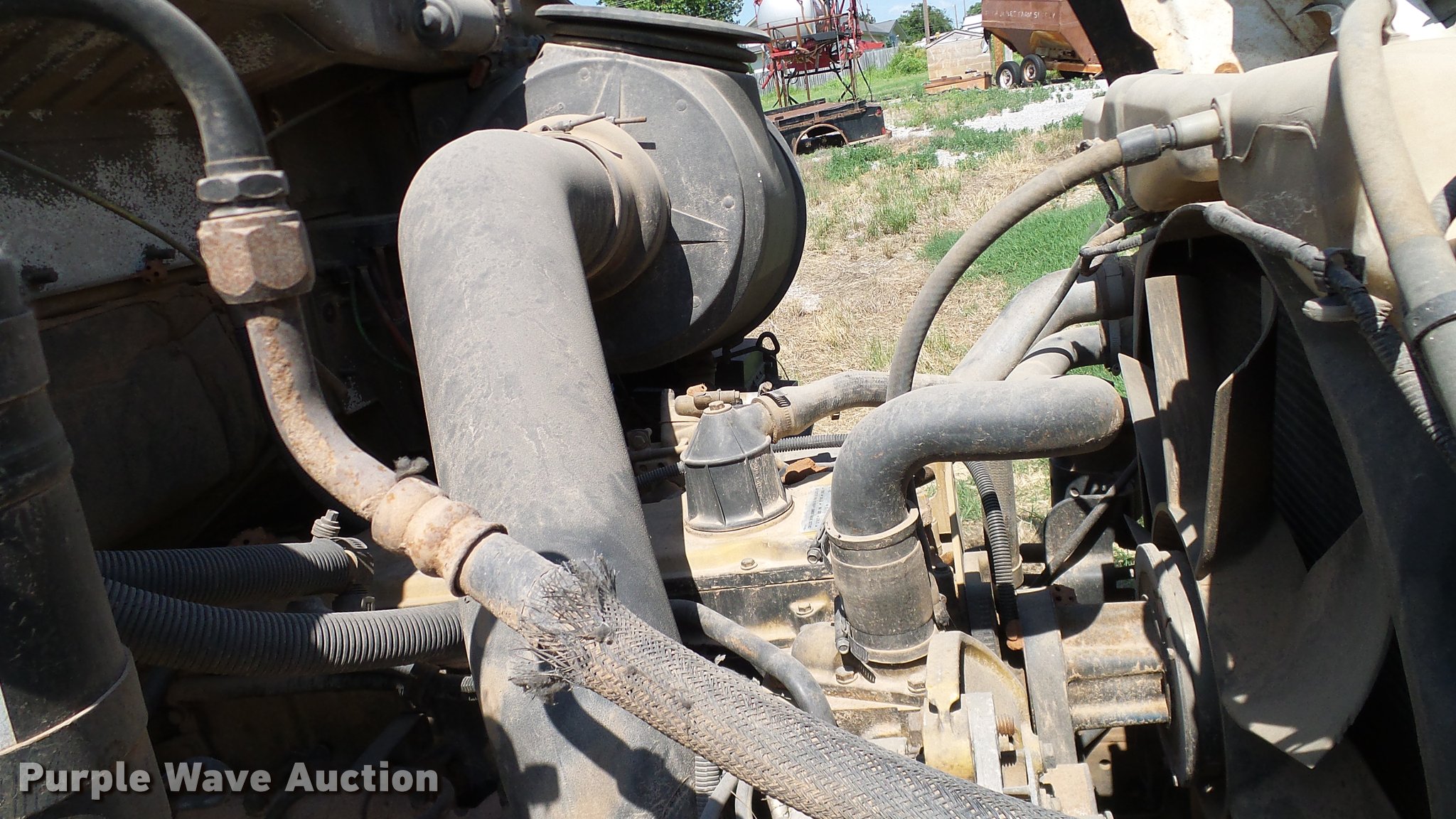 Purple Wave is selling a used Applicator Truck in Oklahoma. This item is a 1999 Sterling L8513 Stahly Field Cruiser applicator truck with the following: 102,166 miles on odometer, 8,306 hours on meter, Caterpillar 3126 7.2L L6 turbo diesel engine, 300 HP, Serial 7AS48349, Allison automatic transmission, AC and heat, Cruise, AM/FM, Air suspension seat, Work lights, Dickey John DJCCS/00/DJCMS100 monitors, Simonsen KB71255DJ stainless steel dry fertilizer spreader bed, 14'L, Dual spinners, Rollover tarp, 20"W conveyor belt, Serial 8003210, Fenders, Air brakes, Front flotation wheels only, 66x43.00-25 rear flotation tires, Left rear tire flat, Tarp damaged, Non-operational unit, parts only