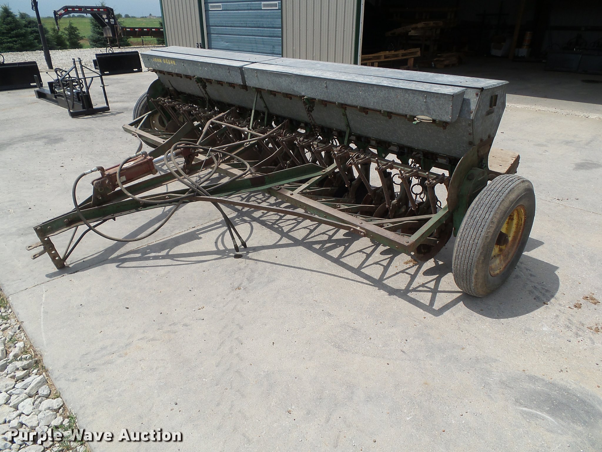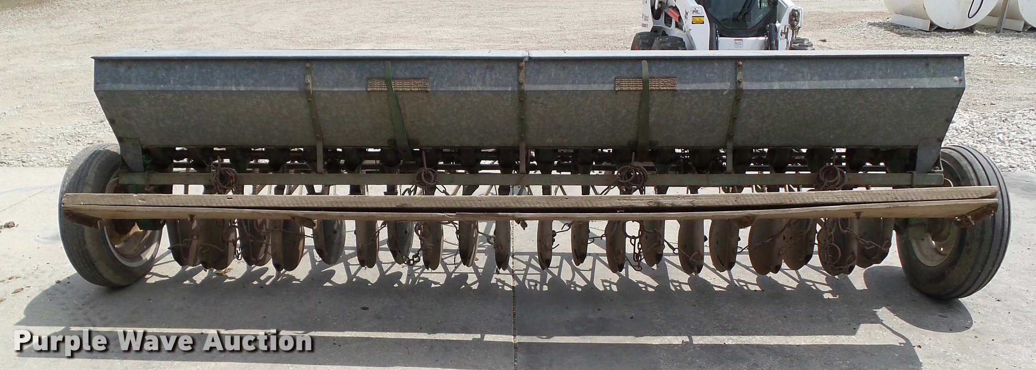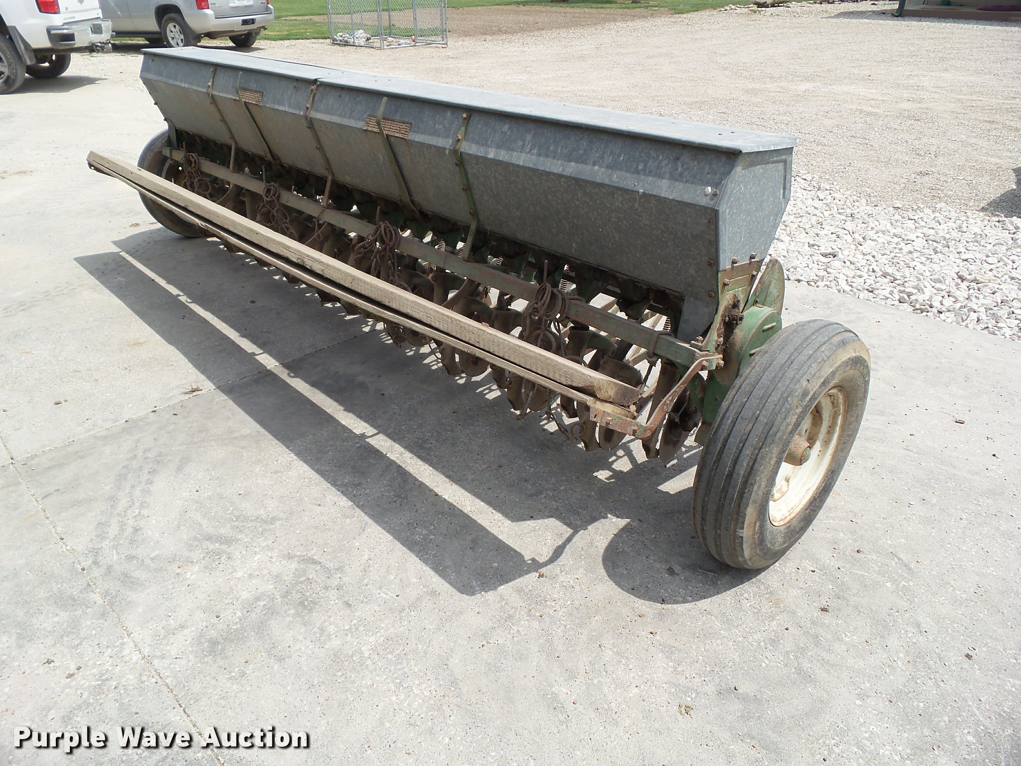 Purple Wave is selling a used Grain Drill or Seeder in Iowa. This item is a John Deere B grain drill with the following: 12'W, Hydraulic raise, Bulk fill system, Drawbar, 7.60-15 tires, Serial 5411