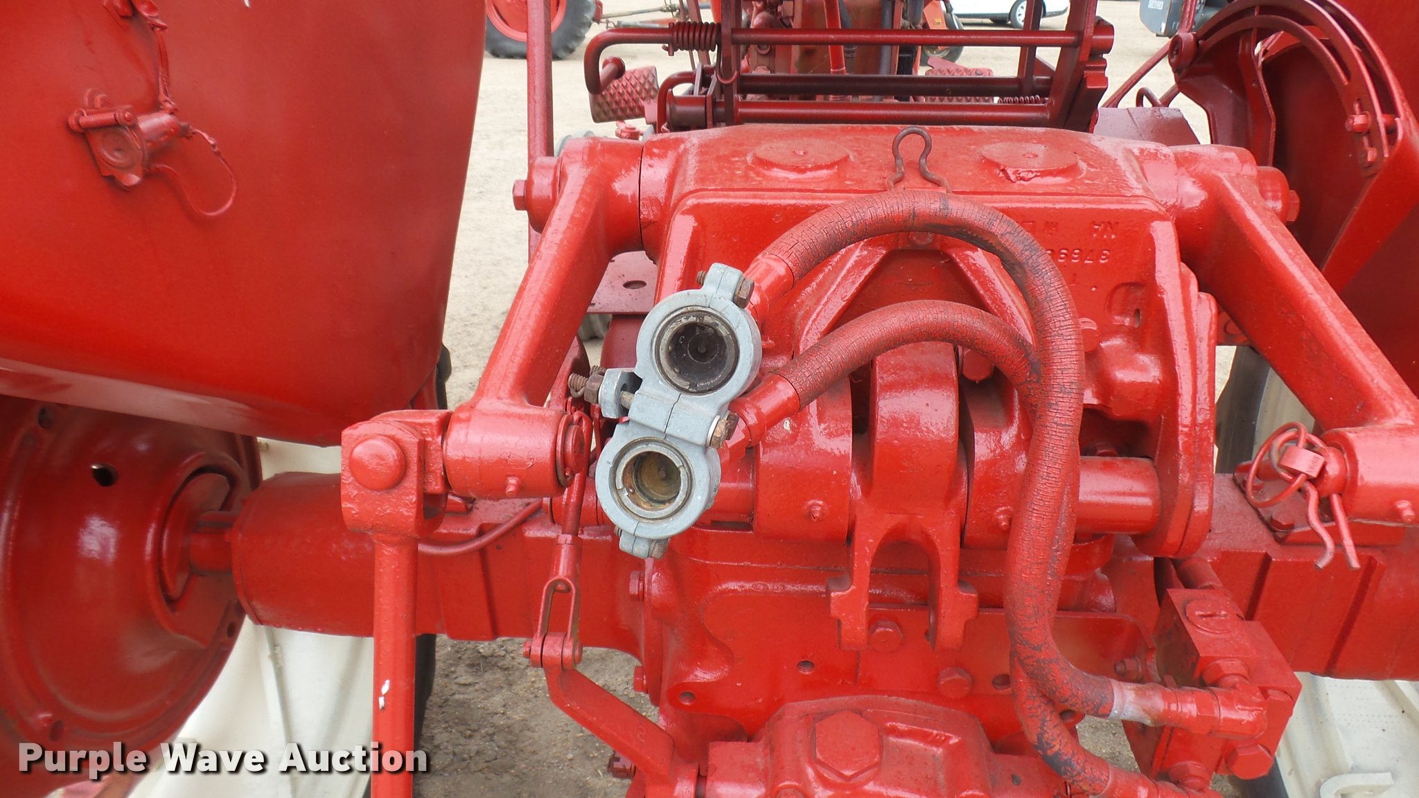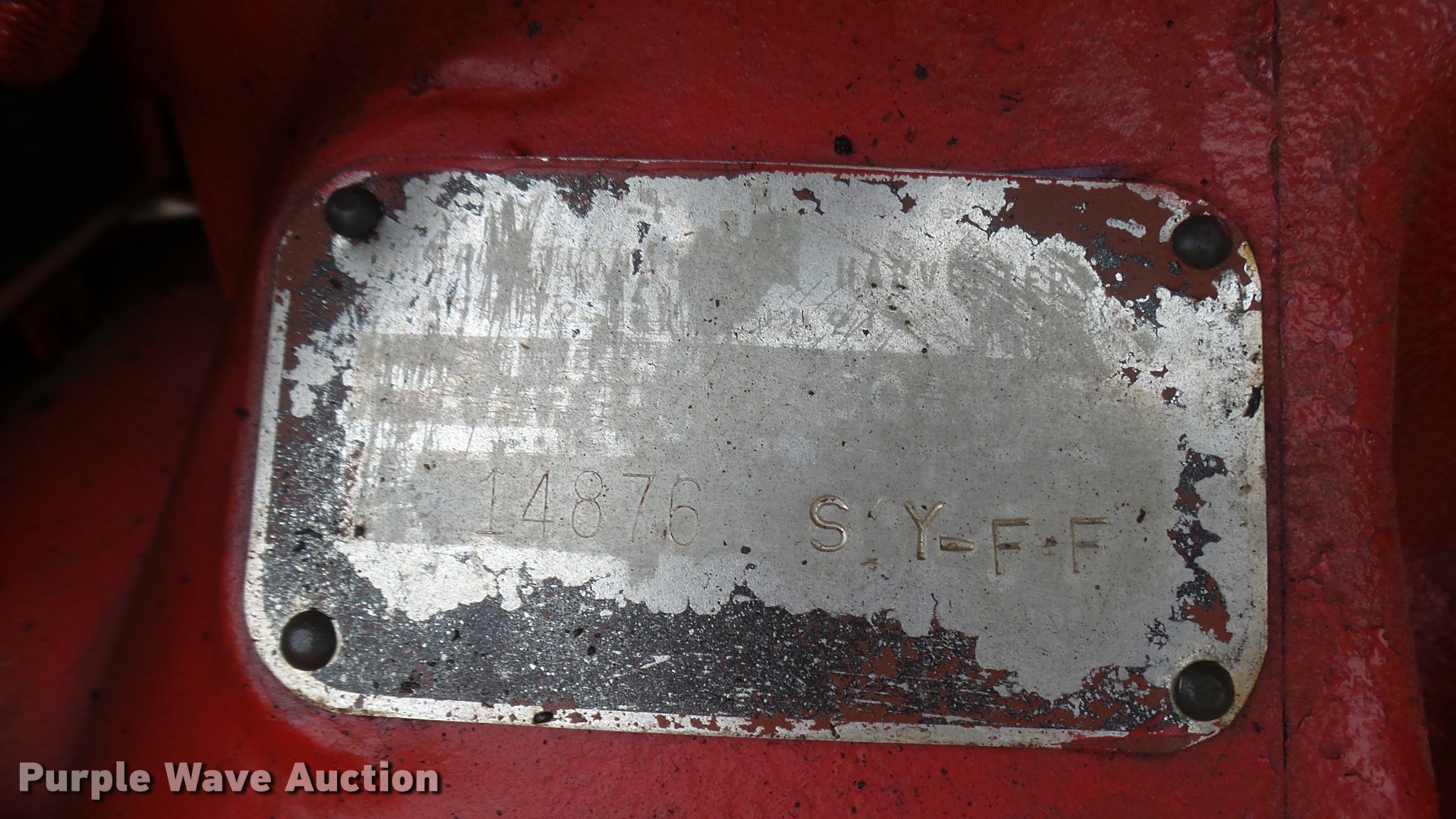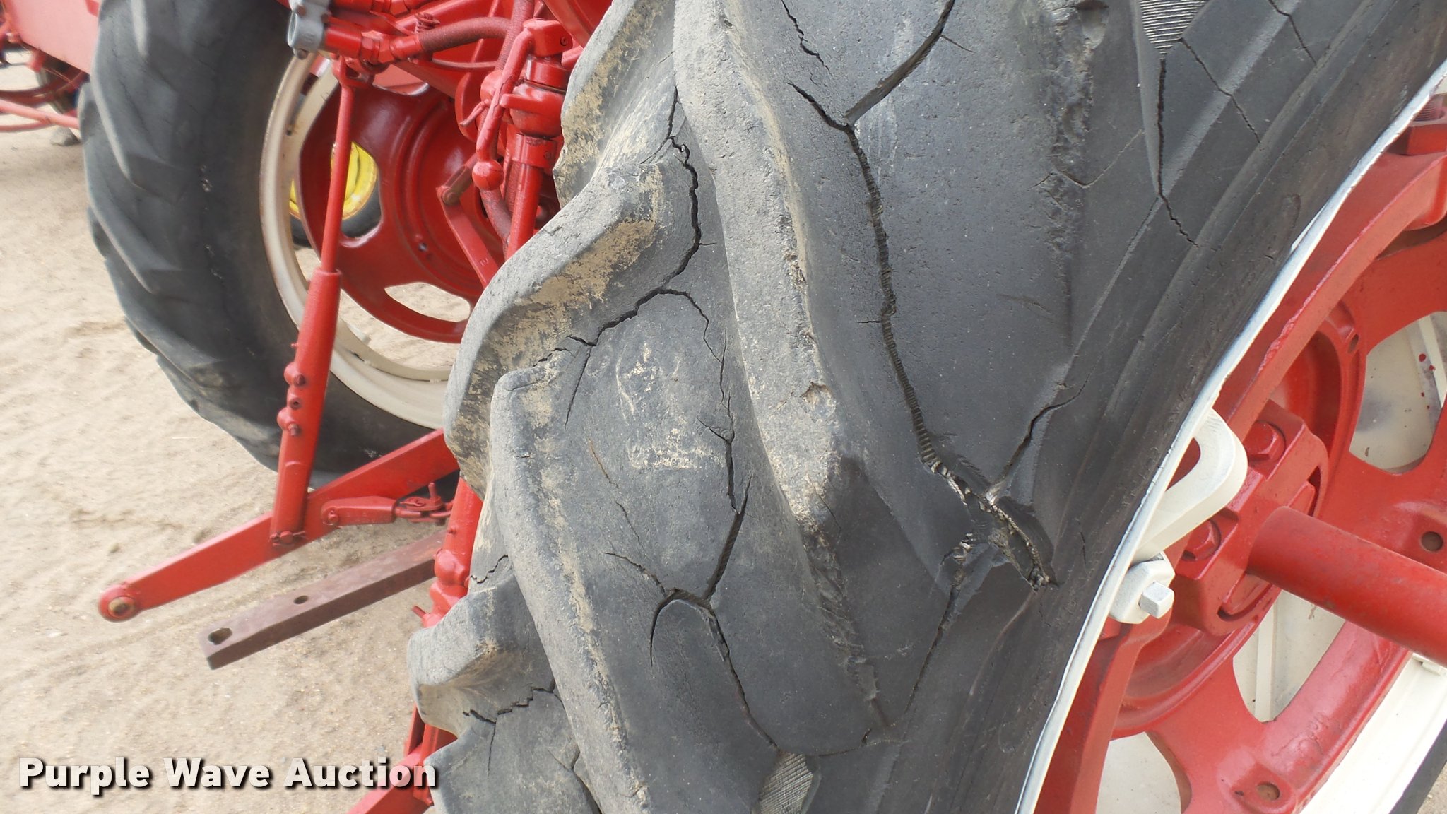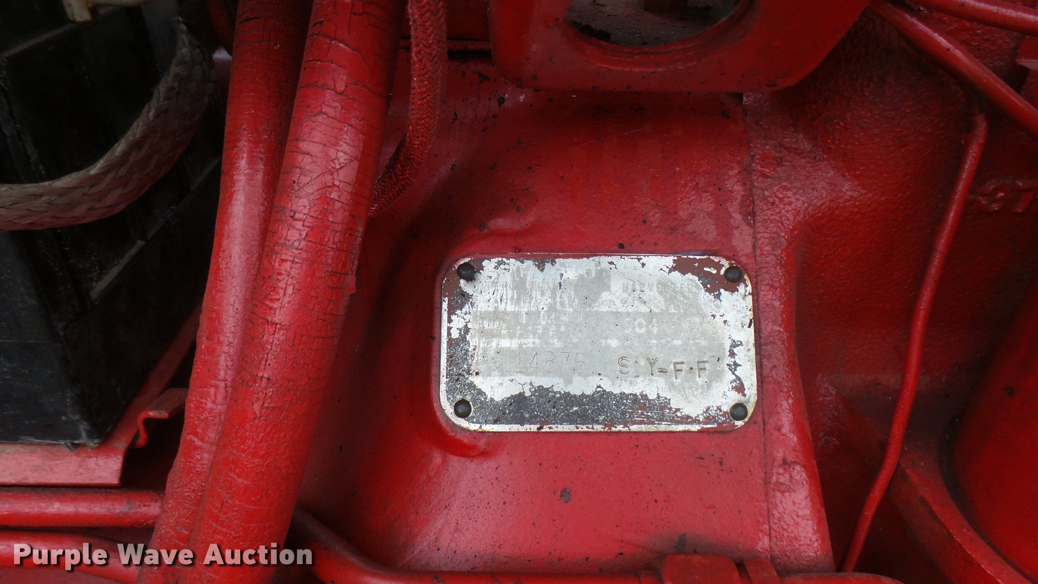Purple Wave is selling a used Tractor in Kansas. This item is a Farmall 504 tractor with the following: Unknown hours on meter, Four cylinder gas engine, Manual transmission, 5F-1R gears, Work lights, 540 PTO, Rear hydraulic remote set, 6.50-16 front tires, 13.6-38 rear tires, Serial 14876