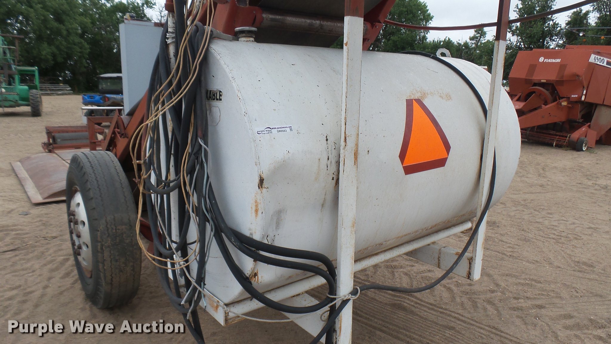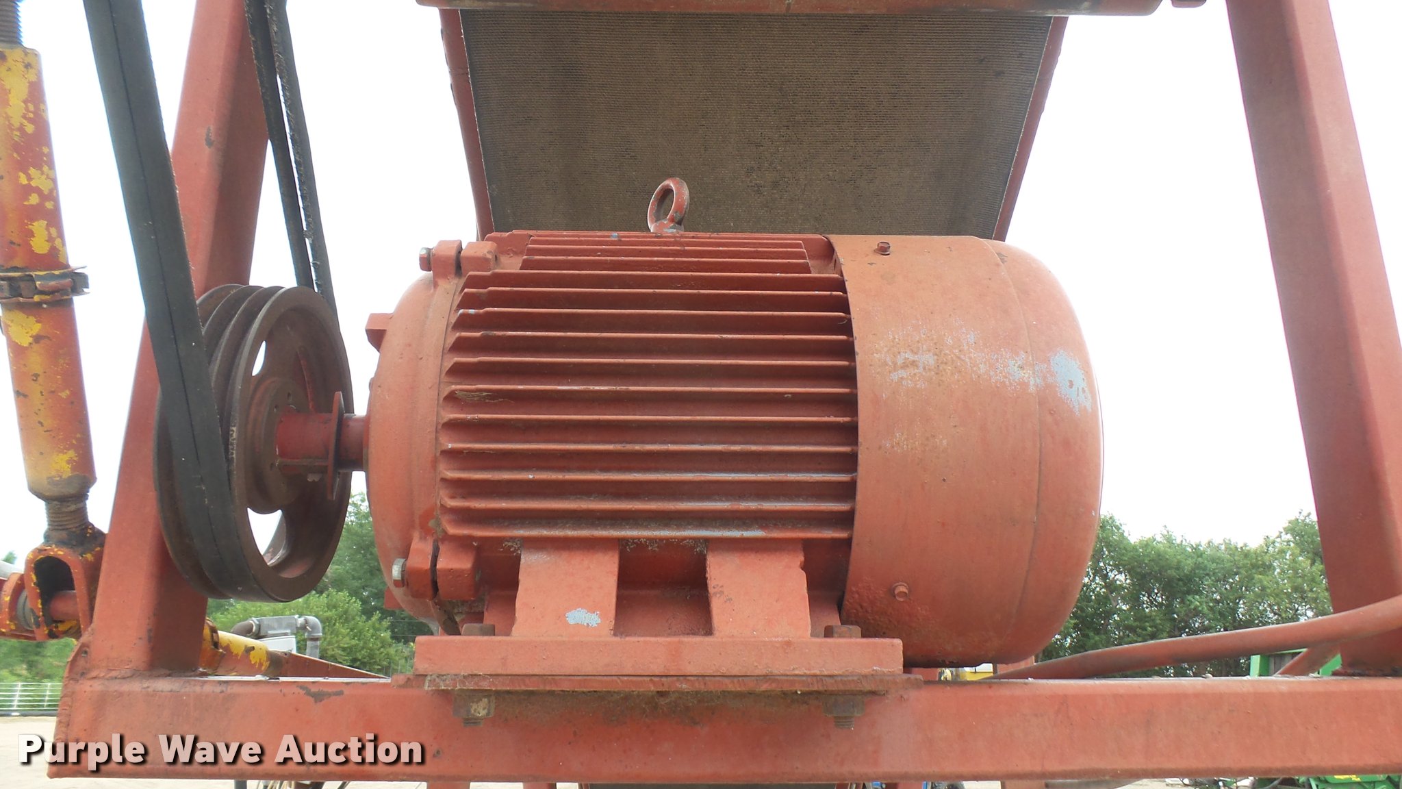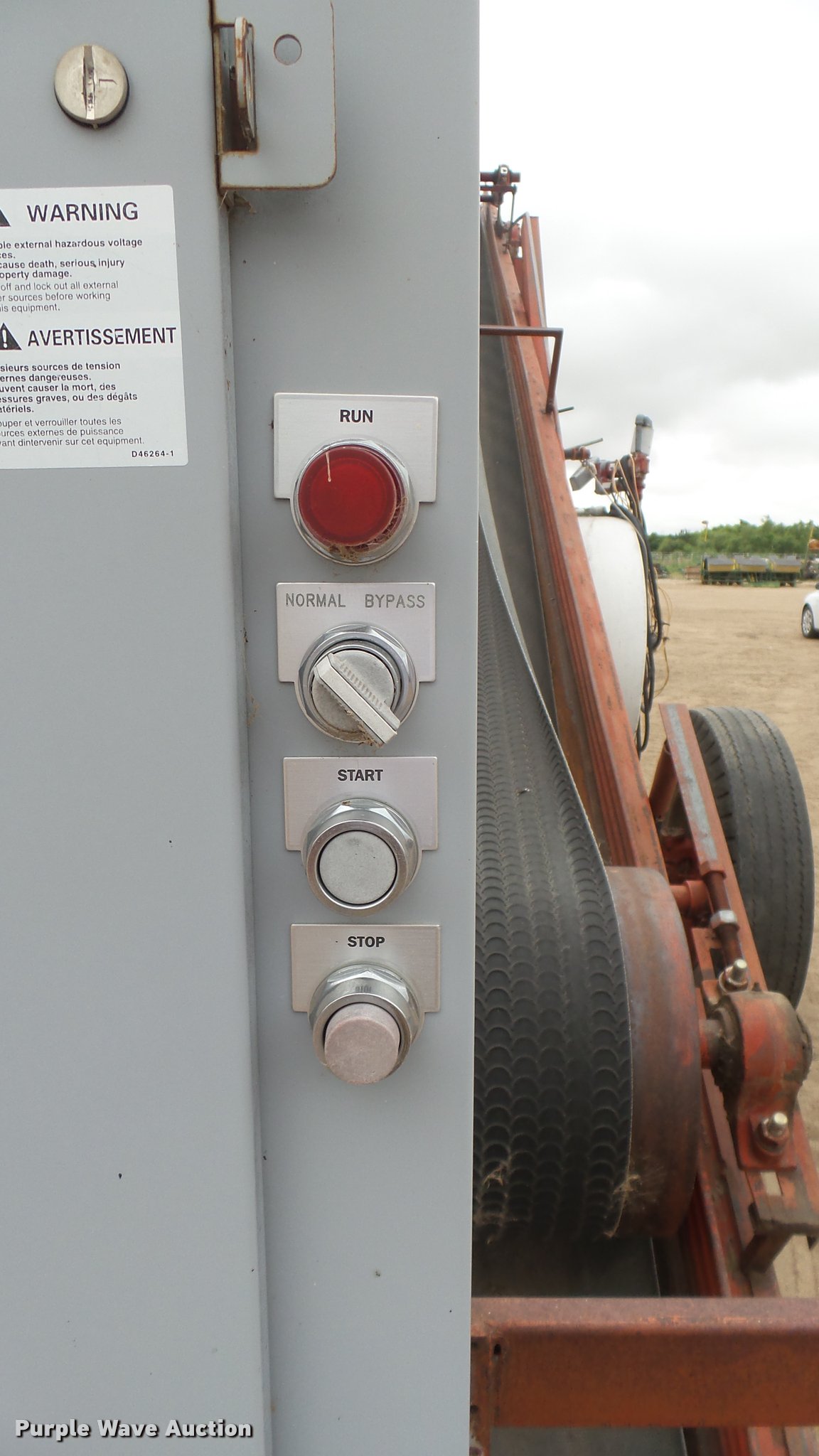 Purple Wave is selling a used Auger or Conveyor in Kansas. This item is a Grain conveyor with the following: Approx. 45'L x 8'W overall, 25'L, Approx. 13'H conveyor, 24"W belt, Electric motor, Three phase, Steel tank, Pump, Hose, Siemens switch, Pin hitch, 10.00-22 transport tires