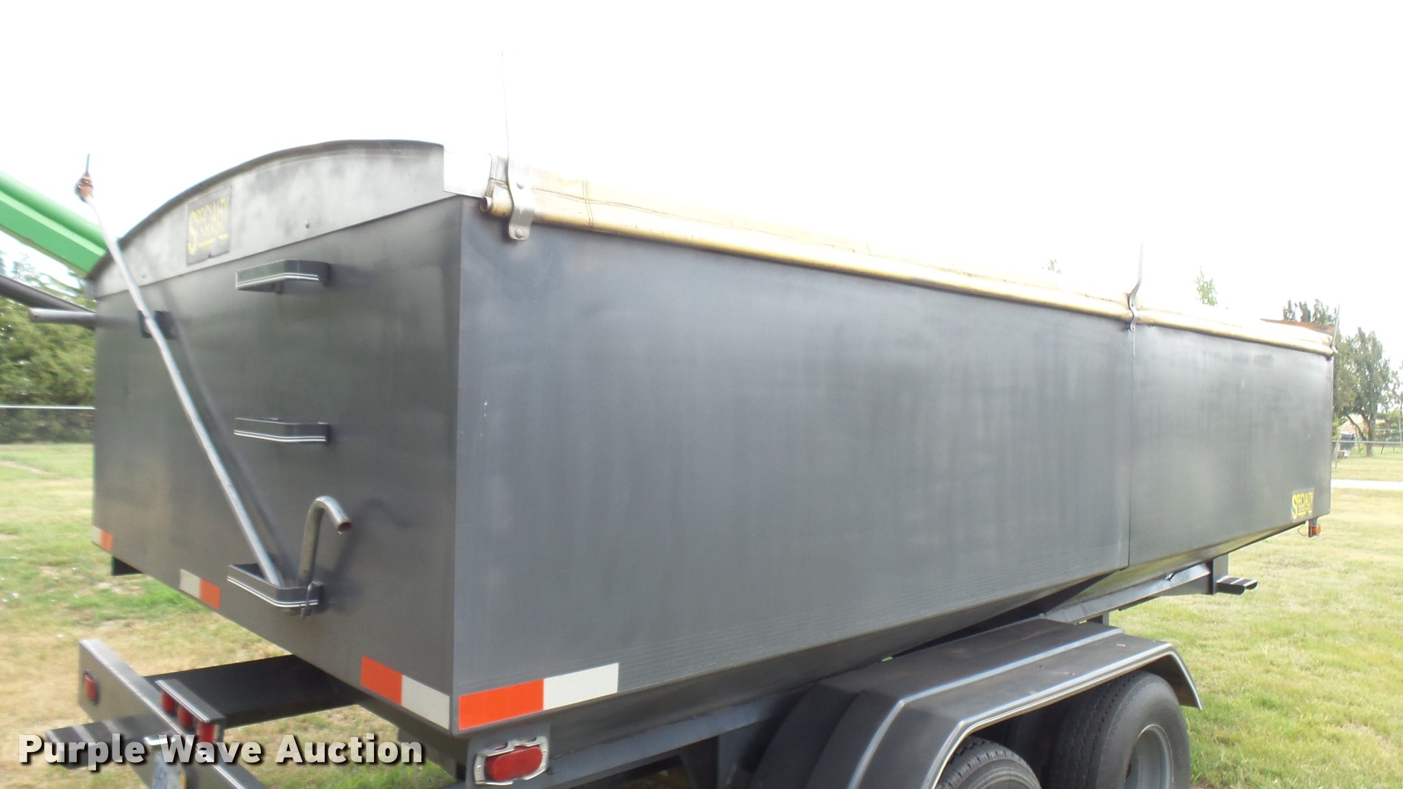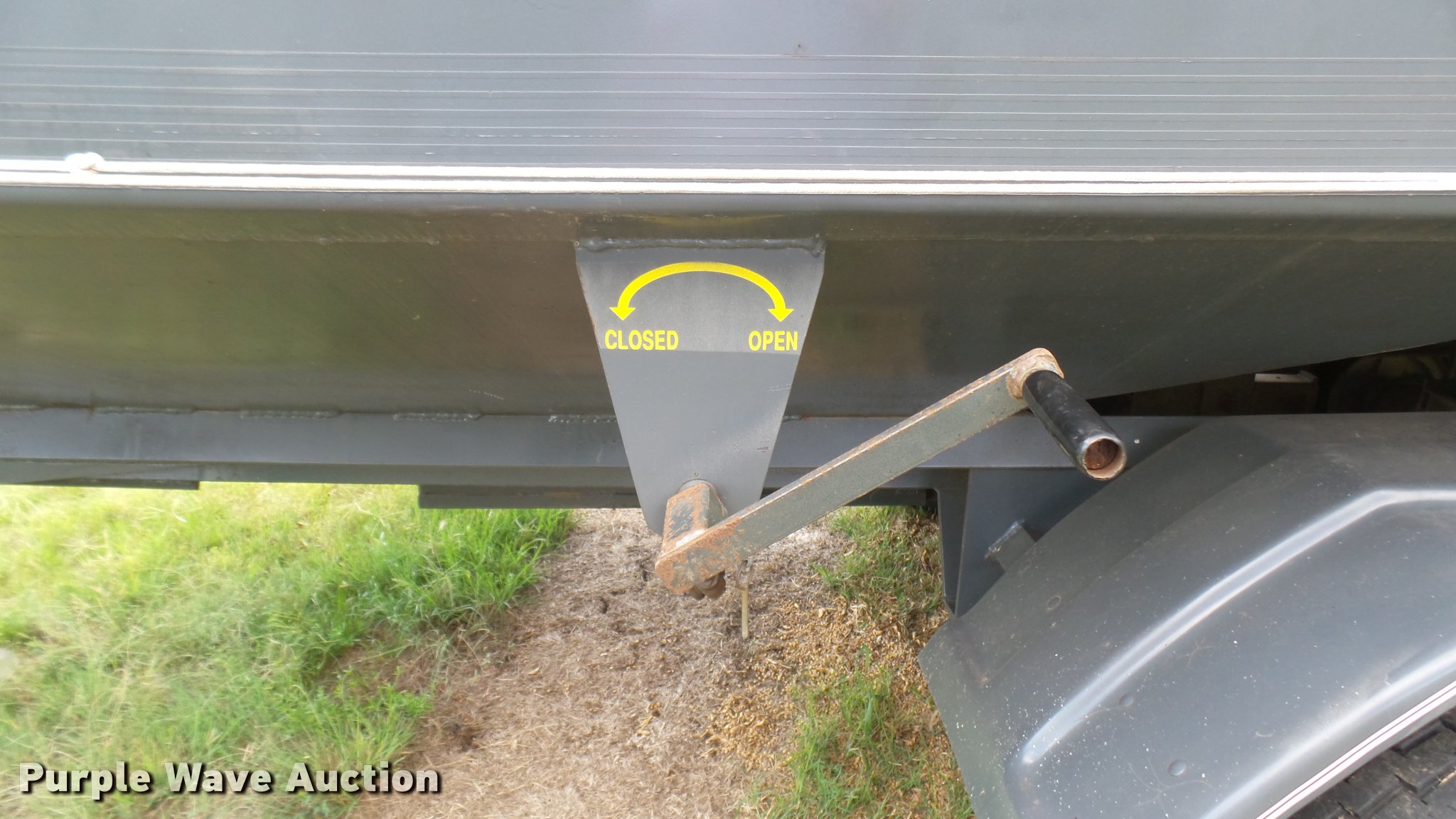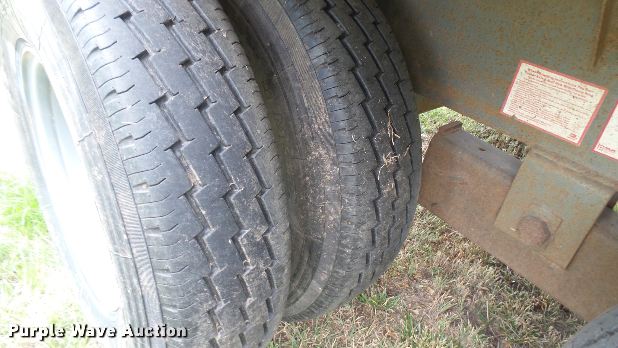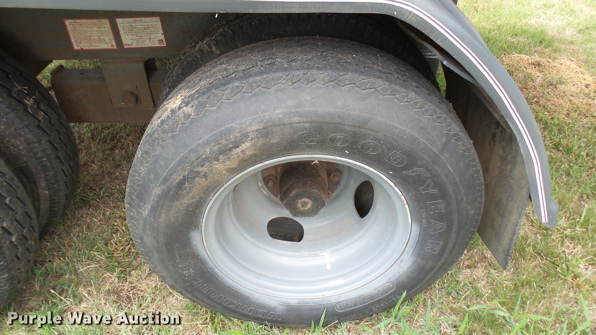 Purple Wave is selling a used Grain or Commodity Trailer in Kansas. This item is a 1993 Specialty hopper bottom grain trailer with the following: 16'L x 8'W, 36" side height, 400 bushel capacity, Rollover tarp, Gooseneck hitch, Tandem axle, 7.50R16 tires, GVWR 24,000 lbs