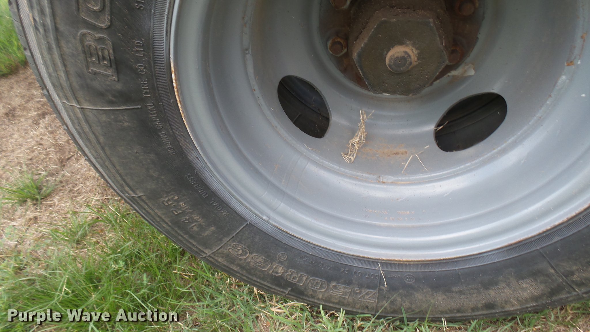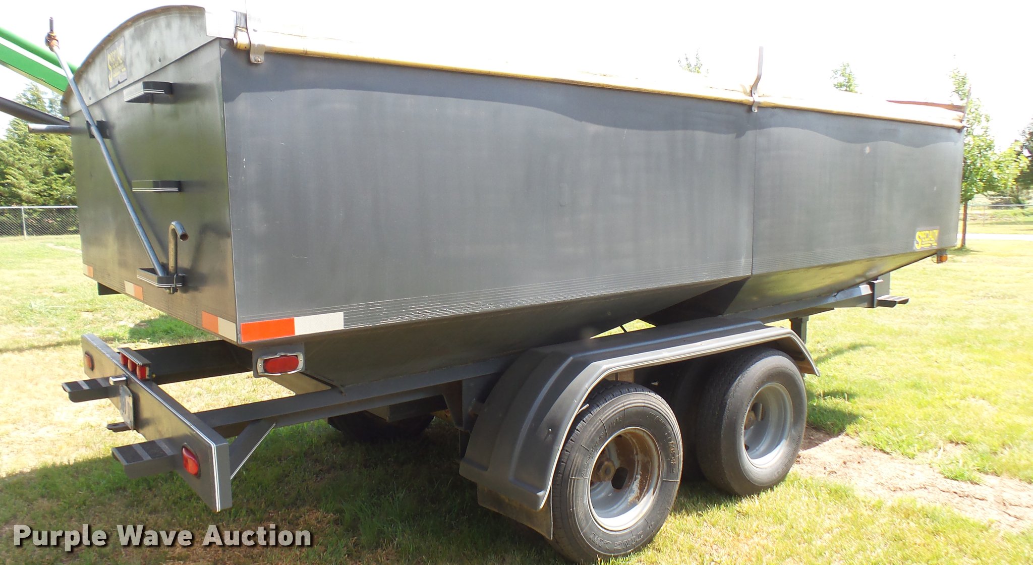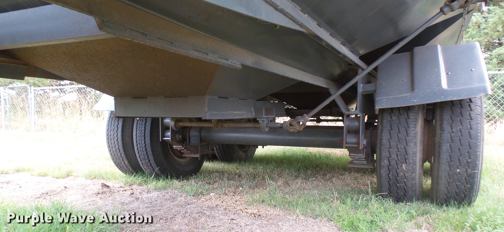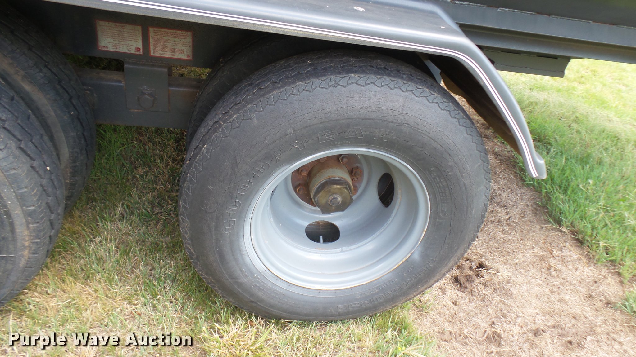 Purple Wave is selling a used Grain or Commodity Trailer in Kansas. This item is a 1993 Specialty hopper bottom grain trailer with the following: 16'L x 8'W, 36" side height, 400 bushel capacity, Rollover tarp, Gooseneck hitch, Tandem axle, 7.50R16 tires, GVWR 24,000 lbs