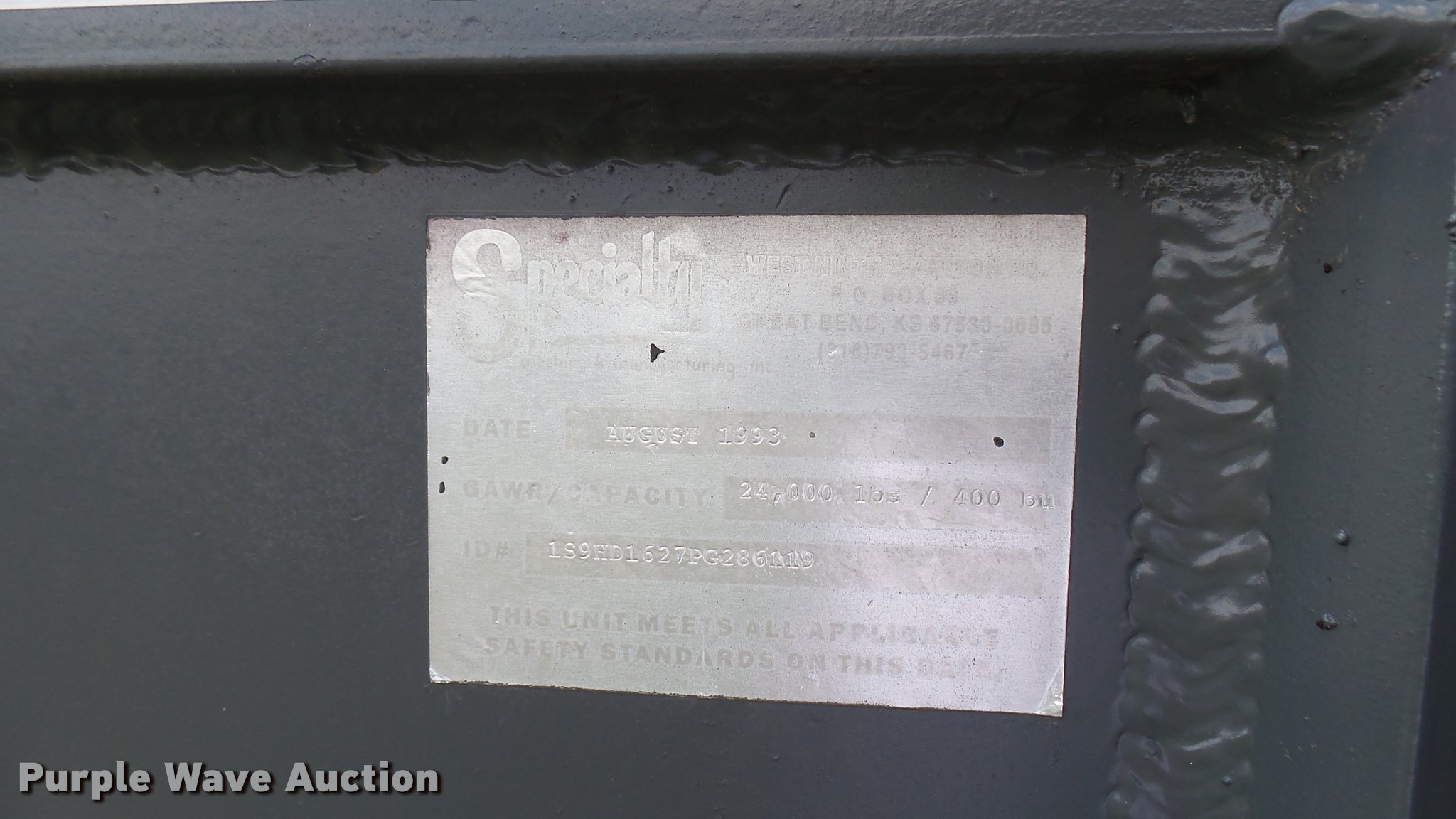 Take a look at this used 1993 Specialty hopper bottom grain trailer being sold on August 9th, 2017 in the SOLD! August 9 Ag Equipment Auction made by Specialty. Take a look at all of the item information below or take a look at similar auctions for Ag Trailers.