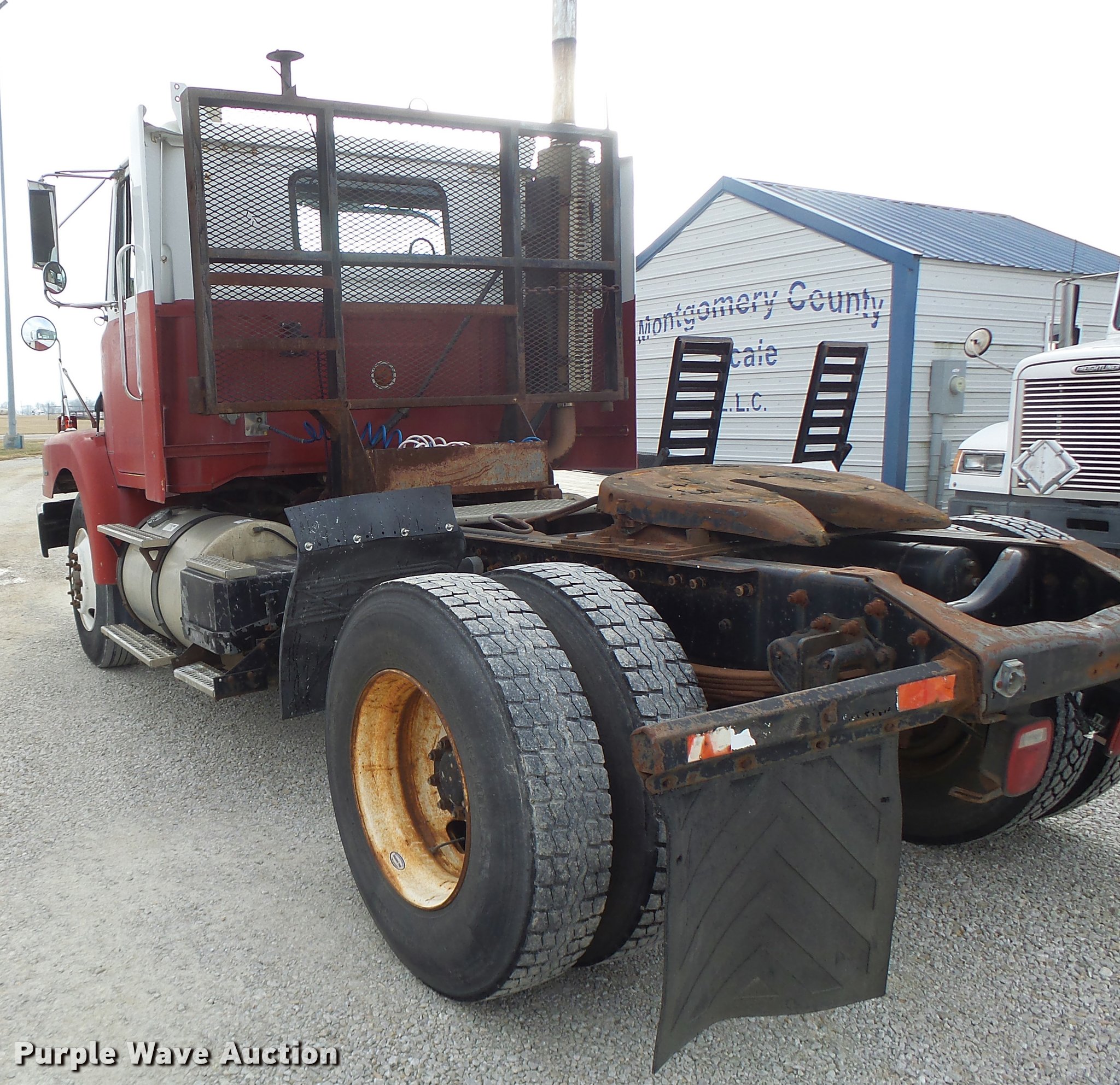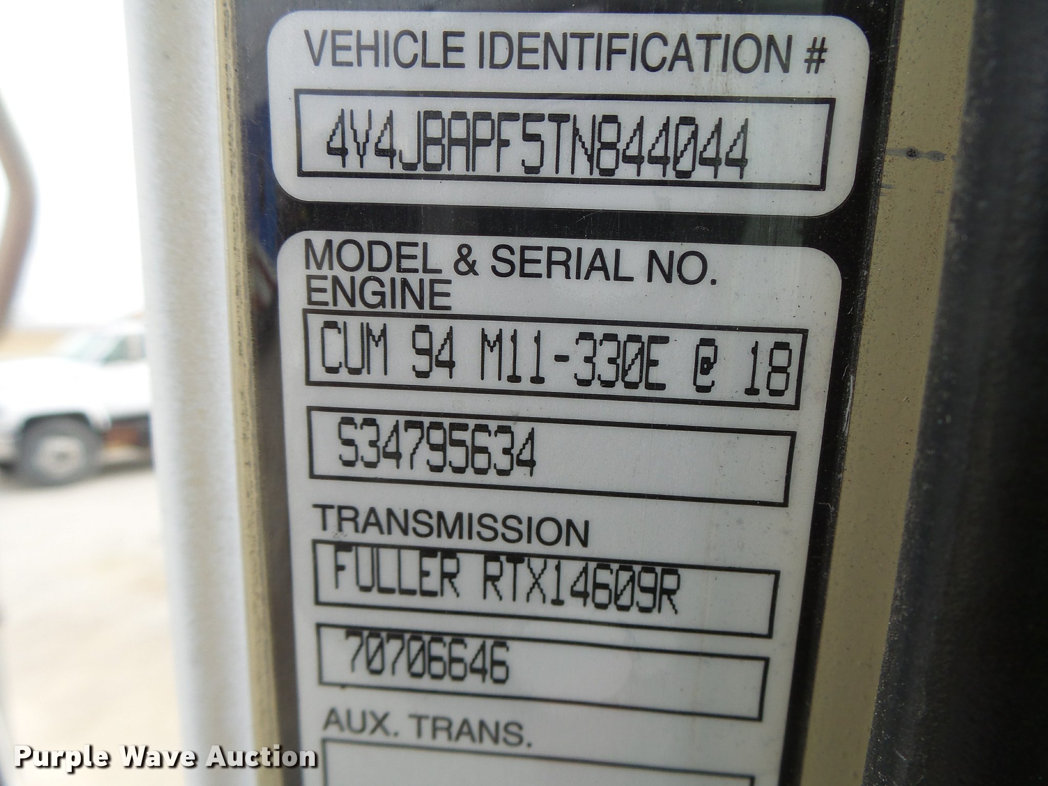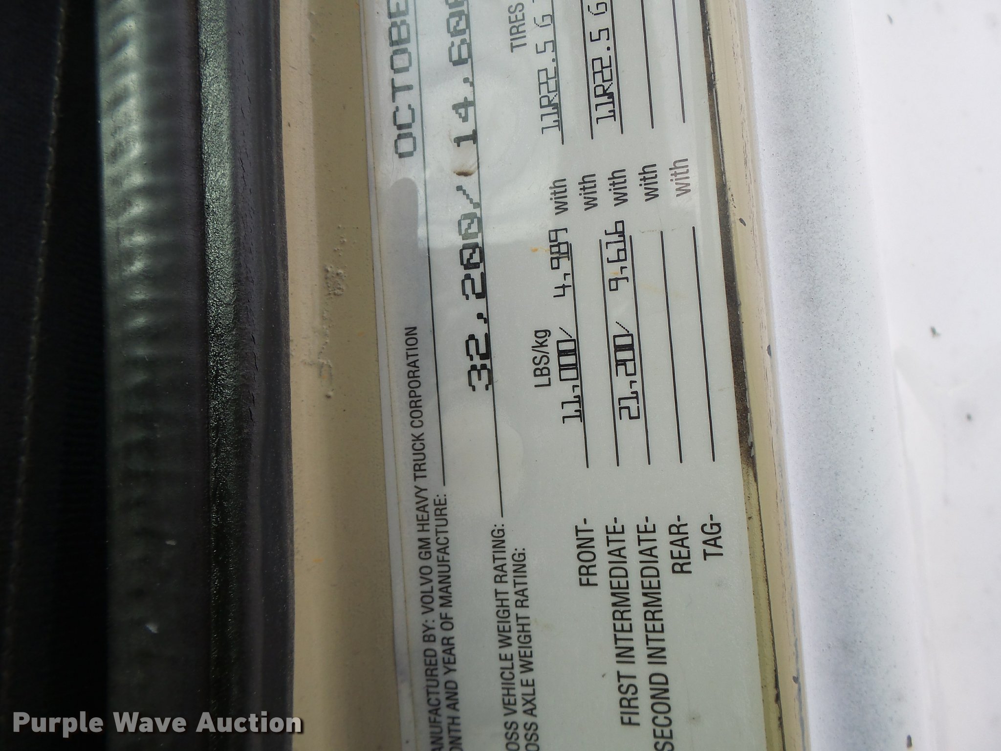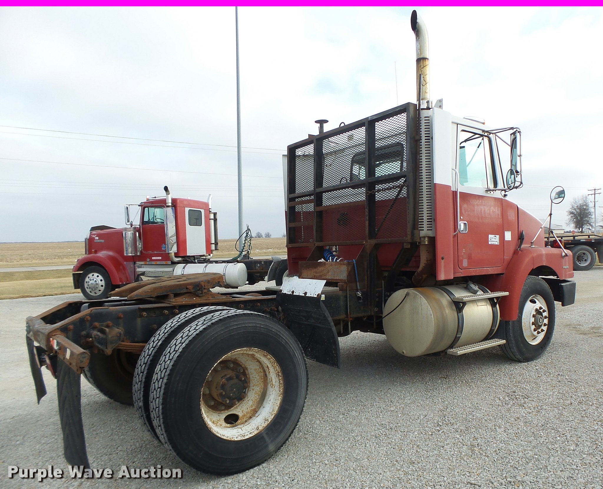 Purple Wave is selling a used Truck Tractor in Missouri. This item is a 1996 Volvo WG semi truck with the following: 238,939 miles on odometer, Cummins M11 10.8L L6 turbo diesel engine, Eaton Fuller RTX14609R nine speed manual transmission, Single axle, AC and heat, Air suspension seat, Fixed fifth wheel plate, Single exhaust stack, Dual fuel tanks, Mud flaps, Spring suspension, Air brakes, 11R22.5 tires, GVWR 32,200 lbs
