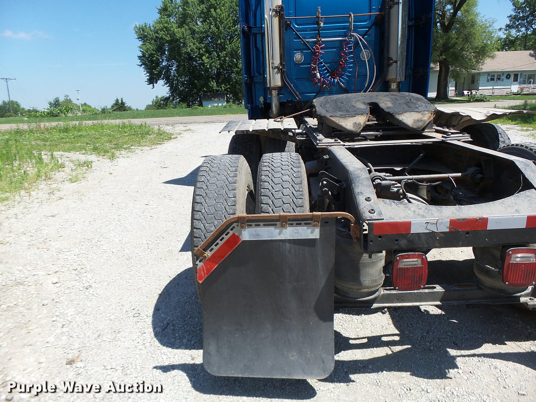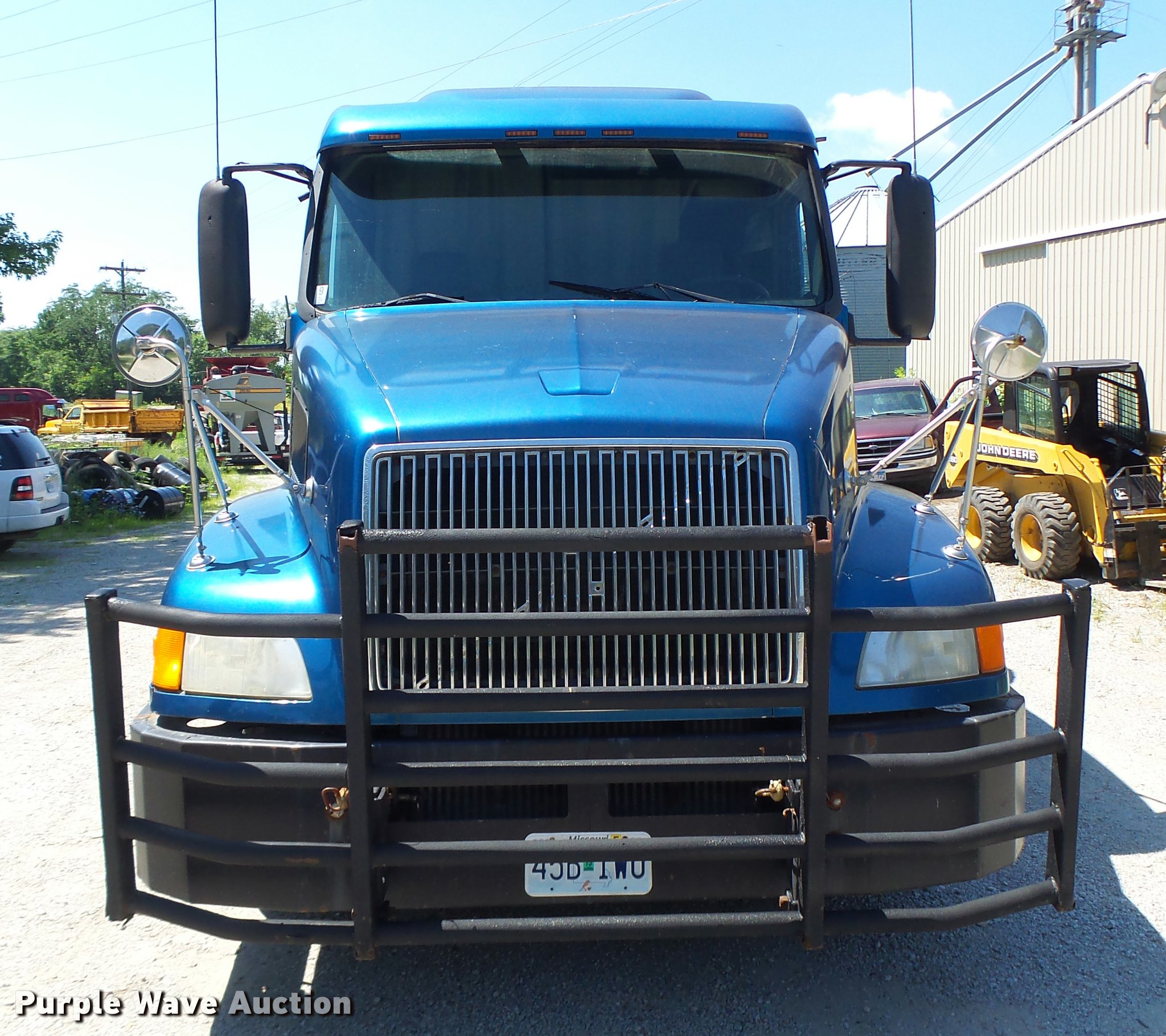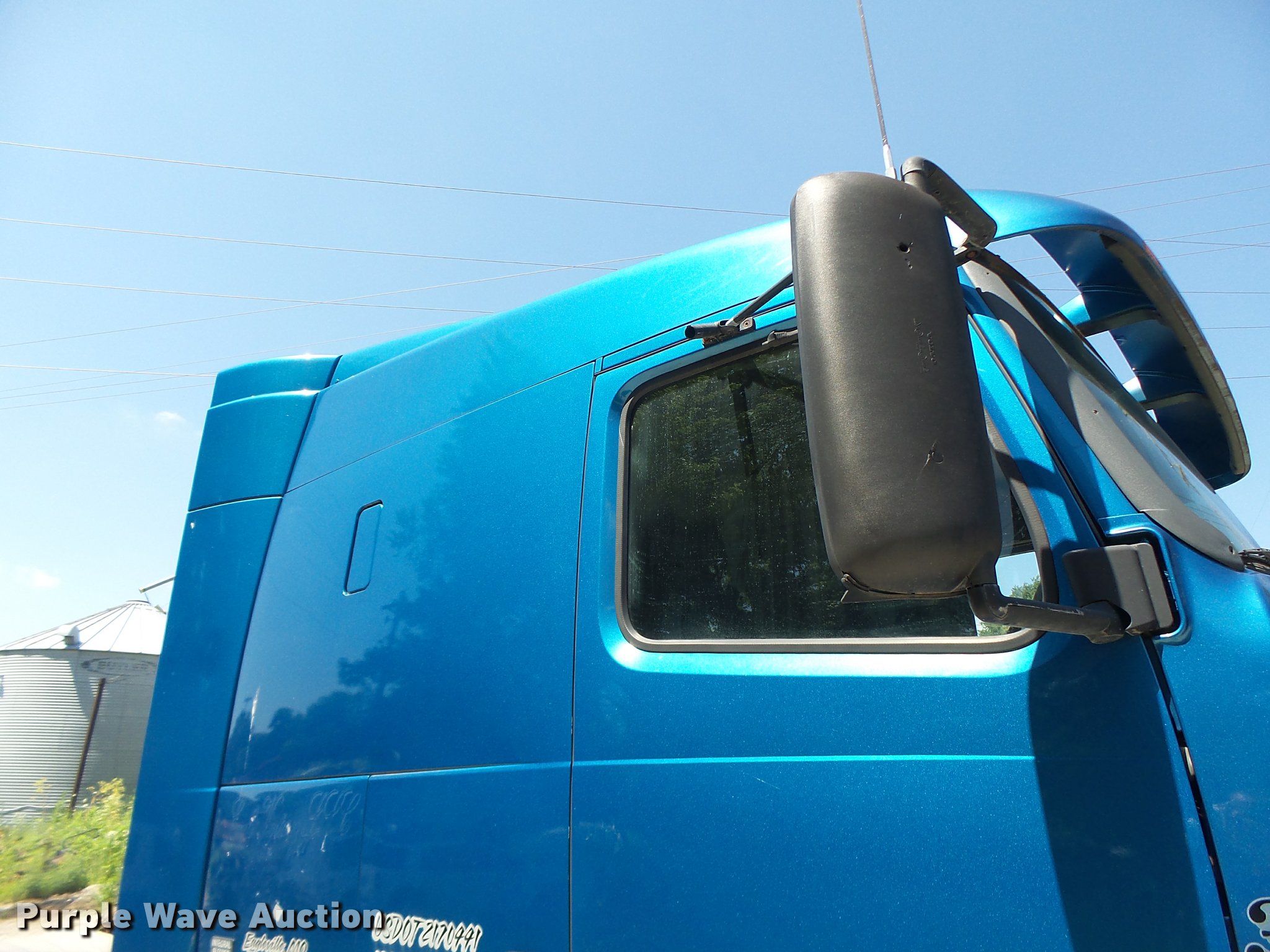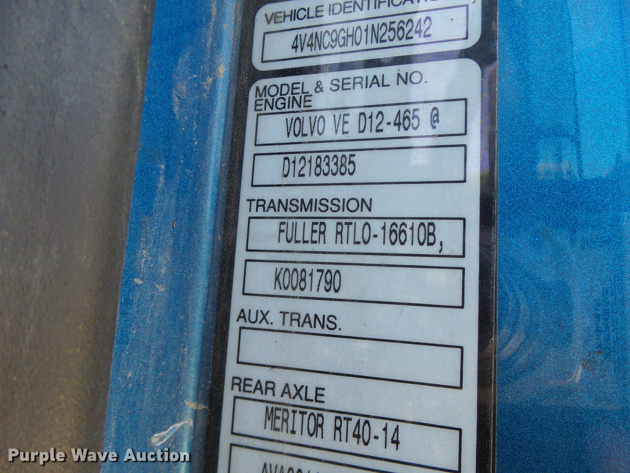 Purple Wave is selling a used Truck Tractor in Missouri. This item is a 2001 Volvo VNL semi truck with the following: 139,535 miles on odometer, Volvo VE D12 12.1L L6 turbo diesel engine, Serial D12128603, Eaton Fuller RTL0-16610B ten speed manual transmission, Tandem axle, Inter-axle differential lock, AC and heat, Cruise, AM/FM/cassette, Power windows, Heated mirrors, Air suspension seat, Sleeper, Single bed, Rear climate control, Hanging closet, Exterior visor, Dual exhaust stack, Aluminum deck plate, Sliding fifth wheel plate, Dual fuel tanks, Quarter fenders, Air suspension, Air brakes, 295/75R22.5 front tires, 295/75R22.5 rear tires, 275/80R22.5 rear tires, GVWR 50,350 lbs