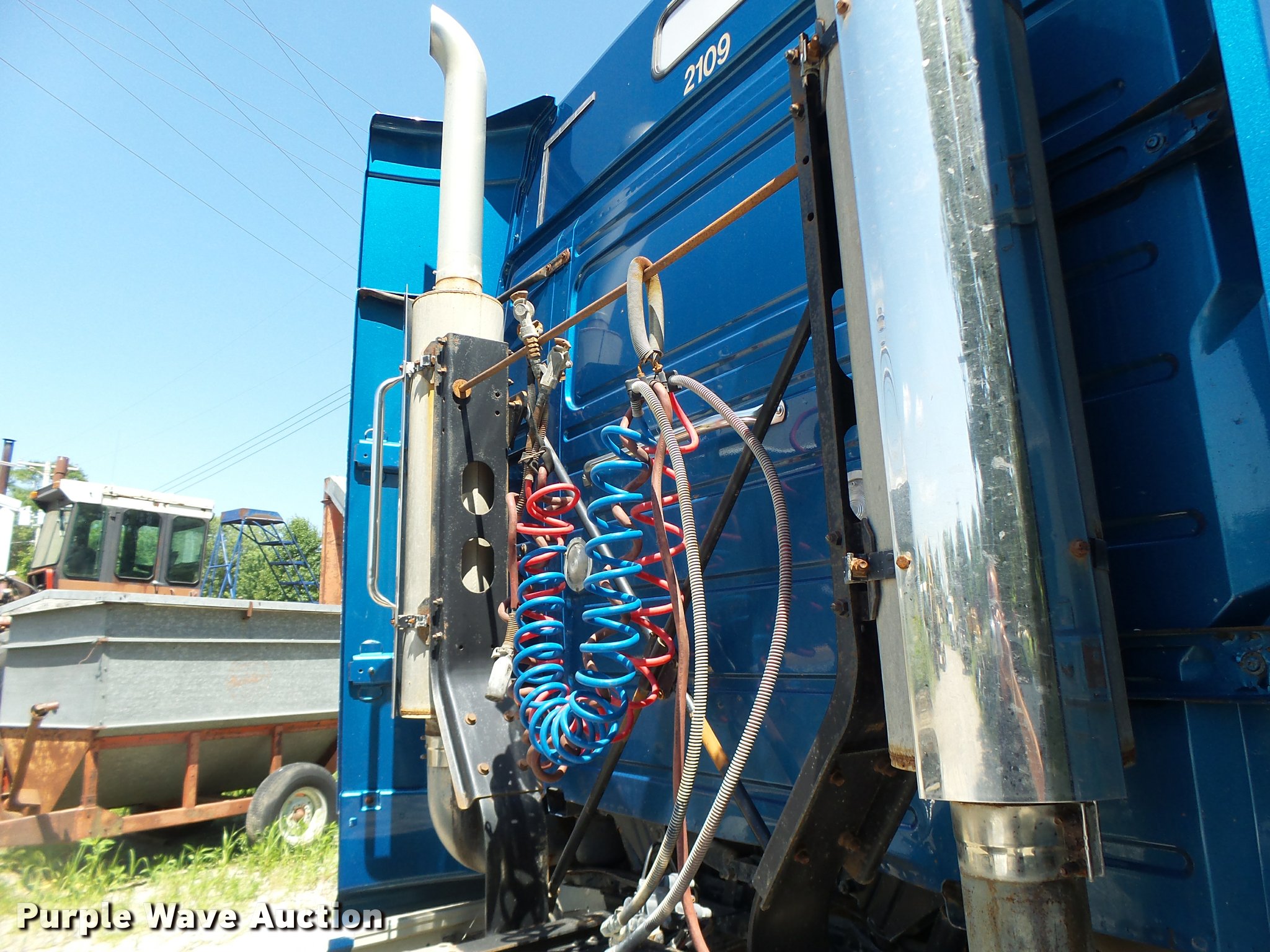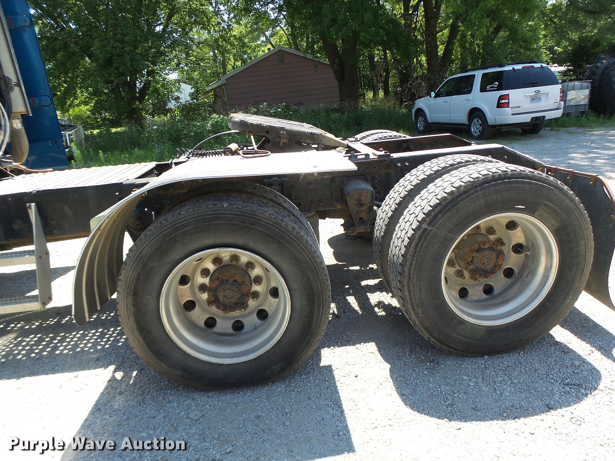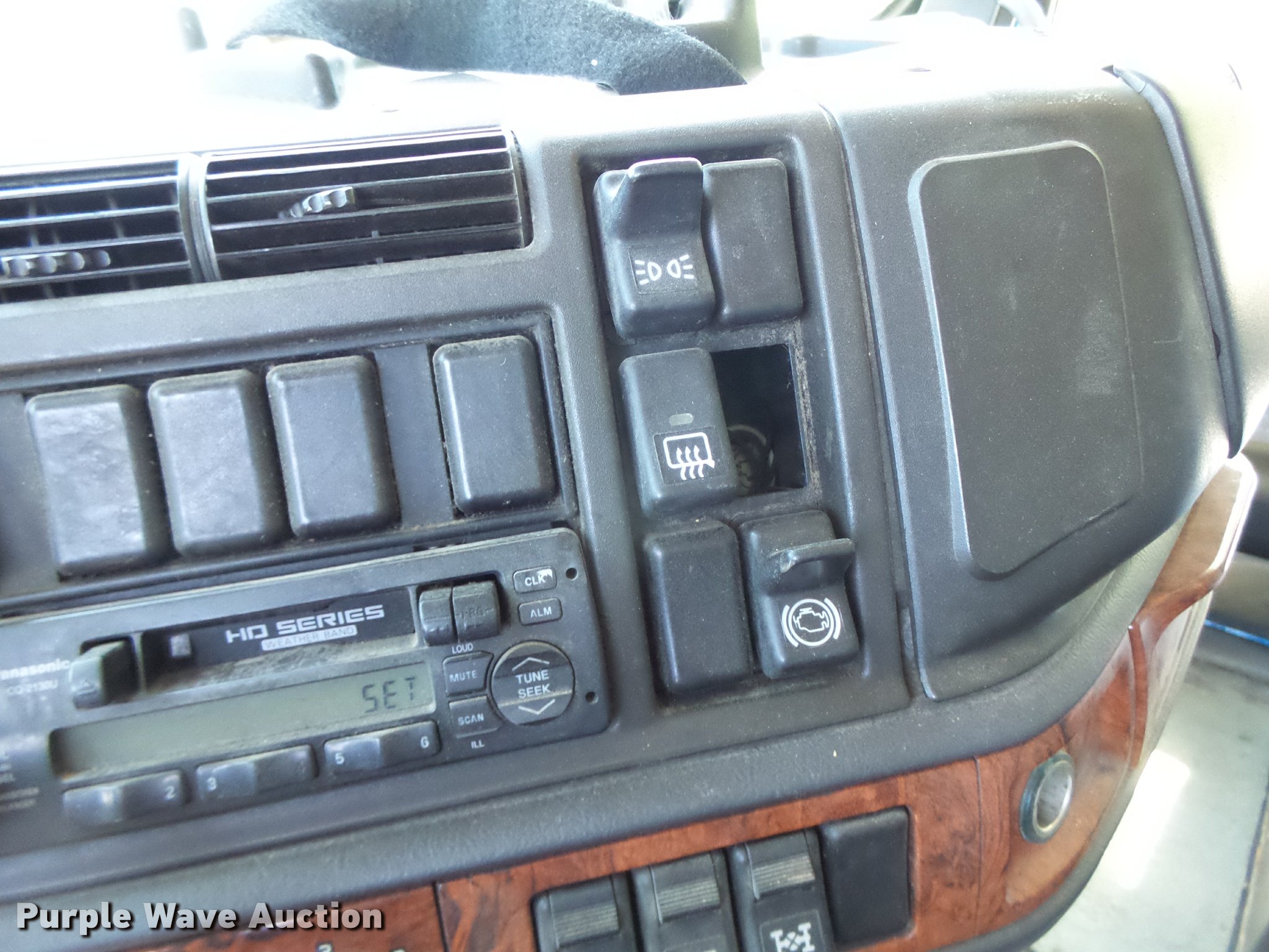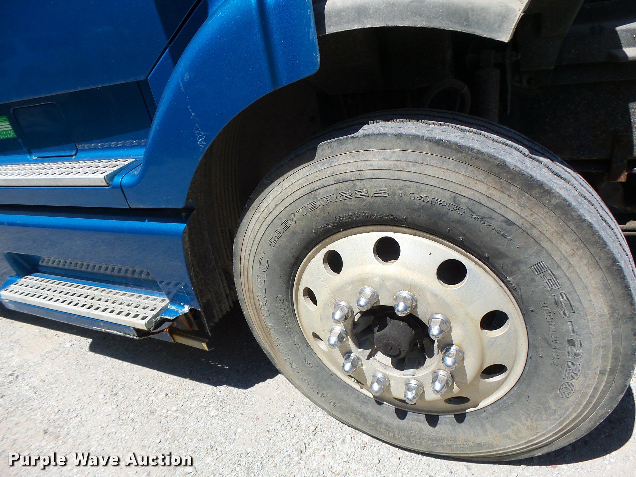 Purple Wave is selling a used Truck Tractor in Missouri. This item is a 2001 Volvo VNL semi truck with the following: 139,535 miles on odometer, Volvo VE D12 12.1L L6 turbo diesel engine, Serial D12128603, Eaton Fuller RTL0-16610B ten speed manual transmission, Tandem axle, Inter-axle differential lock, AC and heat, Cruise, AM/FM/cassette, Power windows, Heated mirrors, Air suspension seat, Sleeper, Single bed, Rear climate control, Hanging closet, Exterior visor, Dual exhaust stack, Aluminum deck plate, Sliding fifth wheel plate, Dual fuel tanks, Quarter fenders, Air suspension, Air brakes, 295/75R22.5 front tires, 295/75R22.5 rear tires, 275/80R22.5 rear tires, GVWR 50,350 lbs
