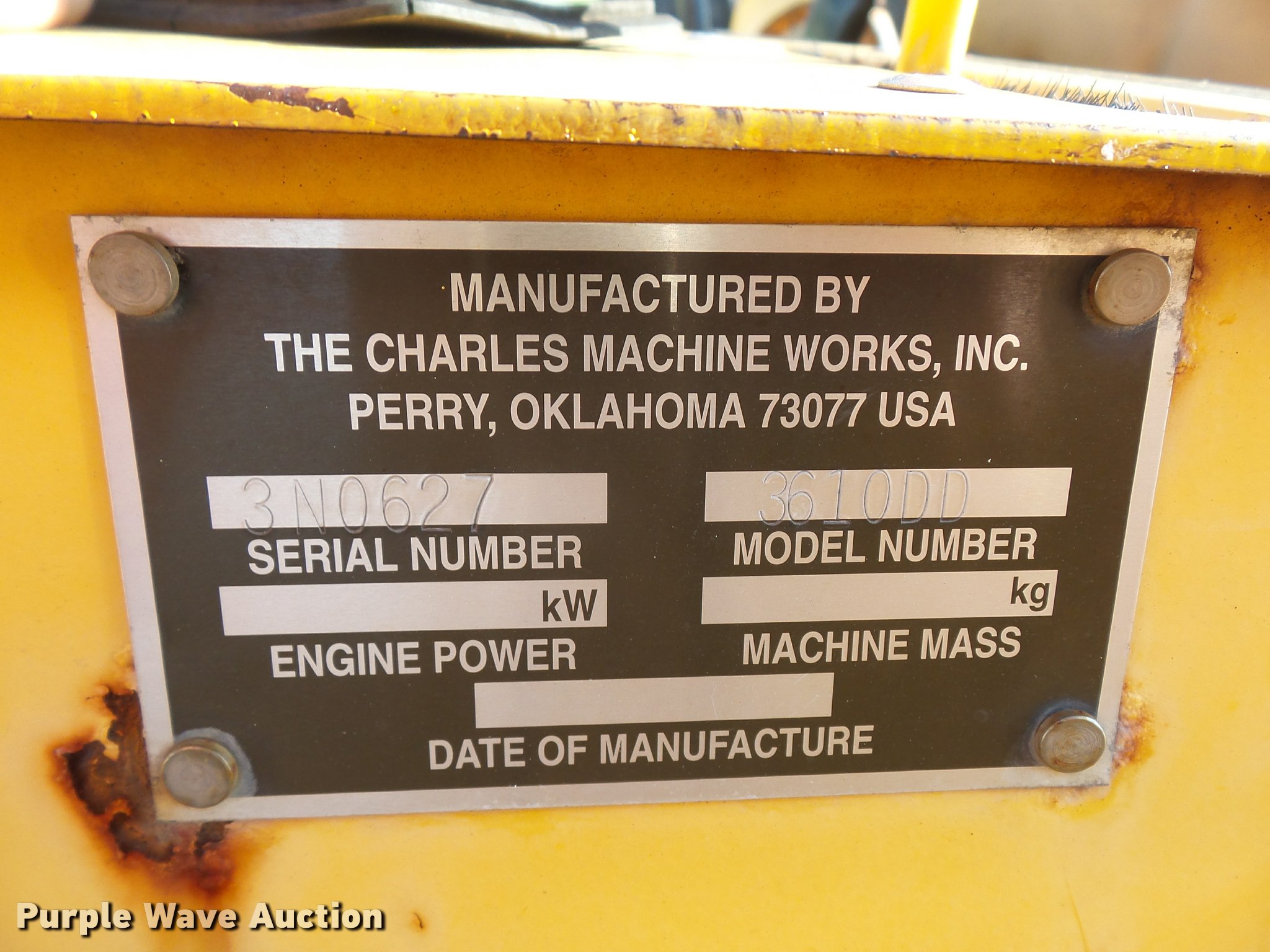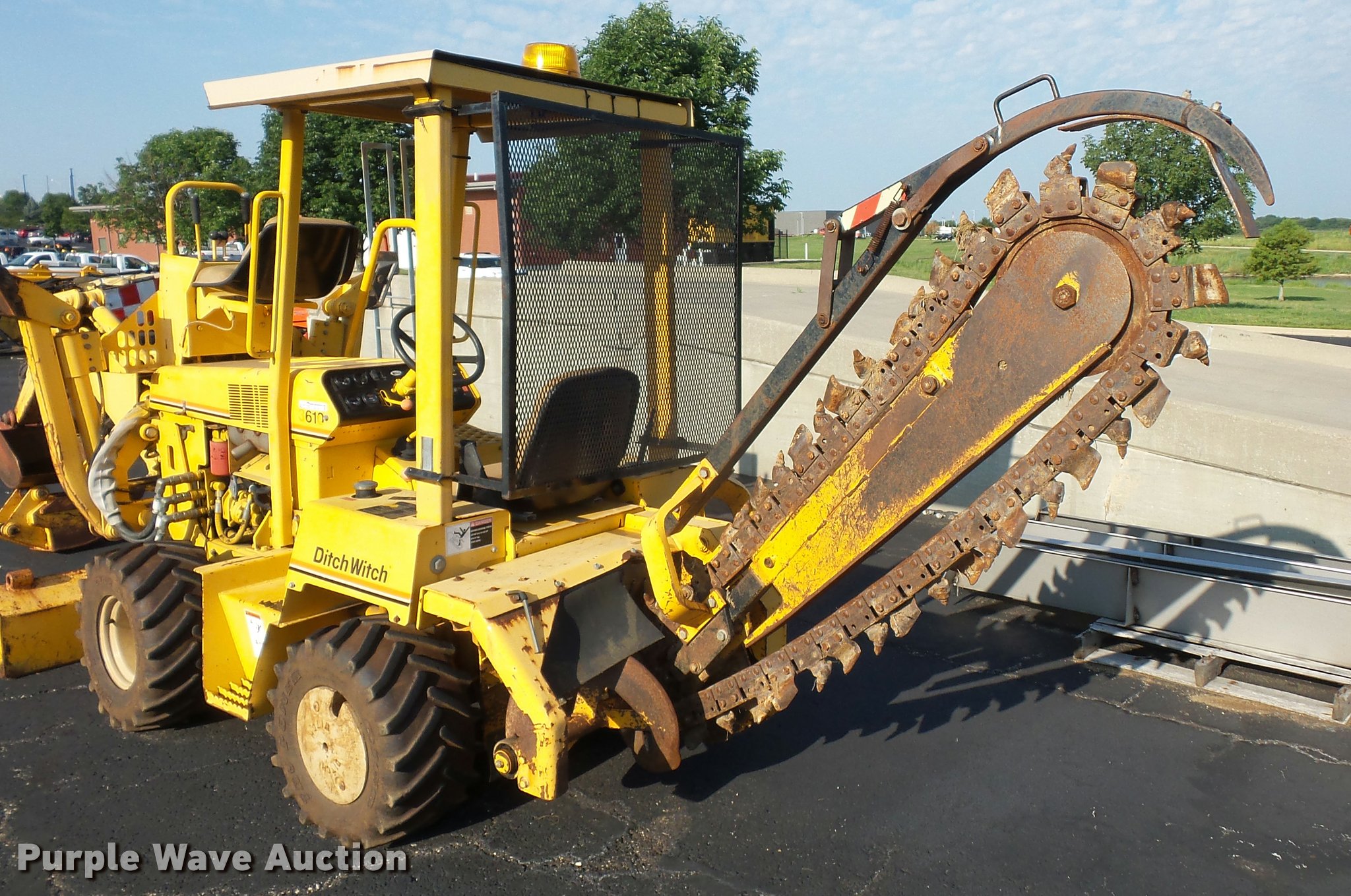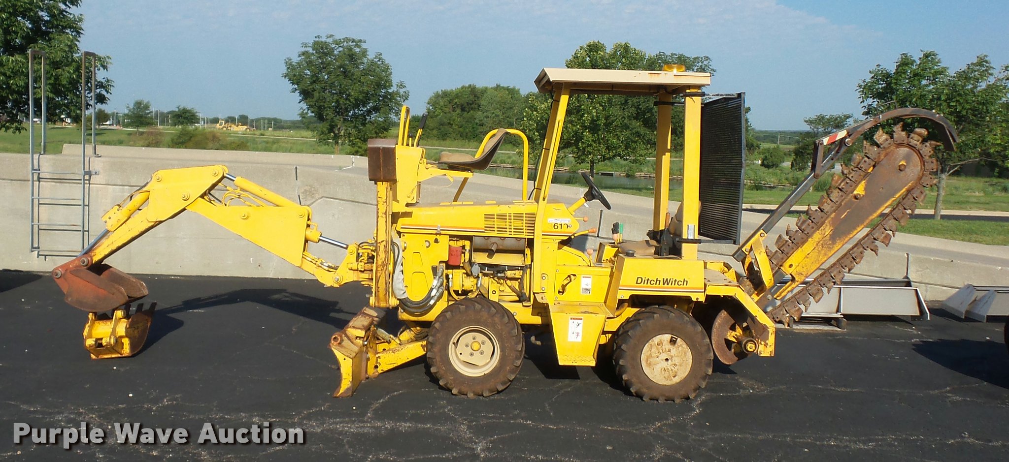 Purple Wave is selling a used Trencher or Rock Saw in Missouri. This item is a 1996 Ditch Witch 3610 trencher with the following: 850 hours on meter, Diesel engine, Manual transmission, 3F-1R gears, Trencher, 5'L bar, 6"W, Backhoe model ZCA222, (2) 12" buckets, Serial 1N2325, 26x12-12 tires, Rust in fuel tank, Unknown operating condition, Serial 3N0627