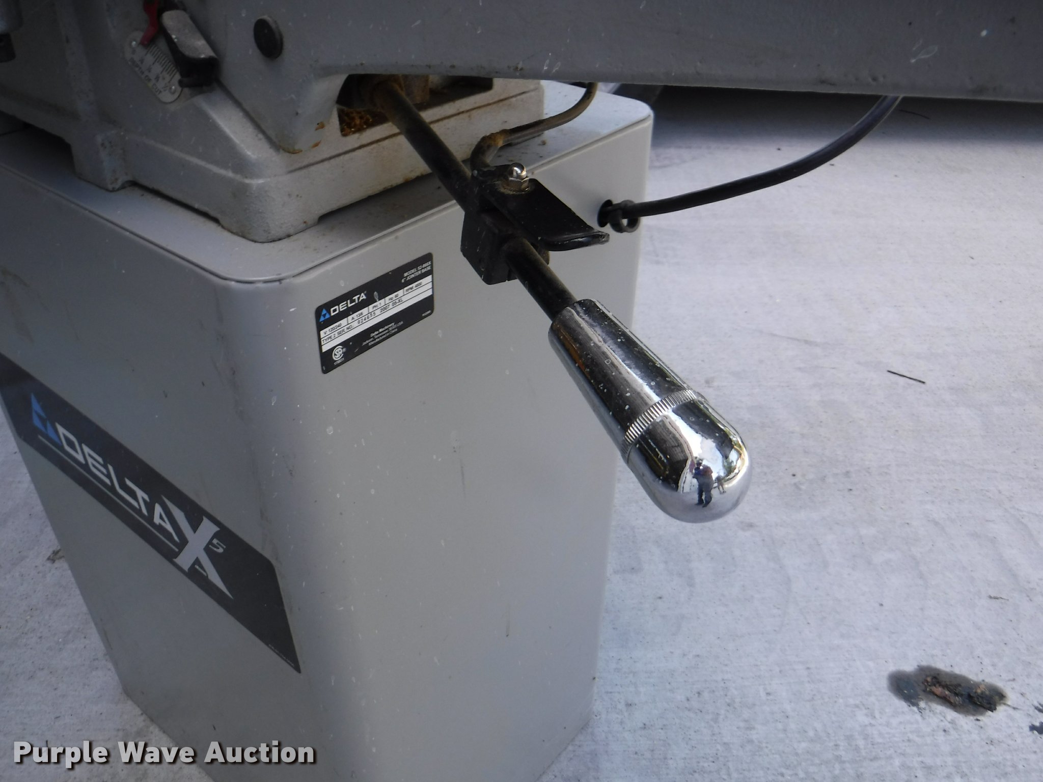 Purple Wave is selling a used Tools in Kansas. This item is a Delta X5 joiner with the following: Model 37-866X, 7" blade, 46"L work arm, Single phase, Adjustable guide, Serial 024110W6023