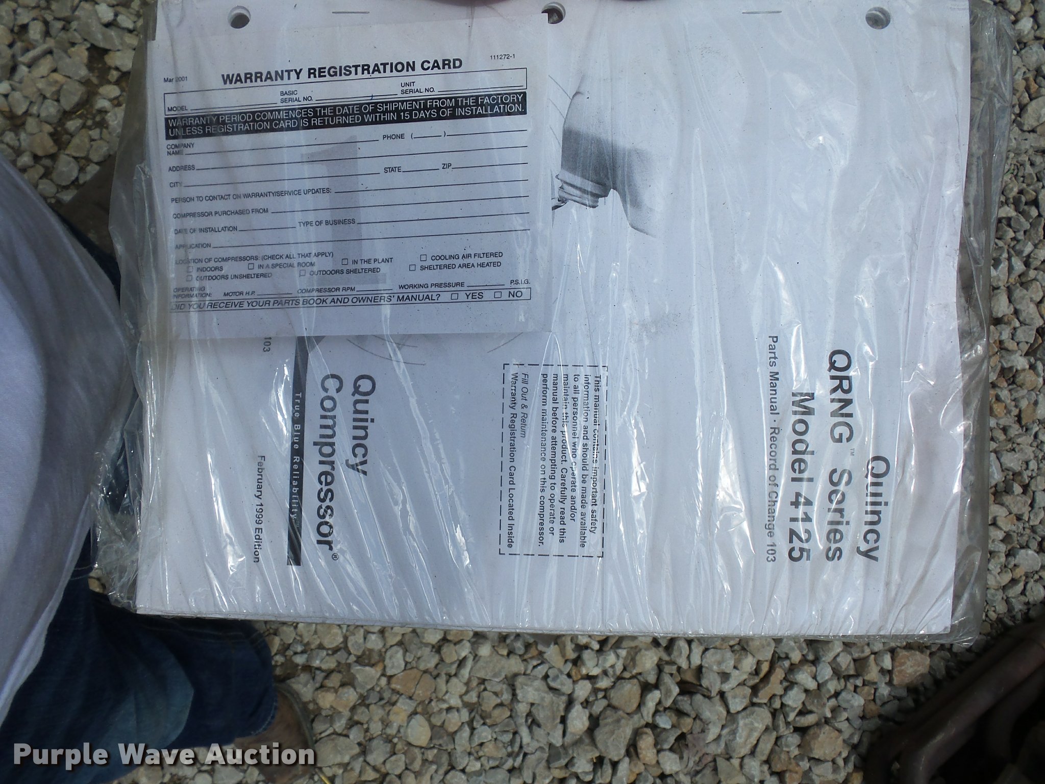 Quincy 4125 air compressor. 157 McKendree Rd. Odessa, MO 64076
