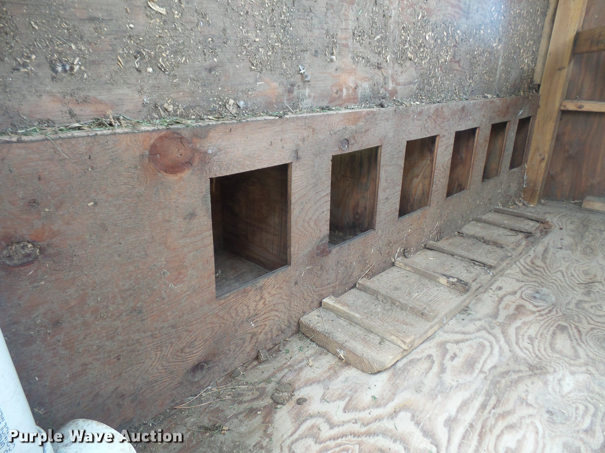 Purple Wave is selling a used Livestock Equip. in Kansas. This item is a Chicken coop with the following: 8'L x 4'W x 8'3"H, (7) nests