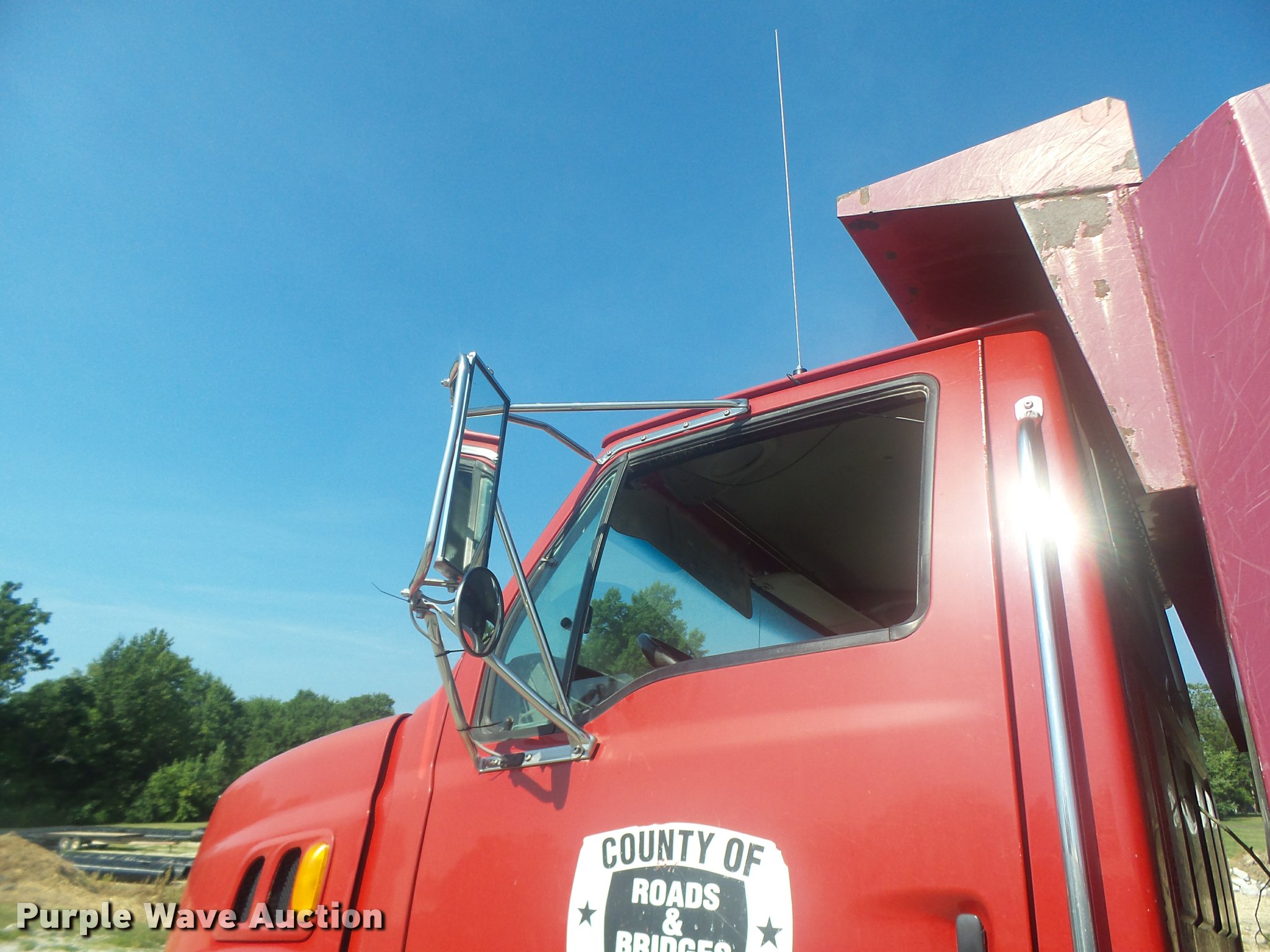 2003 Sterling L7500 dump truck. 359,838 miles on odometer, 17,226 hours on meter, Caterpillar 3126 7.2L L6 turbo diesel engine, Eaton Fuller Road Ranger RTO8LL 10 speed manual transmission, Tandem axle, Inter-axle differential lock, AC and heat, Cruise, AM/FM/CD, Heated mirrors, Air suspension seat, PTO, Henderson XDX15X44 steel dump bed 15'L x 8'W, 44" side height, 12" side board height, Air operated end gate, Single ramp hoist, Single fuel tank, Pintle hitch, Trailer wiring, Spring suspension, Air brakes, 315/80R22.5 front tires, 11R22.5 rear tires, GVWR 56,000 lbs. View repairs. Missouri title. 2FZHATAK63AL66199. Montgomery County. 211 E 3rd St. Montgomery City, MO 63361