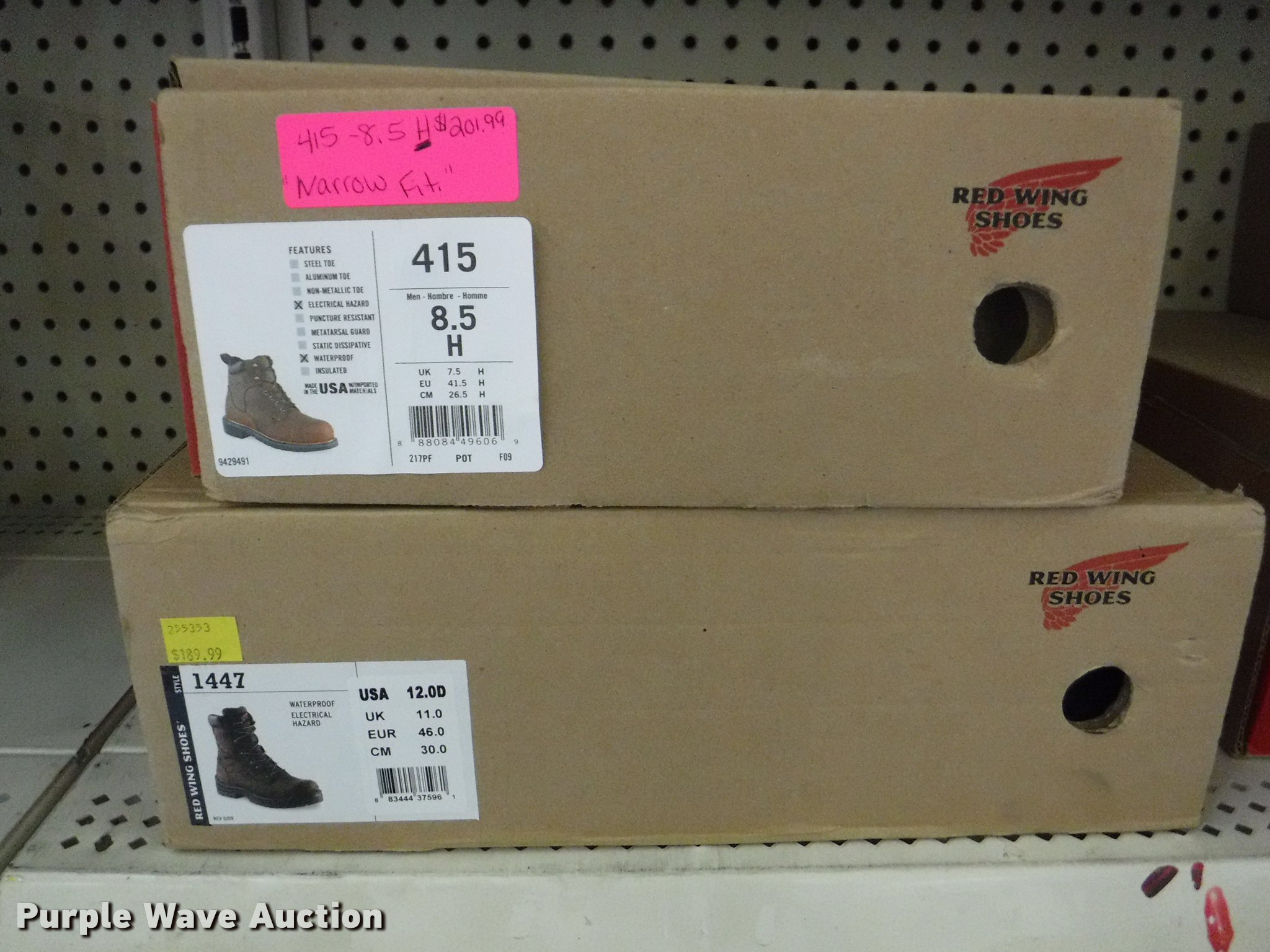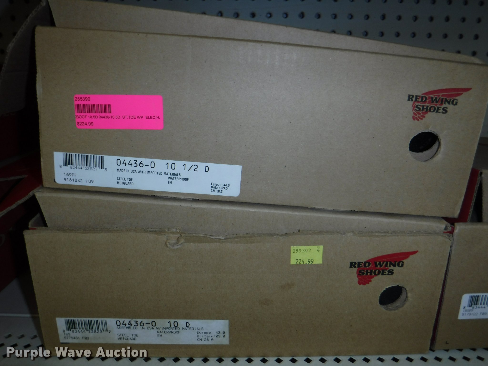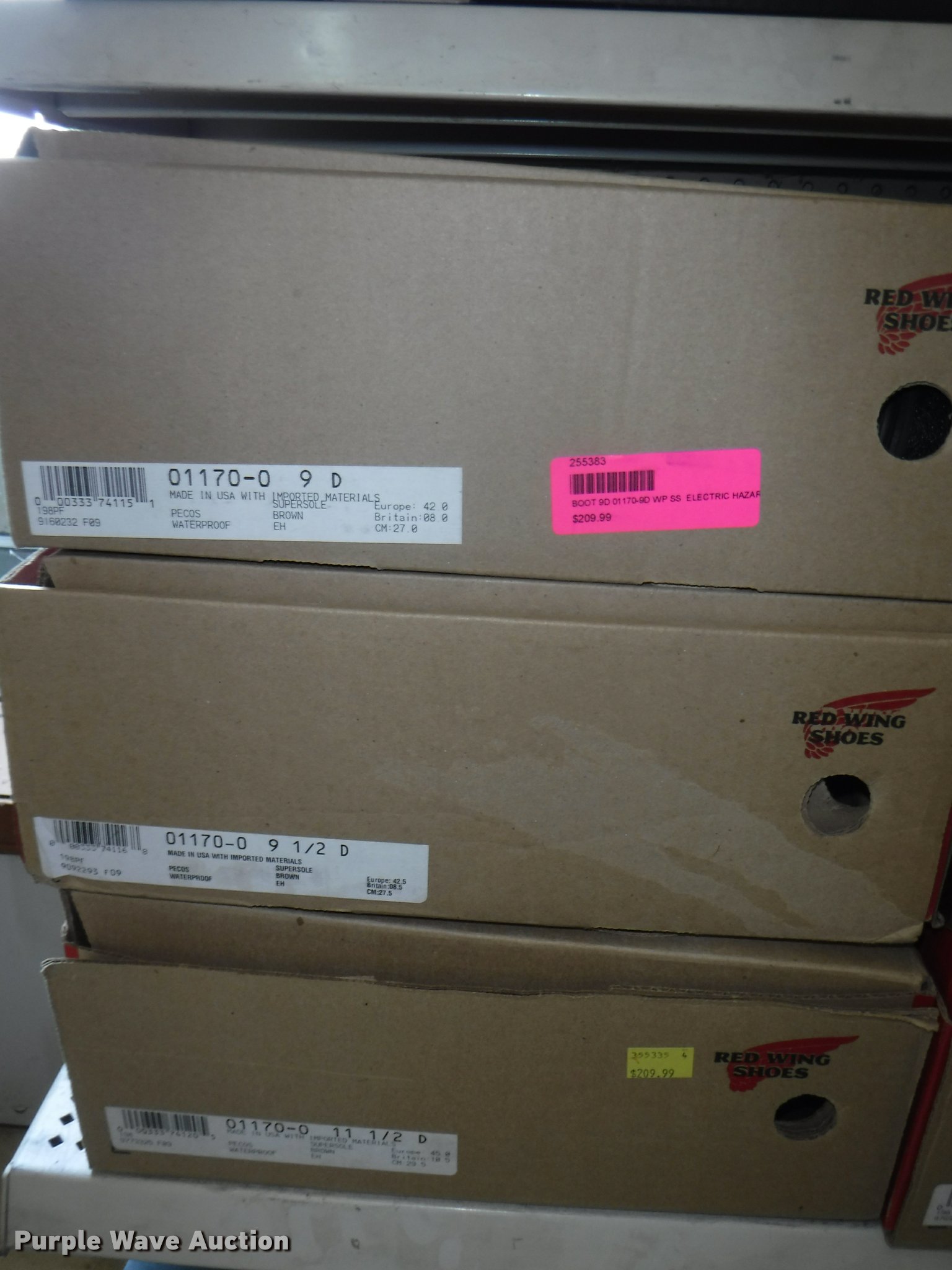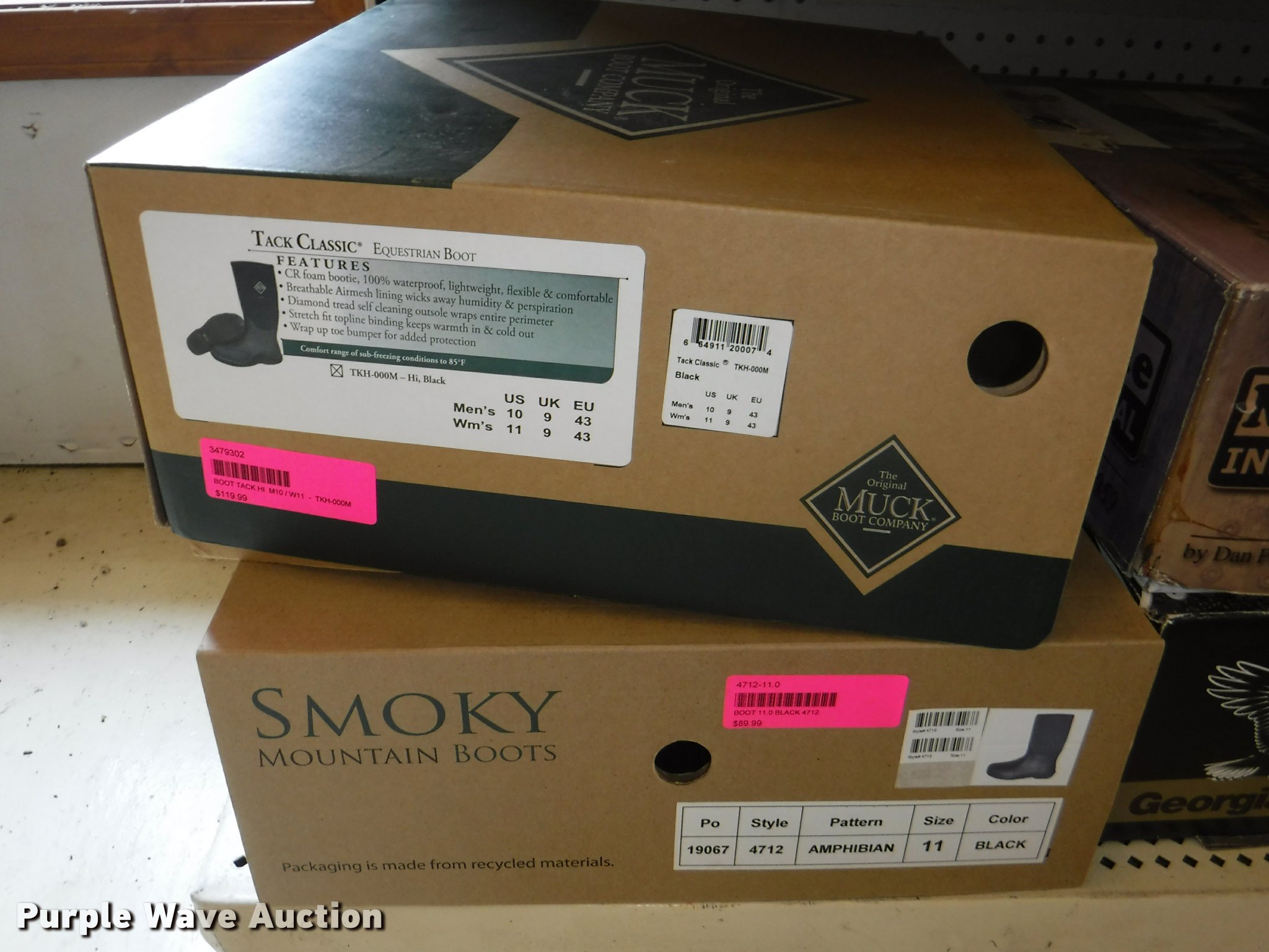 Purple Wave is selling a used All Other Household Items in Missouri. This item is a Work boots with the following: Red Wing Irish Setter Work, Pull on safety toe, Size 9, 10, 8.5, Soft toe, Size 10,, Irish Setter Hunt, Vaprtrek, (2) size 8, Size 10, 9.5, 8.5, 11, 10.5,, Super Sole, Size 10.5, 11.5, 9, Waterproof, Size 9, 11.5, 8.5, (4) size 9.5, (4) size 10, (4) size 12, Worx, Size 13, (2) size 12, (2) 9.5, Justin, Size 5, Diamond Back, Size 7.5, 13, Gear Box, Size 9, (2) size 11, (2) size 10.5, (6) Tack Classic, Size 10, 13 men, Size 11 women, Georgia, Size 12W, 8, McRae, Size 8, 7.5, 10.5, 13, Smoky Mountain rain boots, Size 10 women, All counts are approximate