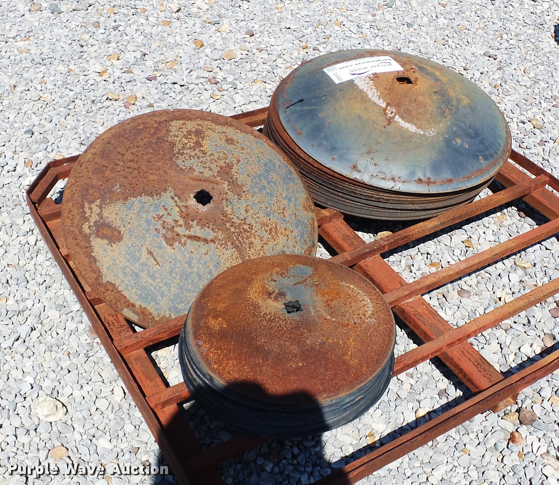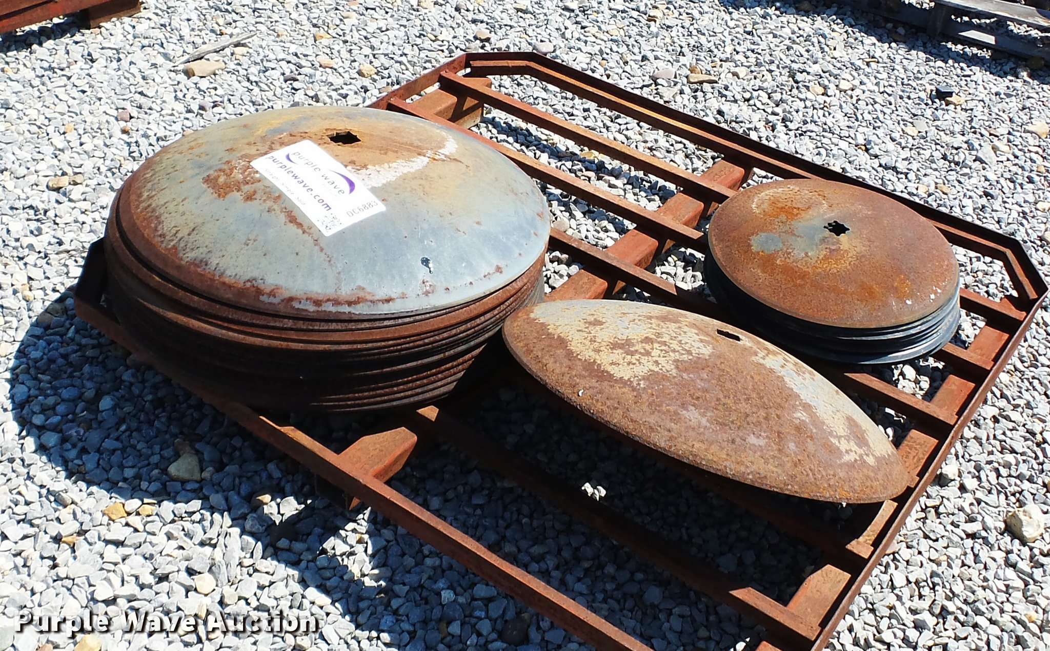 Purple Wave is selling a used Tillage Other in Missouri. This item is a Approximately 30 disk blades with the following: Approx. 16 24", 1.5" square center holes, Approx. 14 16", 1 1/4" square holes, Unused