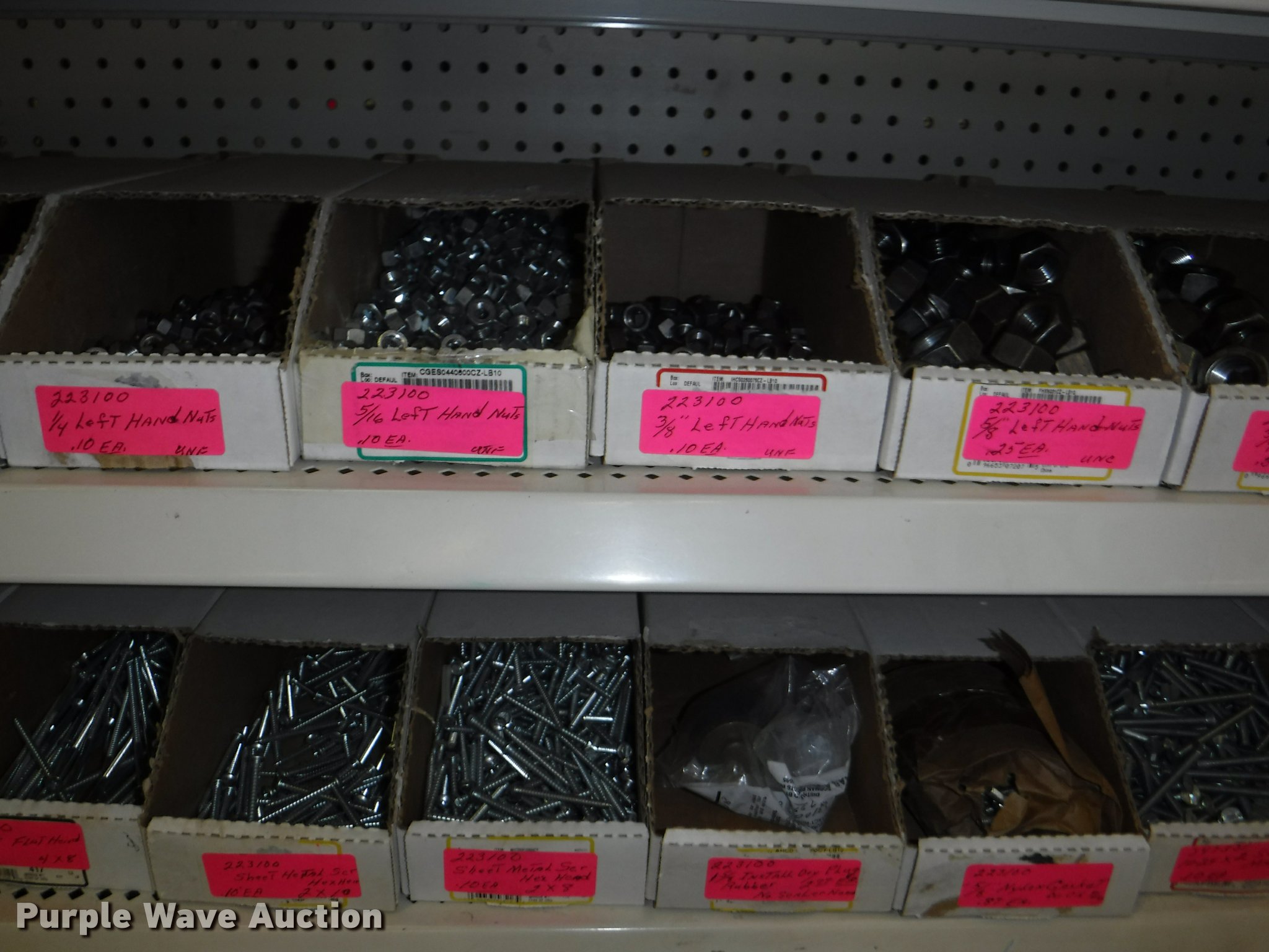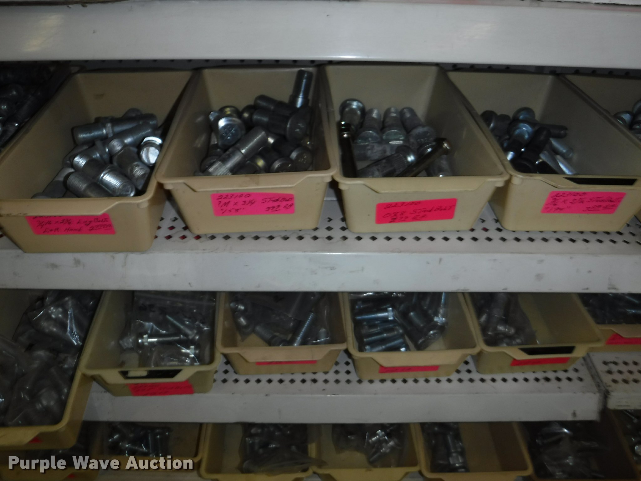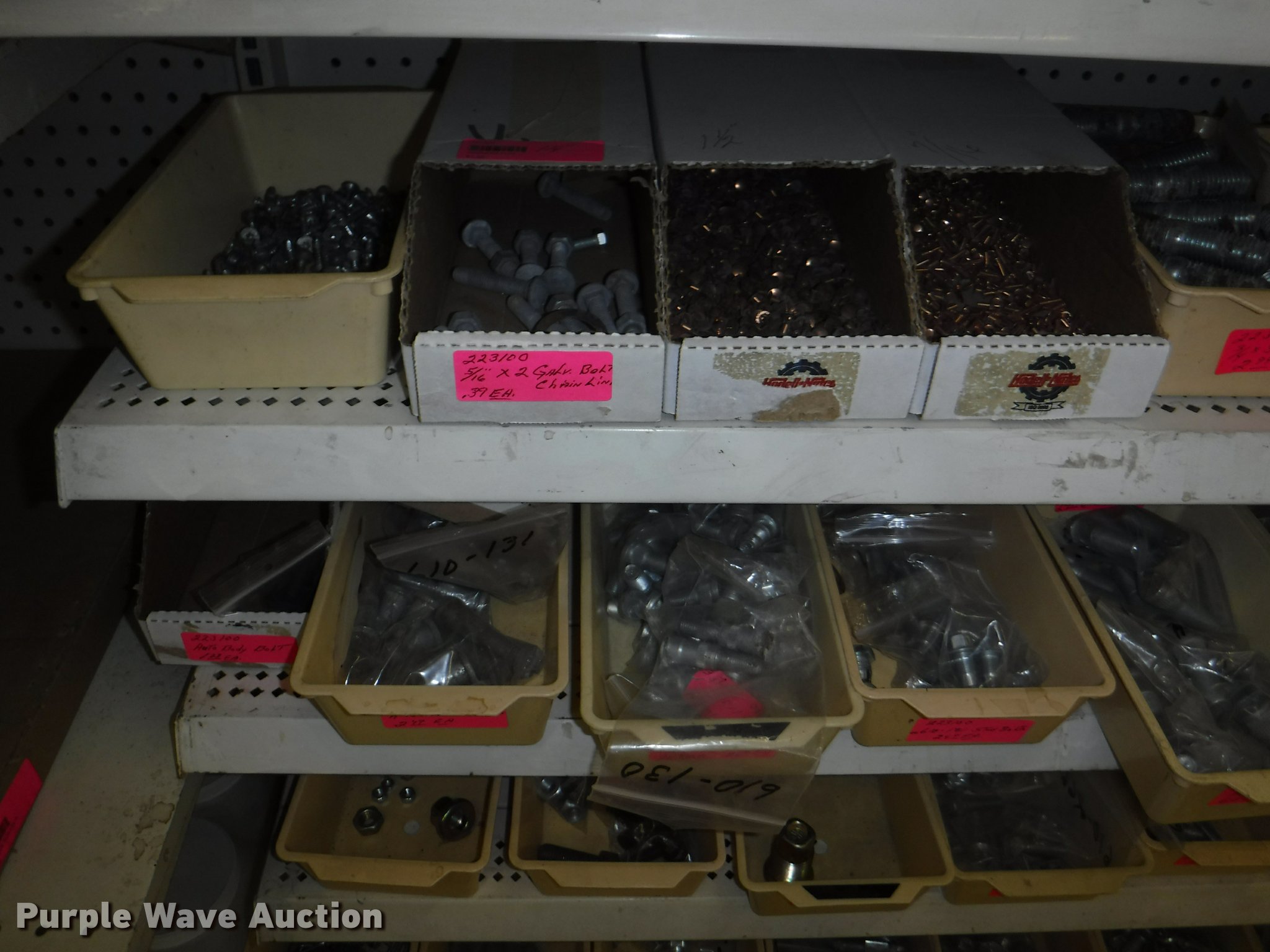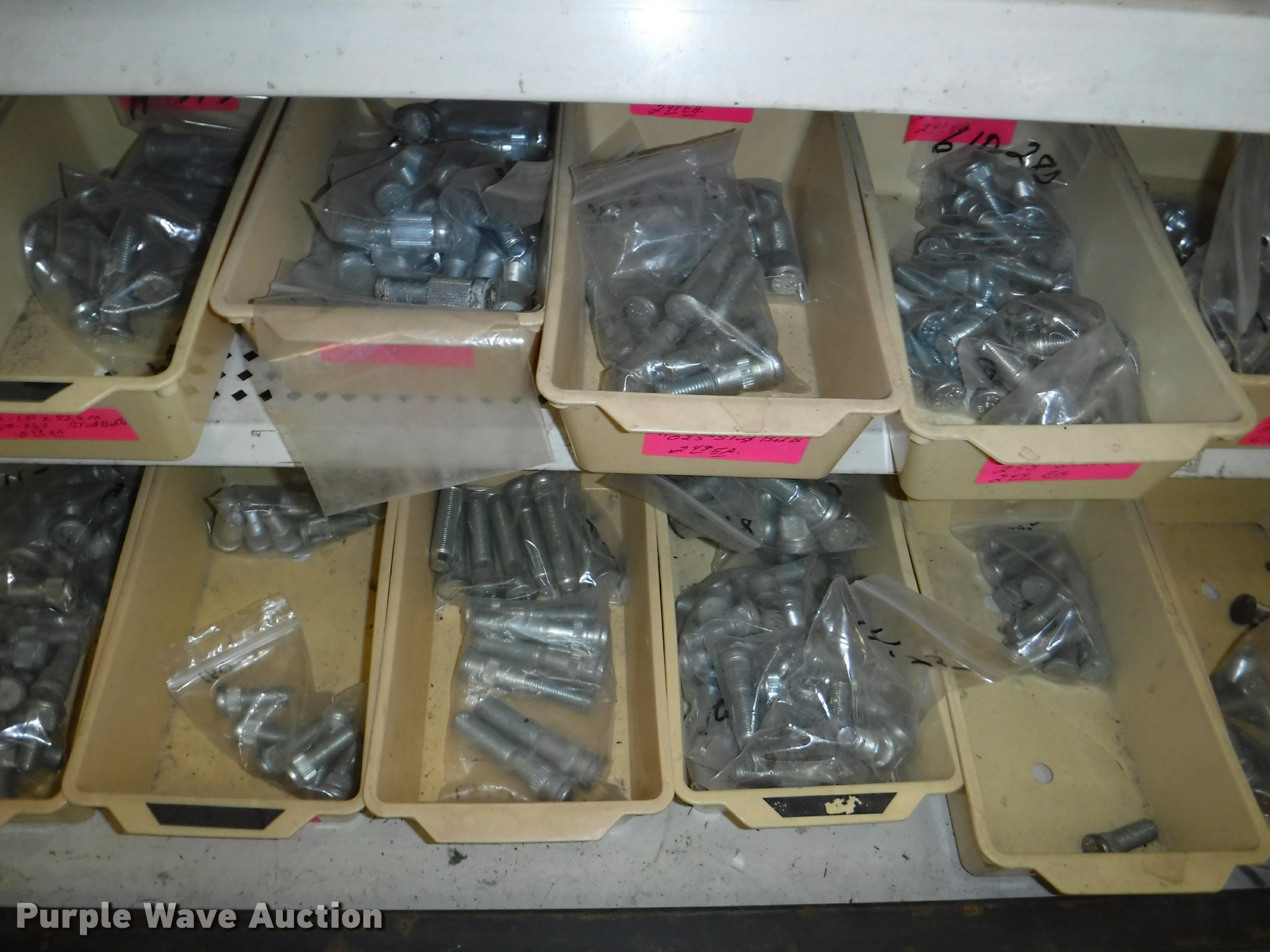 Purple Wave is selling a used Ag Equip. Other in Missouri. This item is a Ag equipment parts and hardware with the following: Nuts, Bolts, Screws, Planter talc, John Deere steering wheel, John Deere nose cone, John Deere grill plates, John Deere screen sides, Radiator, Massey grill screens, John Deere baler belts, (2) 525" x 7", (2) 531" x 7", Case baler belts, (3) 420.5" x 7", PTO covers, Gaskets, Manifolds, Fuel strainers, Cultivator shanks and shoes, Closing wheels, (7) boxes of Tuf-Cutter FS85-2 guards and more