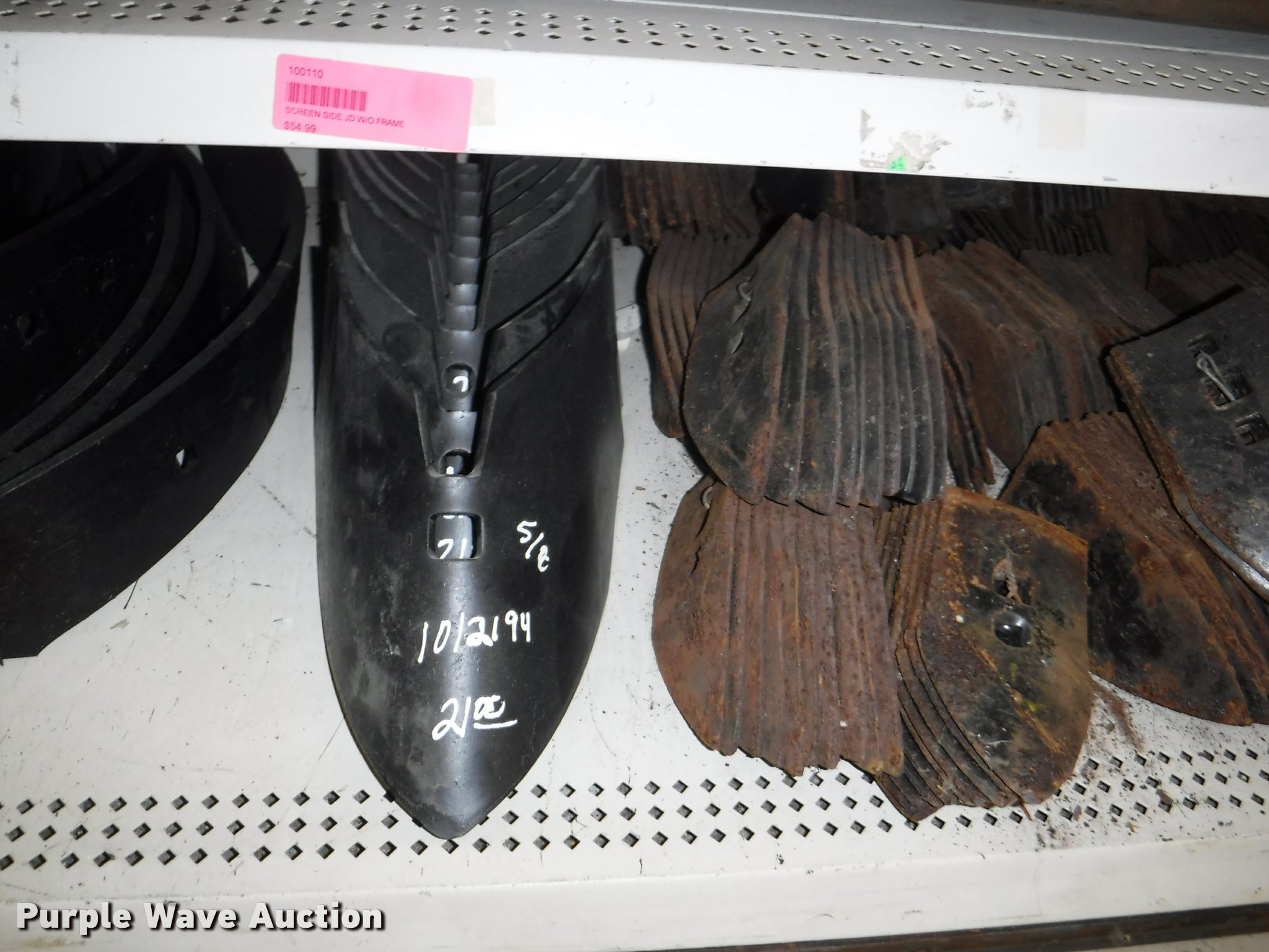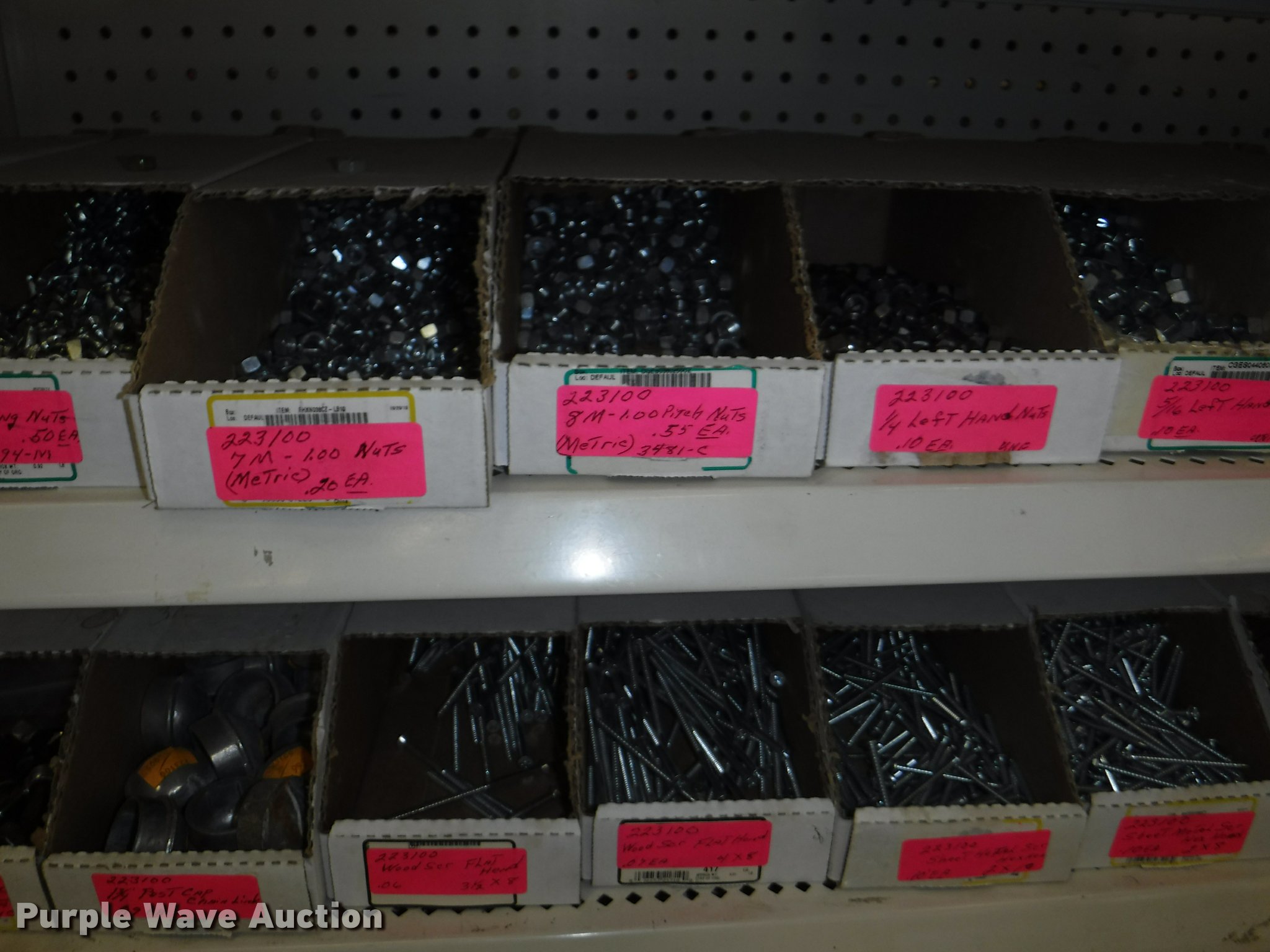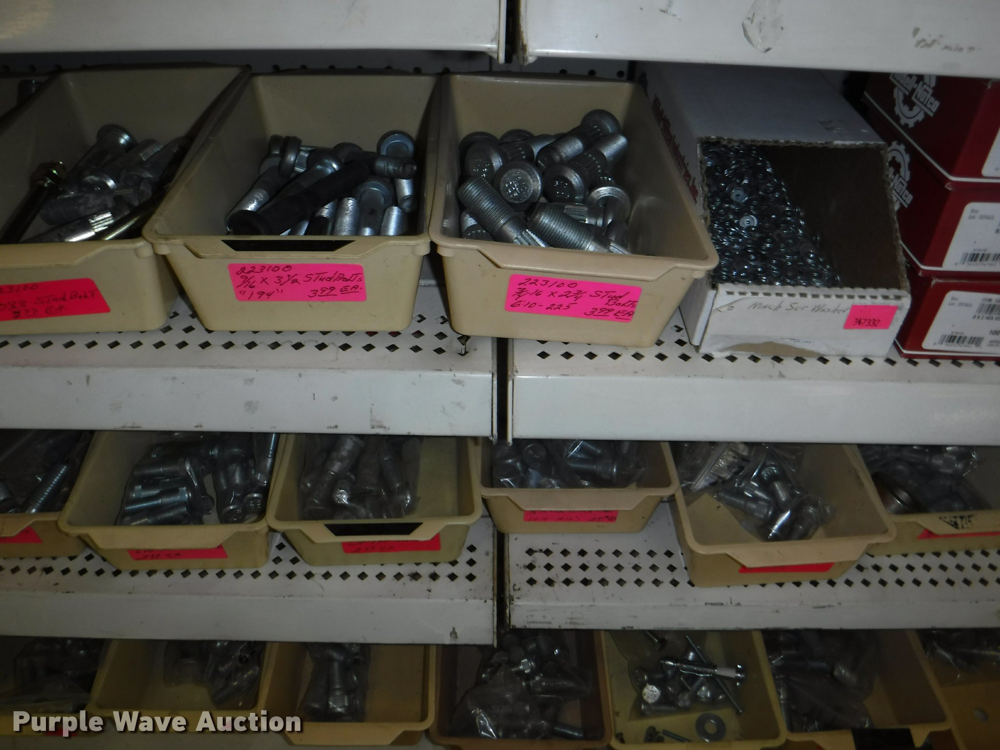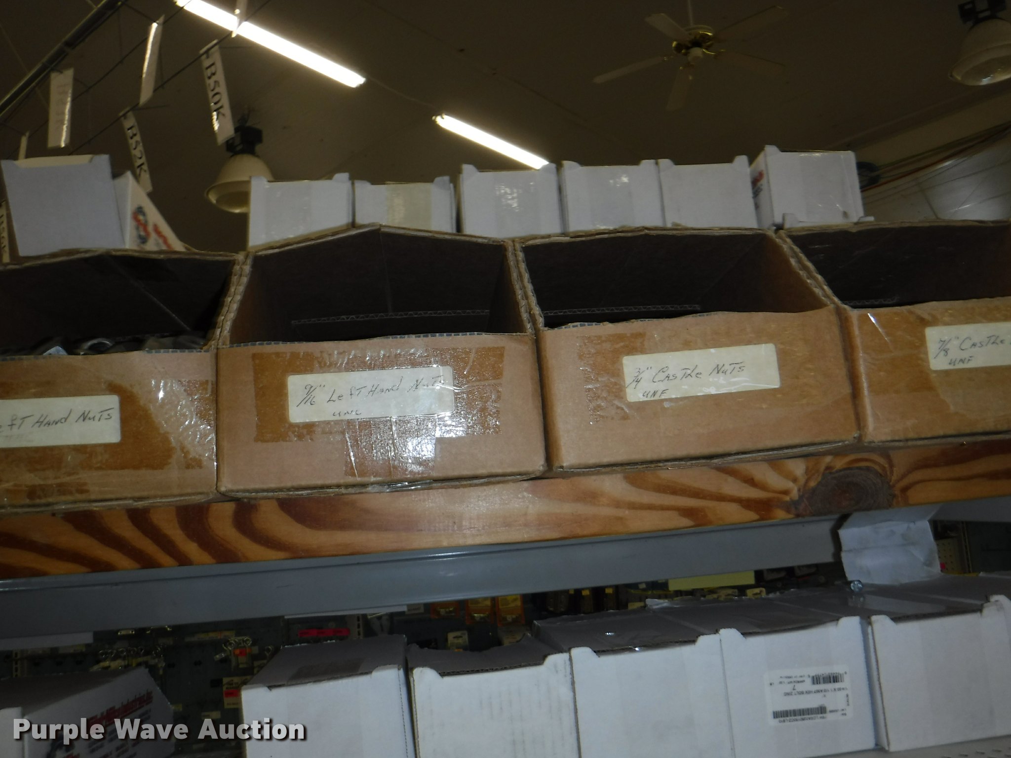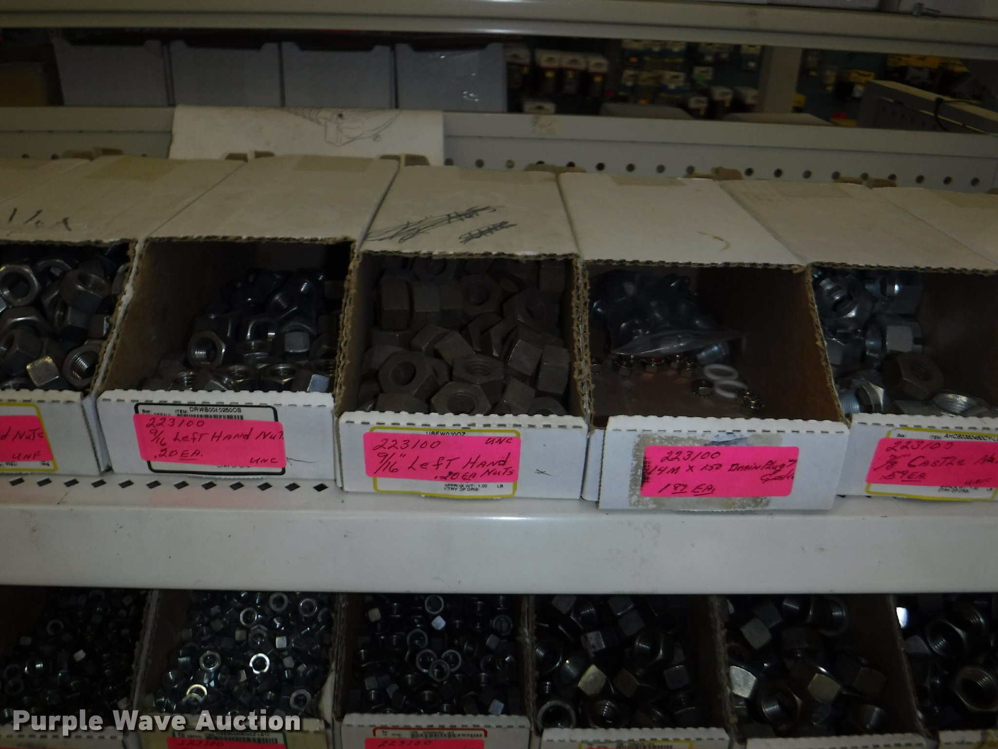 Purple Wave is selling a used Ag Equip. Other in Missouri. This item is a Ag equipment parts and hardware with the following: Nuts, Bolts, Screws, Planter talc, John Deere steering wheel, John Deere nose cone, John Deere grill plates, John Deere screen sides, Radiator, Massey grill screens, John Deere baler belts, (2) 525" x 7", (2) 531" x 7", Case baler belts, (3) 420.5" x 7", PTO covers, Gaskets, Manifolds, Fuel strainers, Cultivator shanks and shoes, Closing wheels, (7) boxes of Tuf-Cutter FS85-2 guards and more