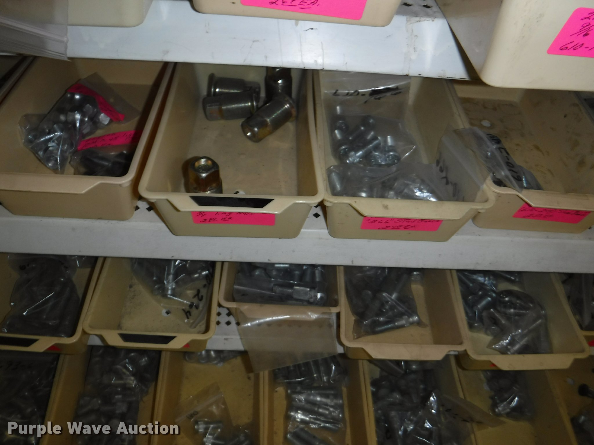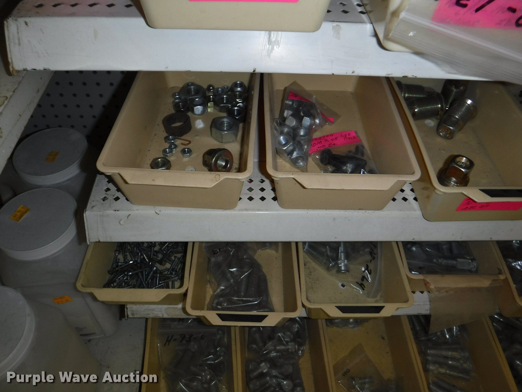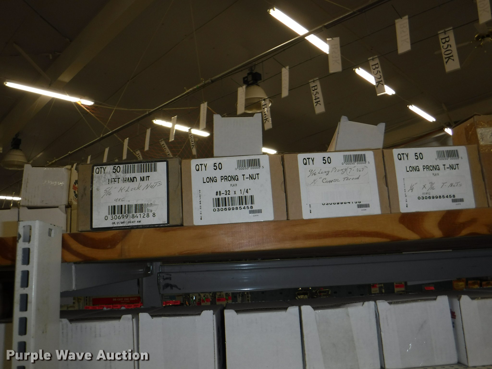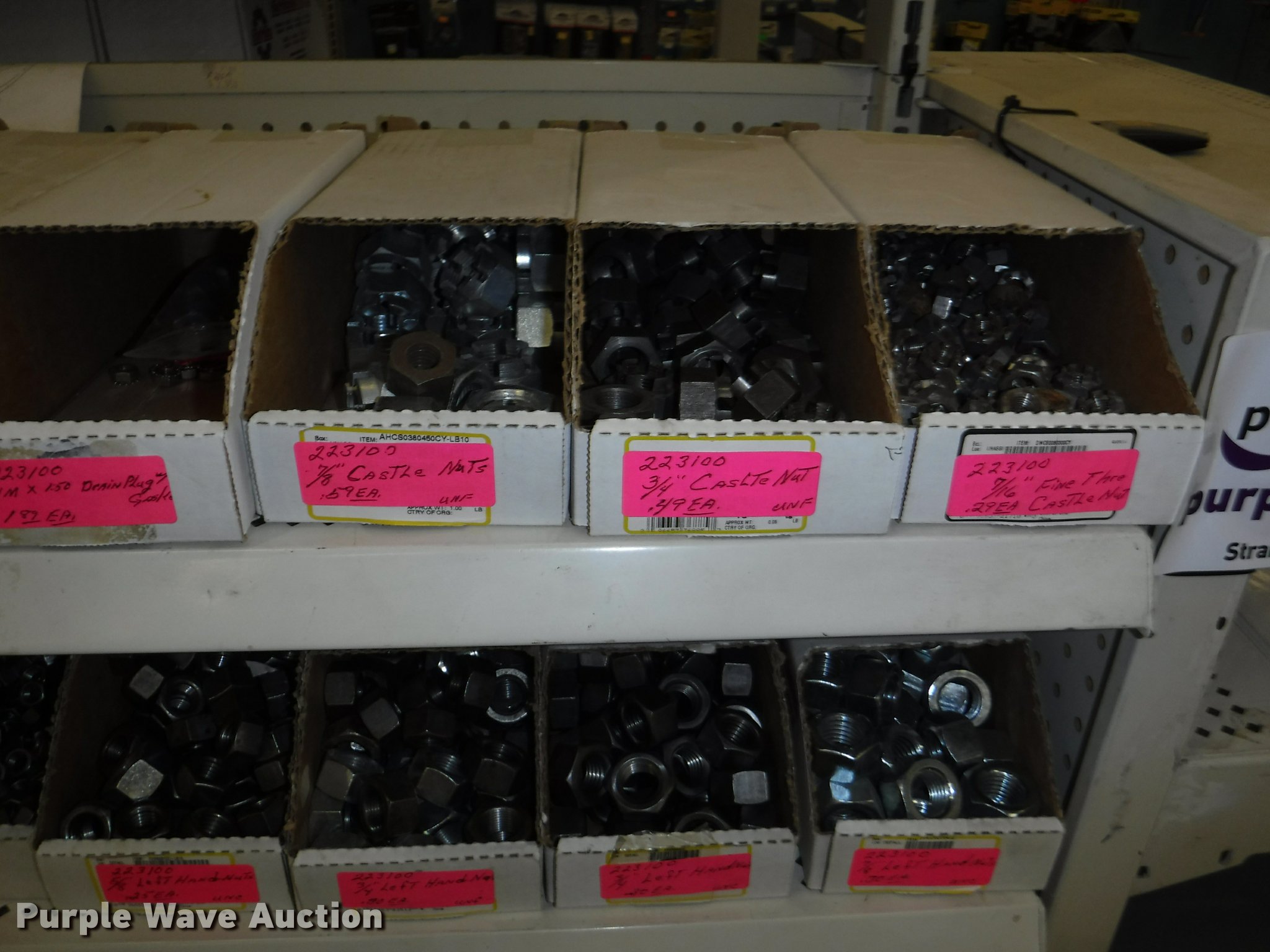 Purple Wave is selling a used Ag Equip. Other in Missouri. This item is a Ag equipment parts and hardware with the following: Nuts, Bolts, Screws, Planter talc, John Deere steering wheel, John Deere nose cone, John Deere grill plates, John Deere screen sides, Radiator, Massey grill screens, John Deere baler belts, (2) 525" x 7", (2) 531" x 7", Case baler belts, (3) 420.5" x 7", PTO covers, Gaskets, Manifolds, Fuel strainers, Cultivator shanks and shoes, Closing wheels, (7) boxes of Tuf-Cutter FS85-2 guards and more