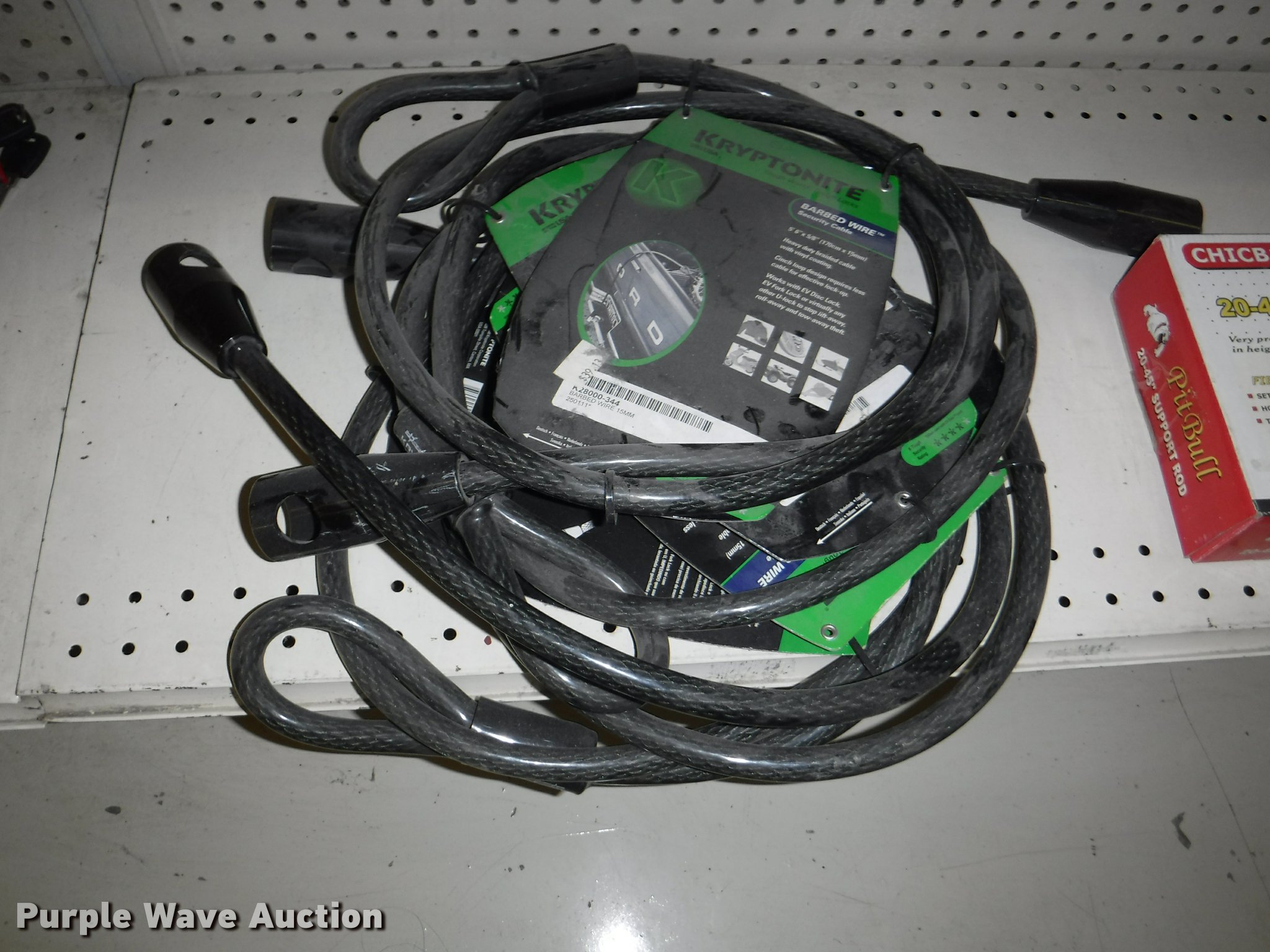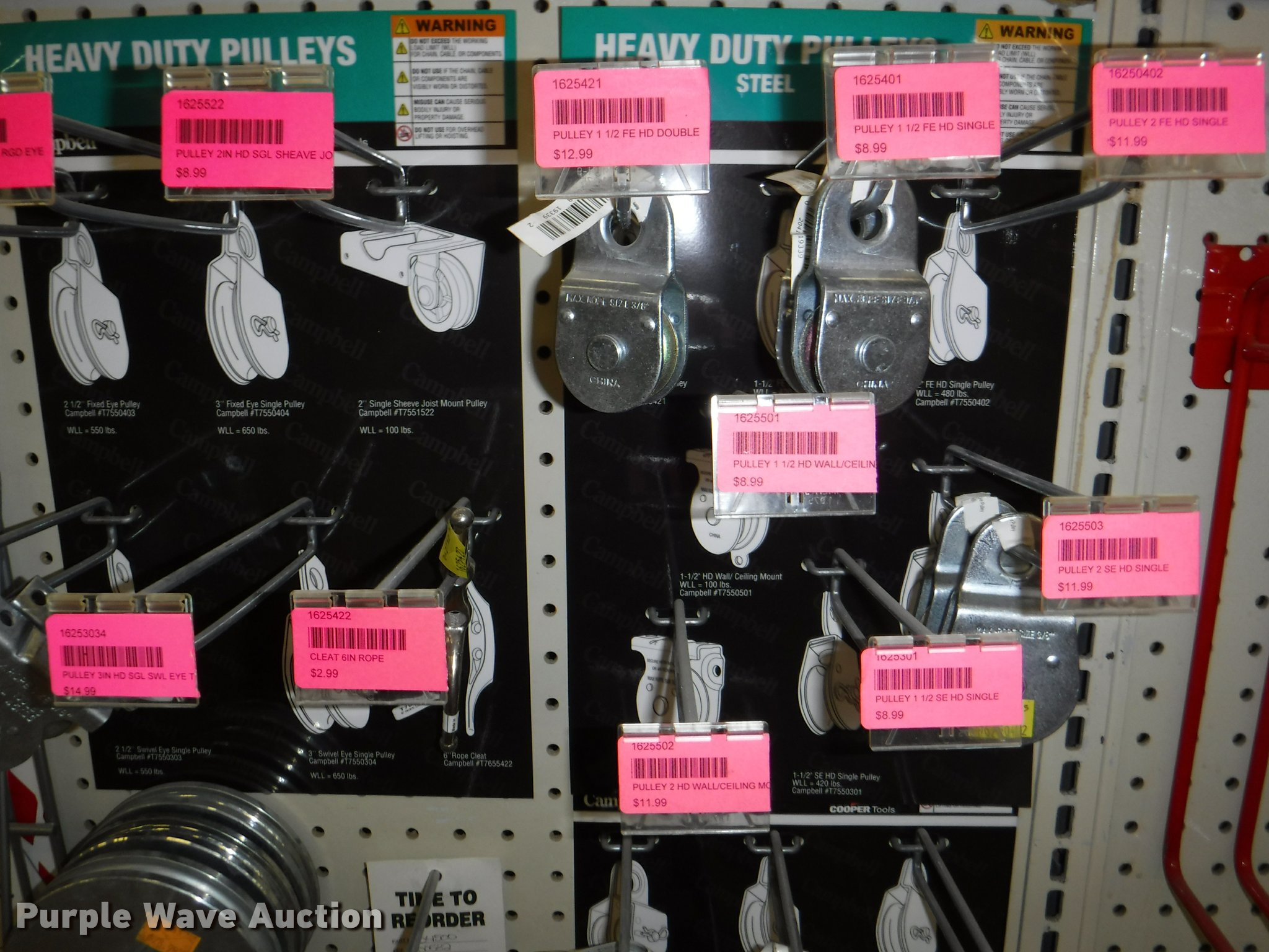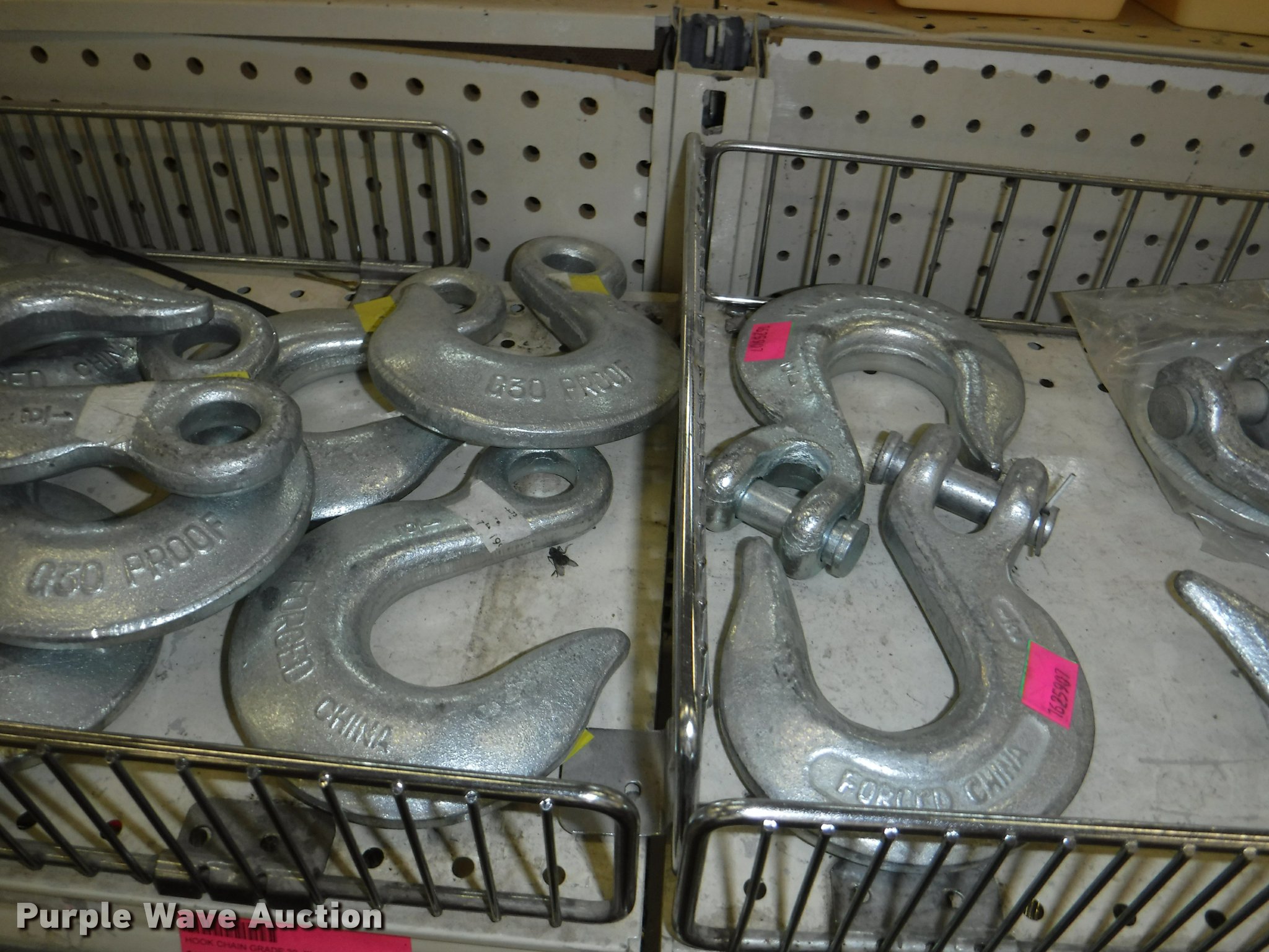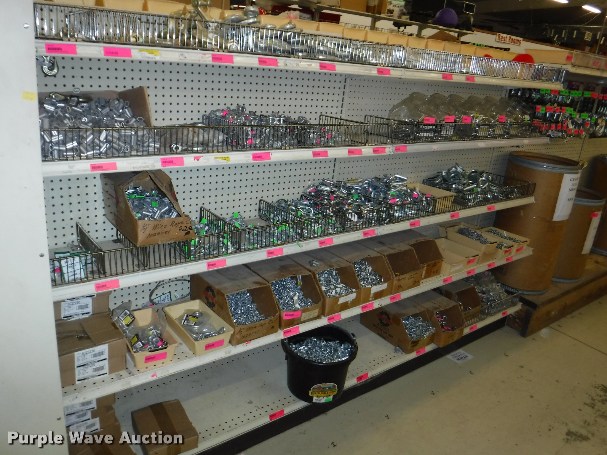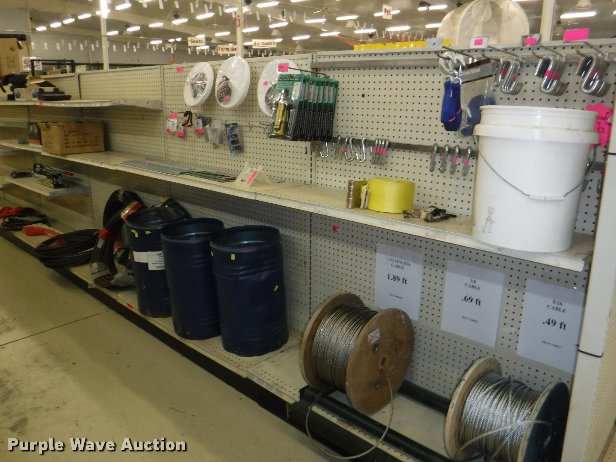 Purple Wave is selling a used Tools in Missouri. This item is a Hardware with the following: Safety chain, 1/4", 5'L, 4'L, 32"L, 12'L, 15'L, 3/16", 5'L, 3/8", 16'L, 5/16", 16'L,, Mini booms, S-hooks, Wire/rope thimbles and clips, Welded rings and swivels, Quick links, Slip hooks, Shackles, Eye hooks, Grab hooks, Cotter pins, Double clevis hooks, (3) 165' x 1" pp strapping, Tie down straps, Load strap, Pulleys, Cleats, Wood Power 2000 winch, Super Winch receiver hitches, Cable locks, Pit Bull 20 to 45" support rod, Grip two ton hand puller, Air suspension pod, 10 ton winch cylinder, 1/4" and 5/16" cable spools, (5) rolls of assorted cable, Decorative chain and cable with display and LaClede cutter and more