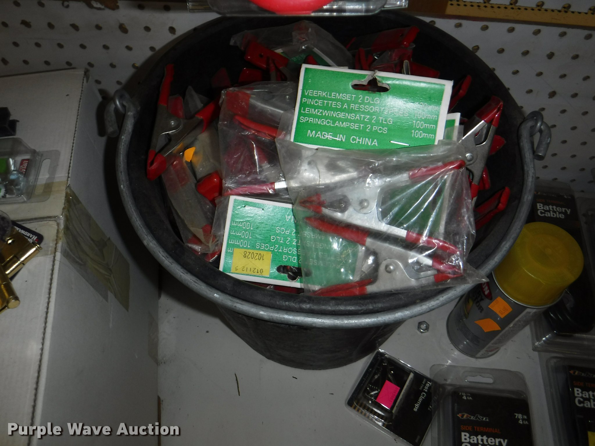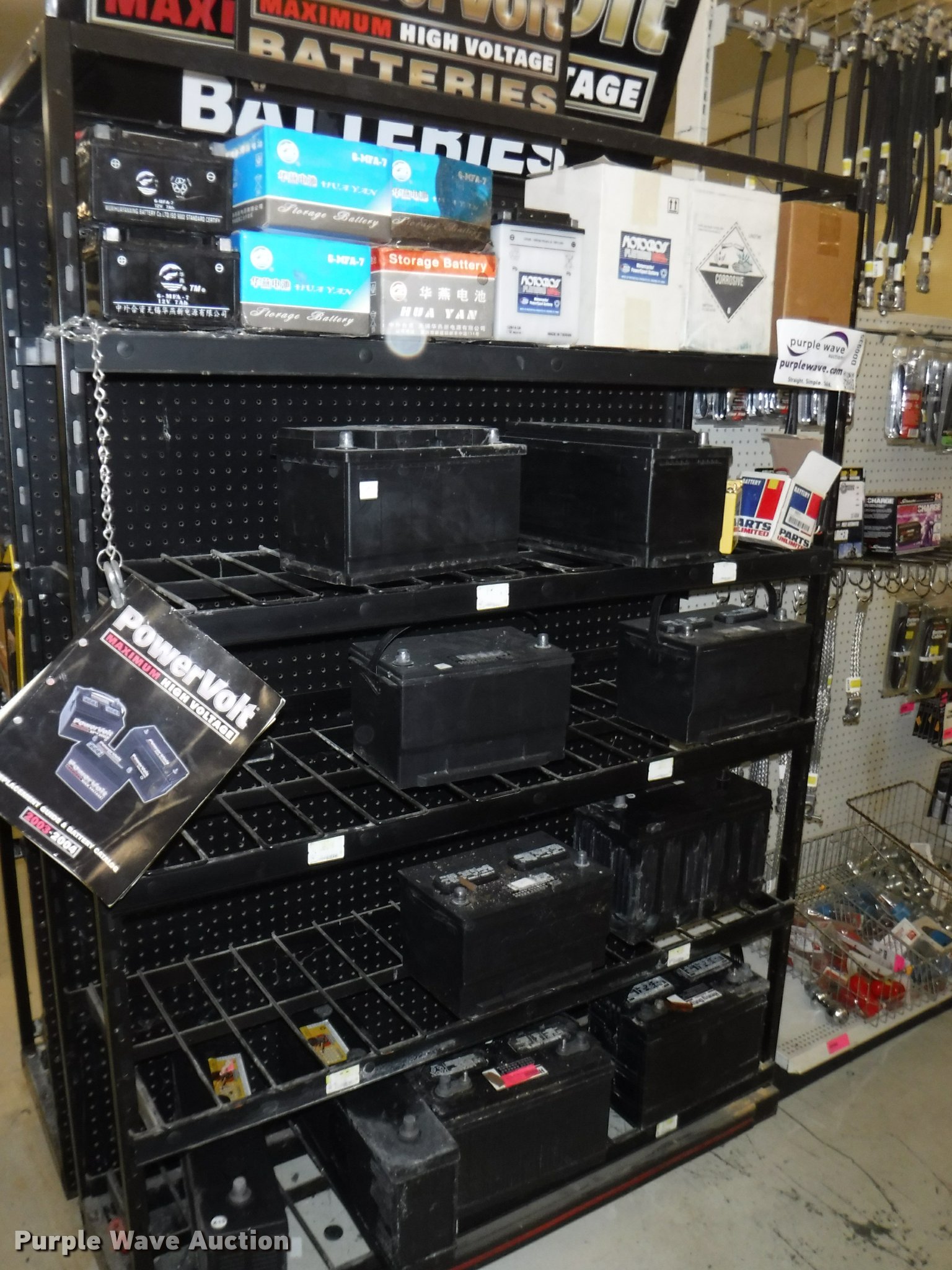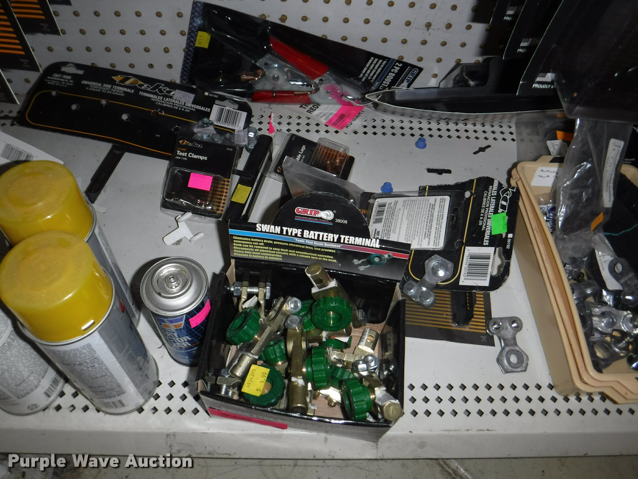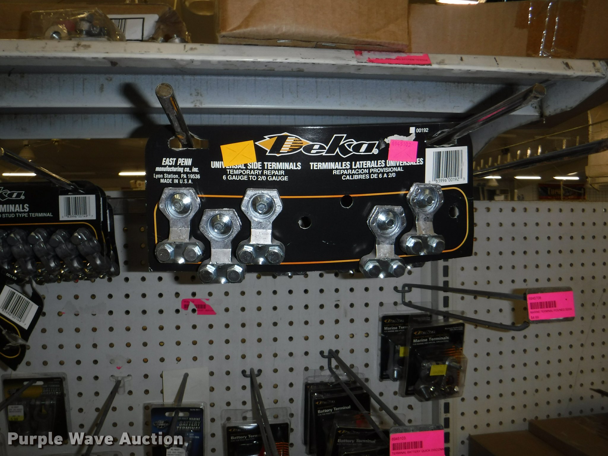 Purple Wave is selling a used Tools in Missouri. This item is a Battery center accessories with the following: (25) batteries, Motorcycle, Vehicle, Tractor, (2) battery chargers, 2 to 4 amp, 6 amp, Approx. 2,478 battery cables, Battery post cleaner tools, Post protectors and kits, Posts, Adapters, Lugs, Clamps, Terminals, Schummacher 10/30/200 amp charger