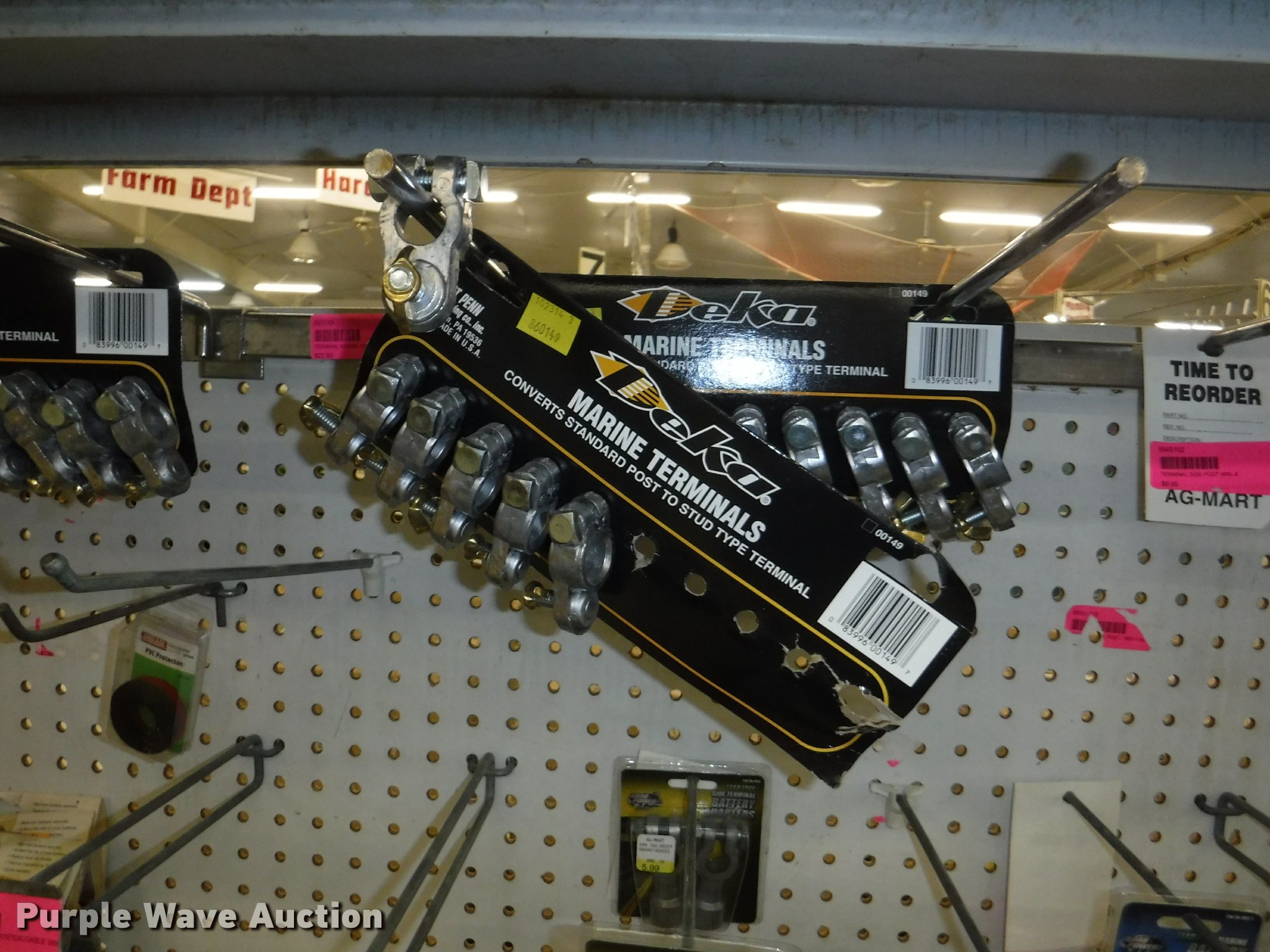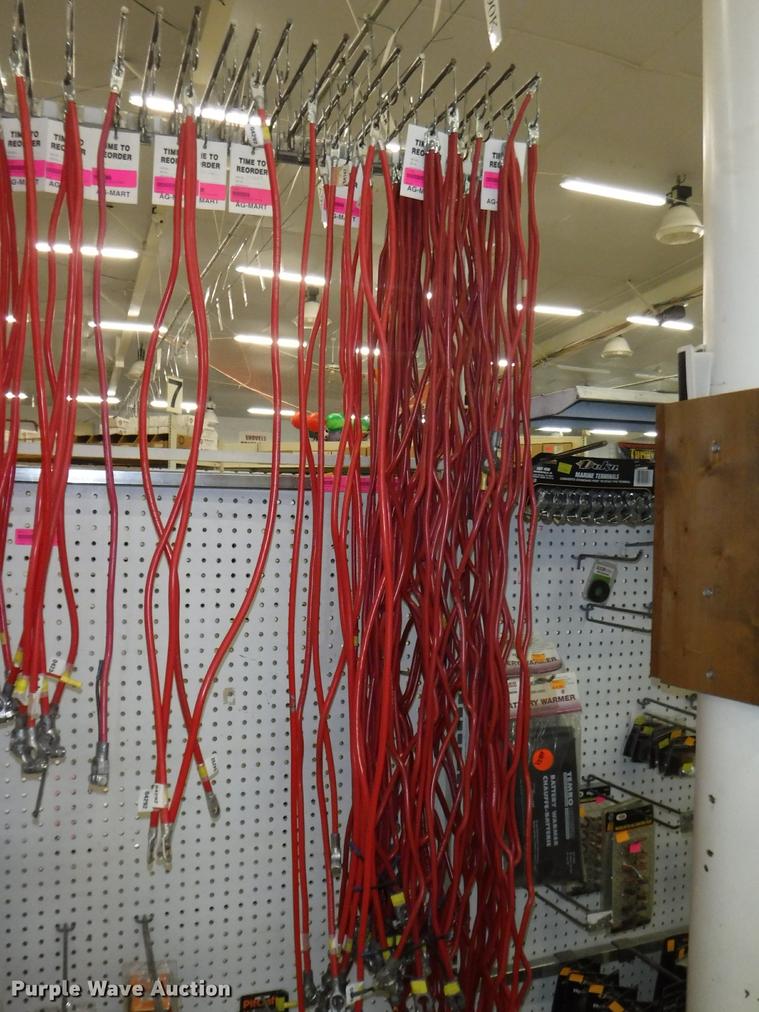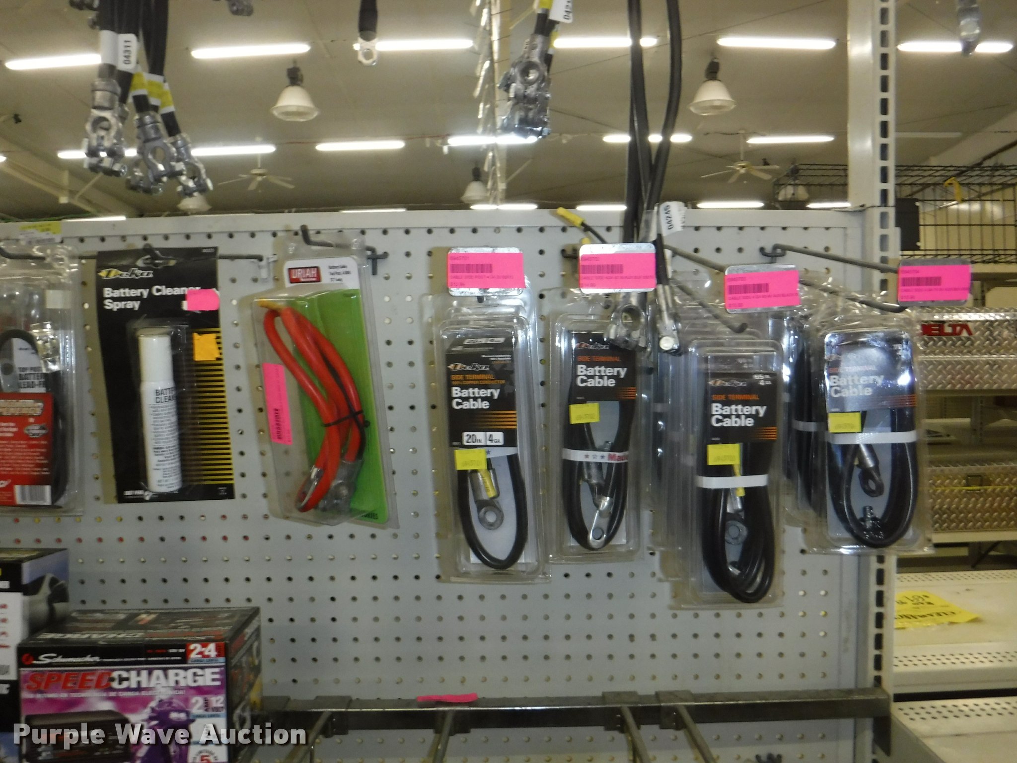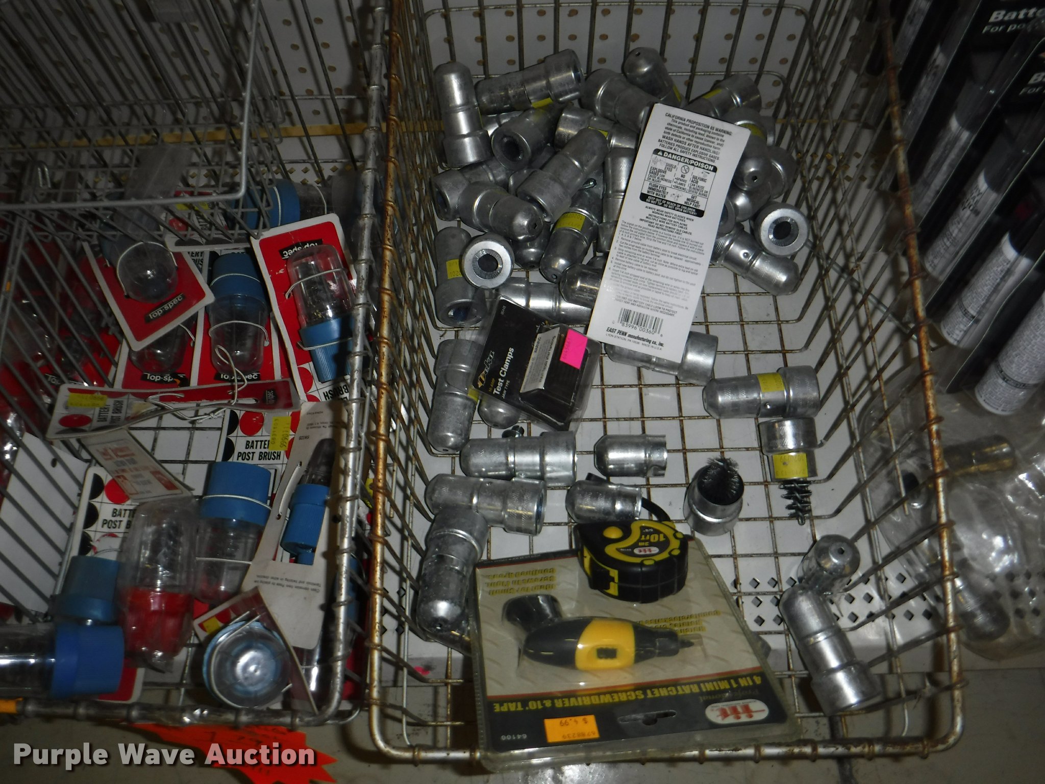 Battery center accessories. (25) batteries Motorcycle, Vehicle, Tractor, (2) battery chargers 2 to 4 amp, 6 amp, Approx. 2,478 battery cables, Battery post cleaner tools, Post protectors and kits, Posts, Adapters, Lugs, Clamps, Terminals, Schummacher 10/30/200 amp charger. AgMart Sales. 2832 E Malone Ave. Sikeston, MO 63801