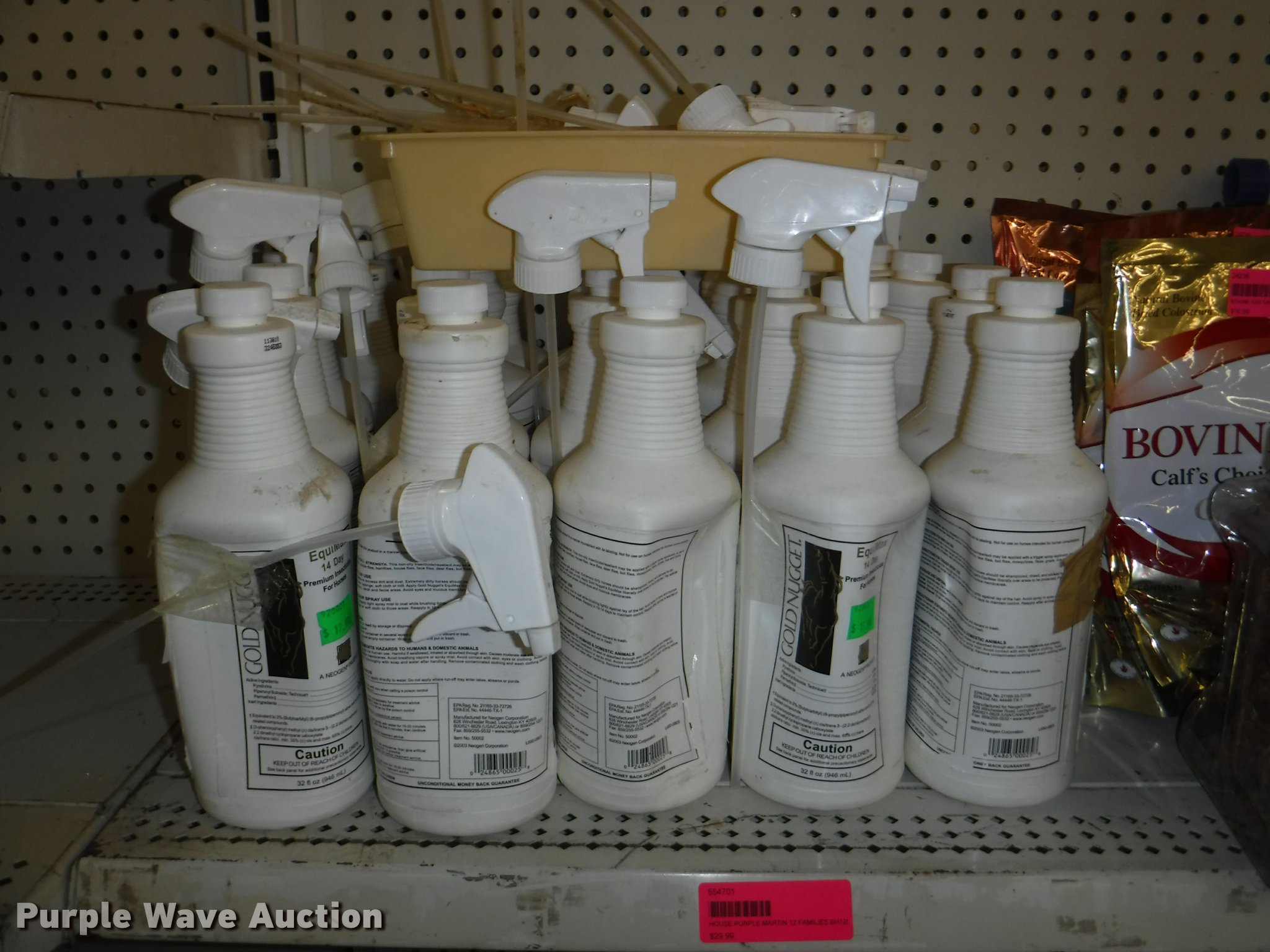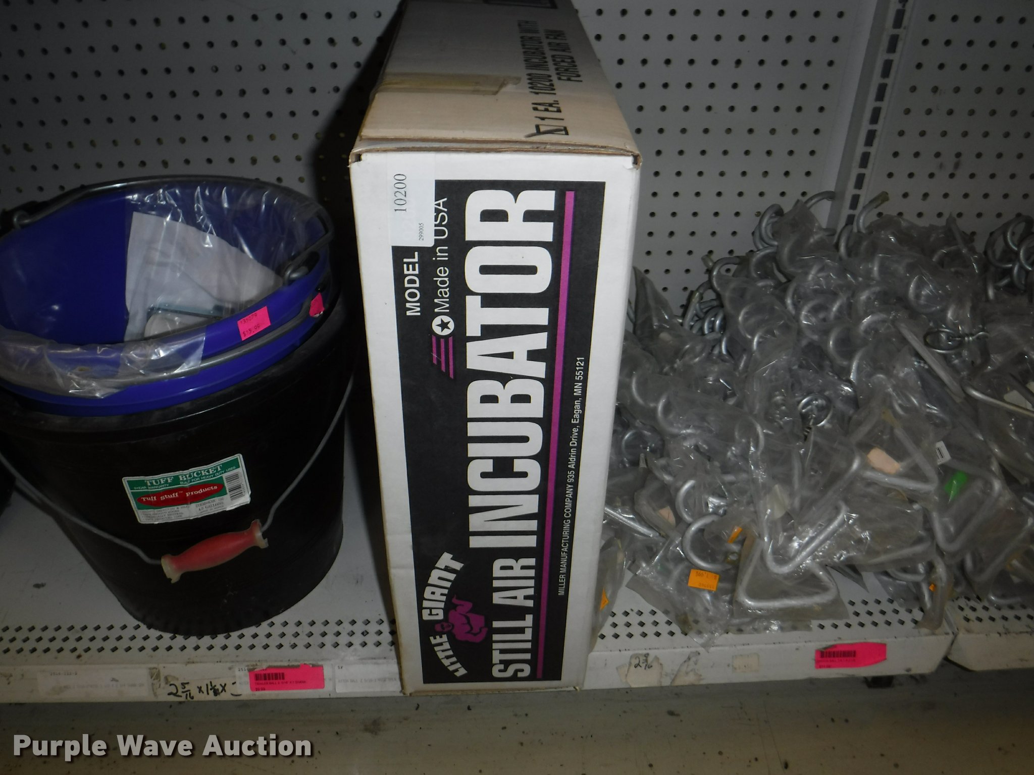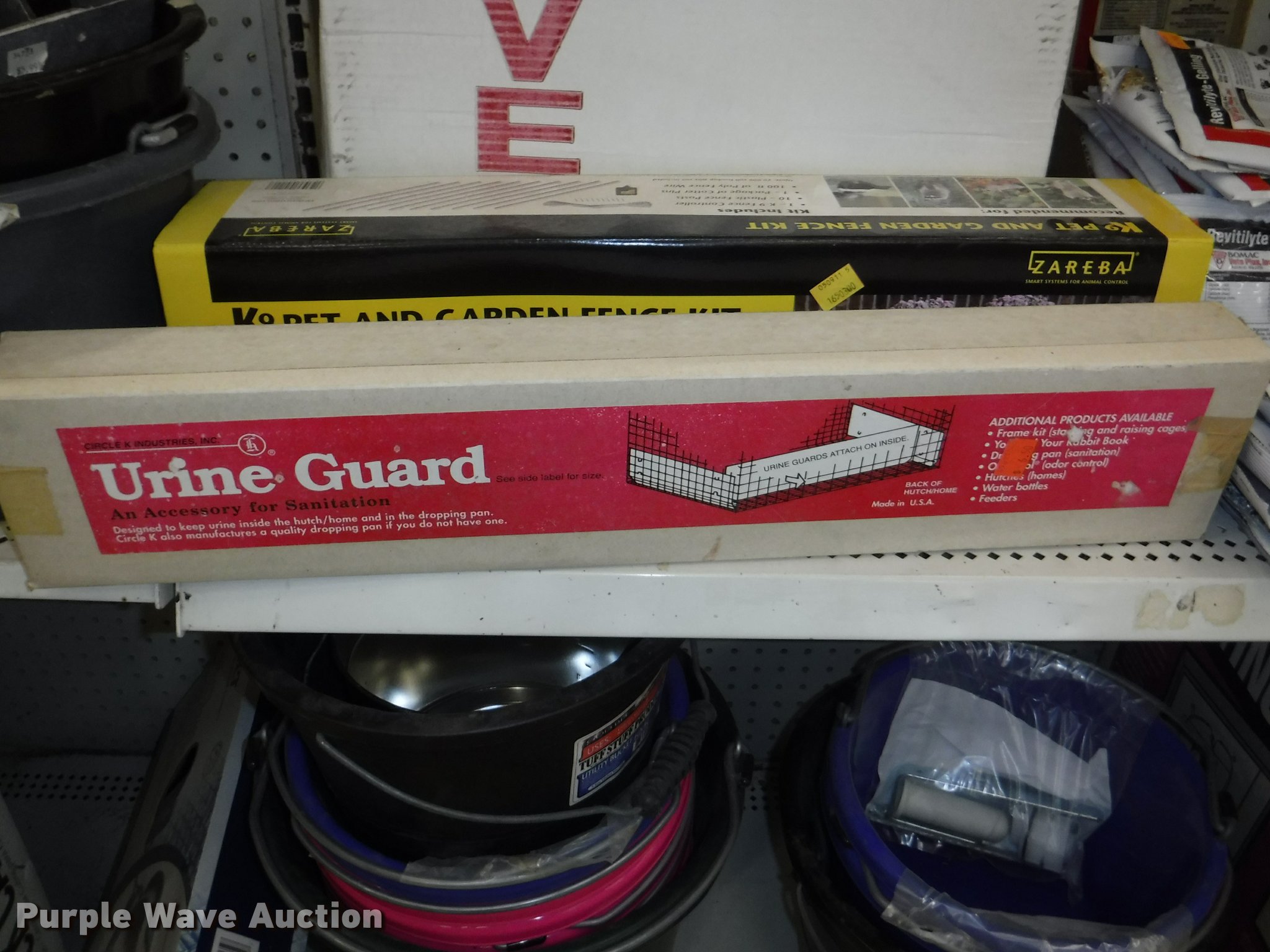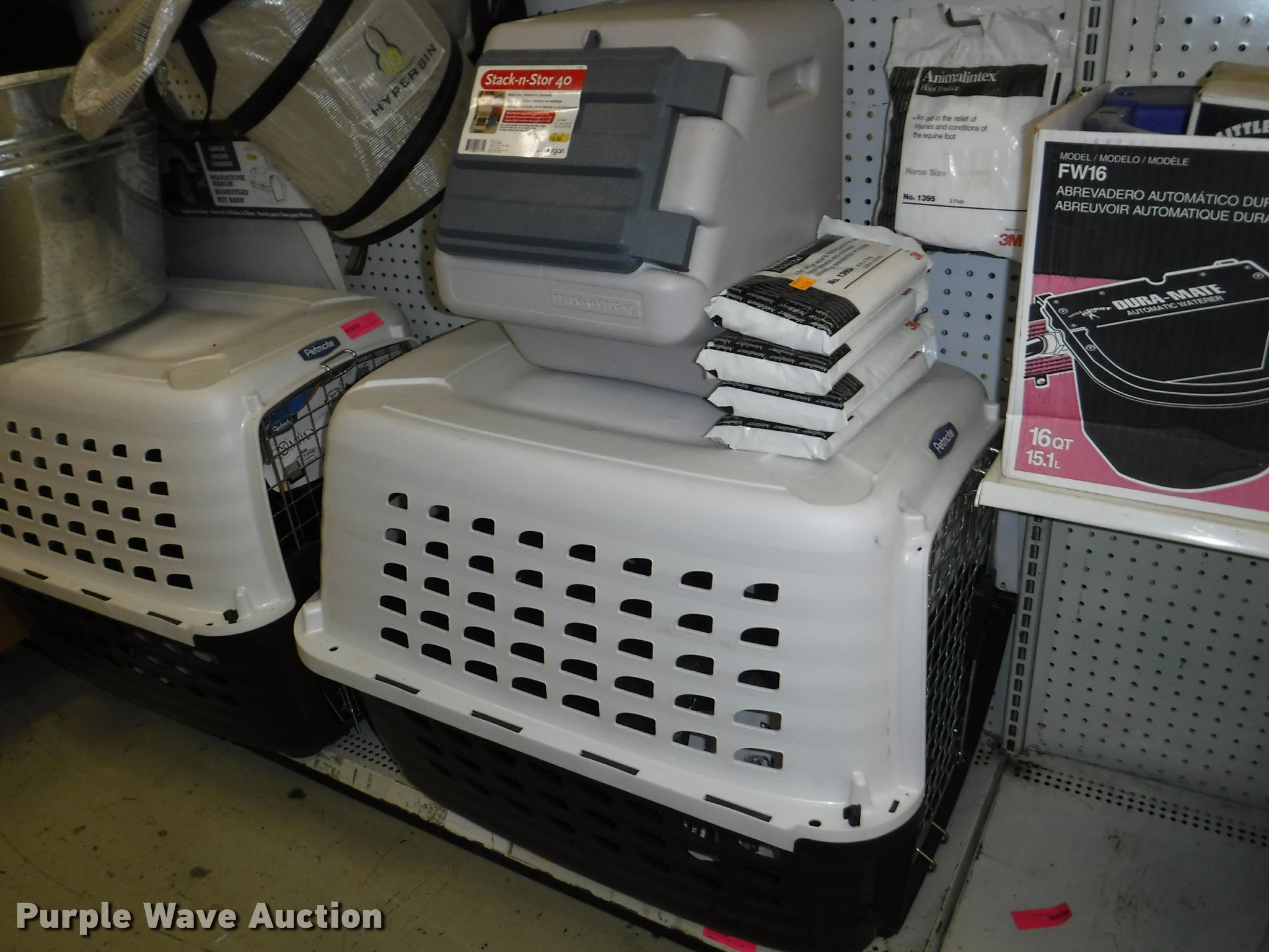 Purple Wave is selling a used Livestock Equip. in Missouri. This item is a Livestock equipment with the following: (78) mineral blocks, (5) alfalfa cubes, 20 lbs bags, (8) pet carriers, 50 lbs salt bags, (2) Chicken hutches, (6) frame kits, Poultry feeder/waterers, (4) aluminum trash cans, (2) Dogloo mats, Livestock syringes, 3cc, 5cc, 50cc to 60cc, (7) 25' rolls of poultry fence, (20) 14 day Equimax, Horse treats, Bovine milk supplements, (22) trailer and stall disinfectant, Live animal trap, Stain/odor eliminator, Bite away, Puppy food, Cattle ear tags and insecticide, Leg support padding, Soothing liniment, Ezee portable corral, Simmons water hydrant, (11) collapsible dog boxes, Buckets, Stack-n-Stor 40, Wall mounted dispenser, (2) Hyper feed bins, Halters, Automatic waterers, Revitilyte calf supplement, Muck cart, Weatherguard kennel cover, Little Giant incubator, Sandman fish filter cartridges, Hartz double breeders, Stake tie-outs, Fish and turtle food, Heater water bottles, Cat toys and beds, Bark collars, (3) cat treat jars, Brushes, Dog collars and leashes, Thermo beds, Handy Camel bag clips, Food bowls, Watering bowl and fountain, Flea and tick collars, Ant bait traps, Rodent traps and bait, Mole traps, Cat turbo scratchers, Litter liners, (2) clean up claws and more