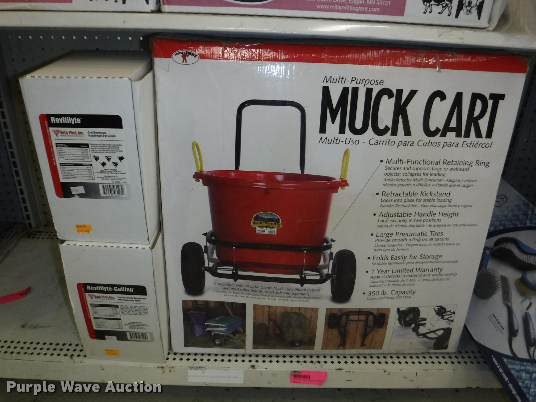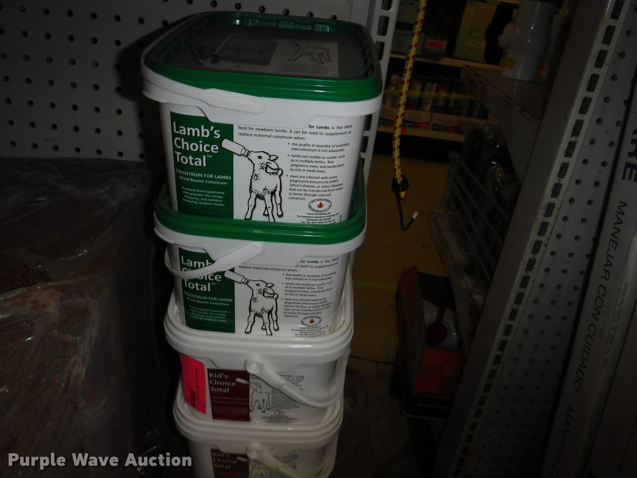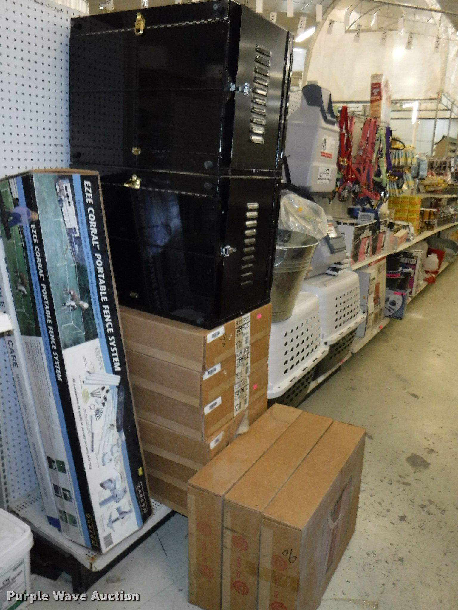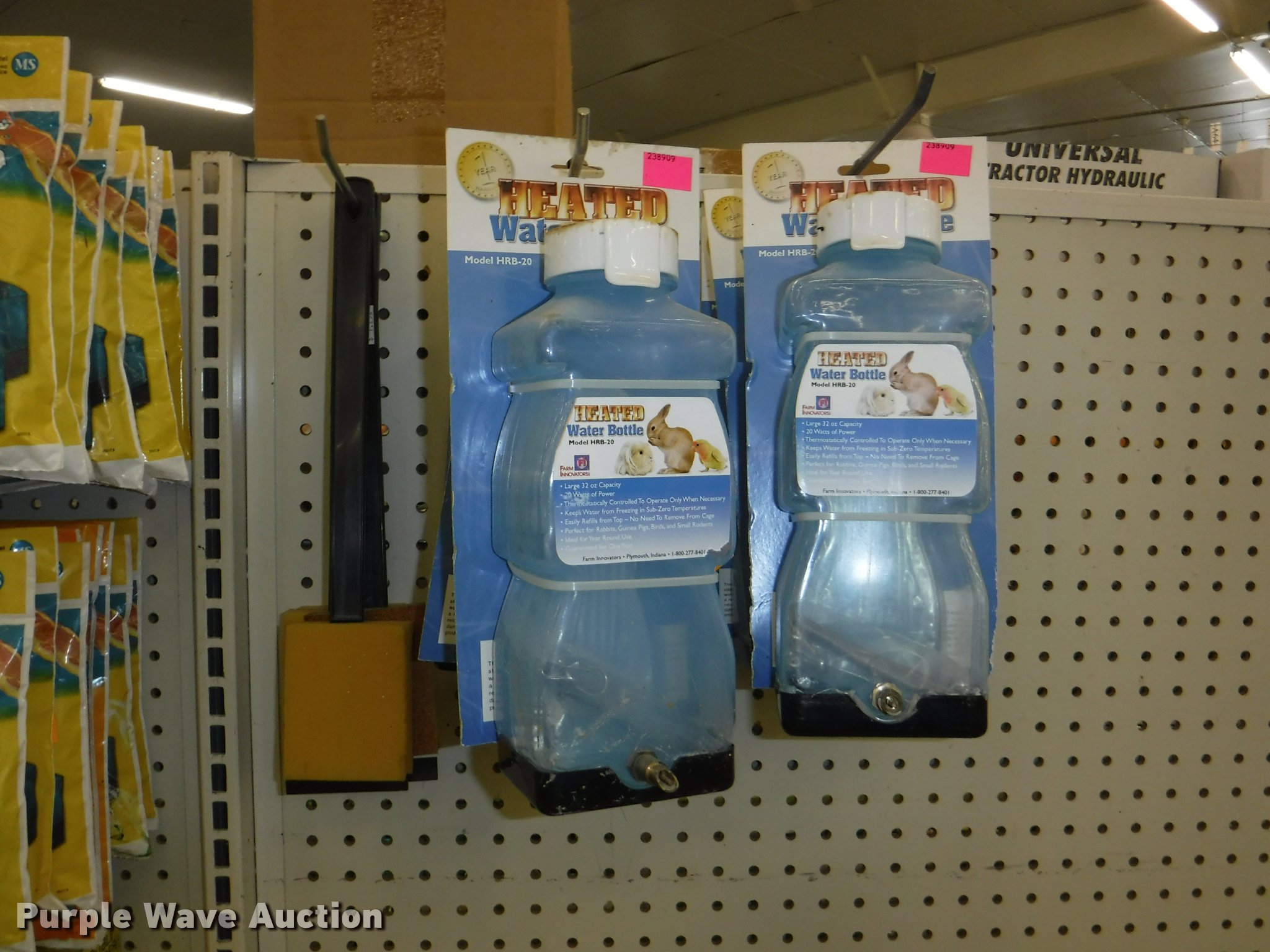 Purple Wave is selling a used Livestock Equip. in Missouri. This item is a Livestock equipment with the following: (78) mineral blocks, (5) alfalfa cubes, 20 lbs bags, (8) pet carriers, 50 lbs salt bags, (2) Chicken hutches, (6) frame kits, Poultry feeder/waterers, (4) aluminum trash cans, (2) Dogloo mats, Livestock syringes, 3cc, 5cc, 50cc to 60cc, (7) 25' rolls of poultry fence, (20) 14 day Equimax, Horse treats, Bovine milk supplements, (22) trailer and stall disinfectant, Live animal trap, Stain/odor eliminator, Bite away, Puppy food, Cattle ear tags and insecticide, Leg support padding, Soothing liniment, Ezee portable corral, Simmons water hydrant, (11) collapsible dog boxes, Buckets, Stack-n-Stor 40, Wall mounted dispenser, (2) Hyper feed bins, Halters, Automatic waterers, Revitilyte calf supplement, Muck cart, Weatherguard kennel cover, Little Giant incubator, Sandman fish filter cartridges, Hartz double breeders, Stake tie-outs, Fish and turtle food, Heater water bottles, Cat toys and beds, Bark collars, (3) cat treat jars, Brushes, Dog collars and leashes, Thermo beds, Handy Camel bag clips, Food bowls, Watering bowl and fountain, Flea and tick collars, Ant bait traps, Rodent traps and bait, Mole traps, Cat turbo scratchers, Litter liners, (2) clean up claws and more