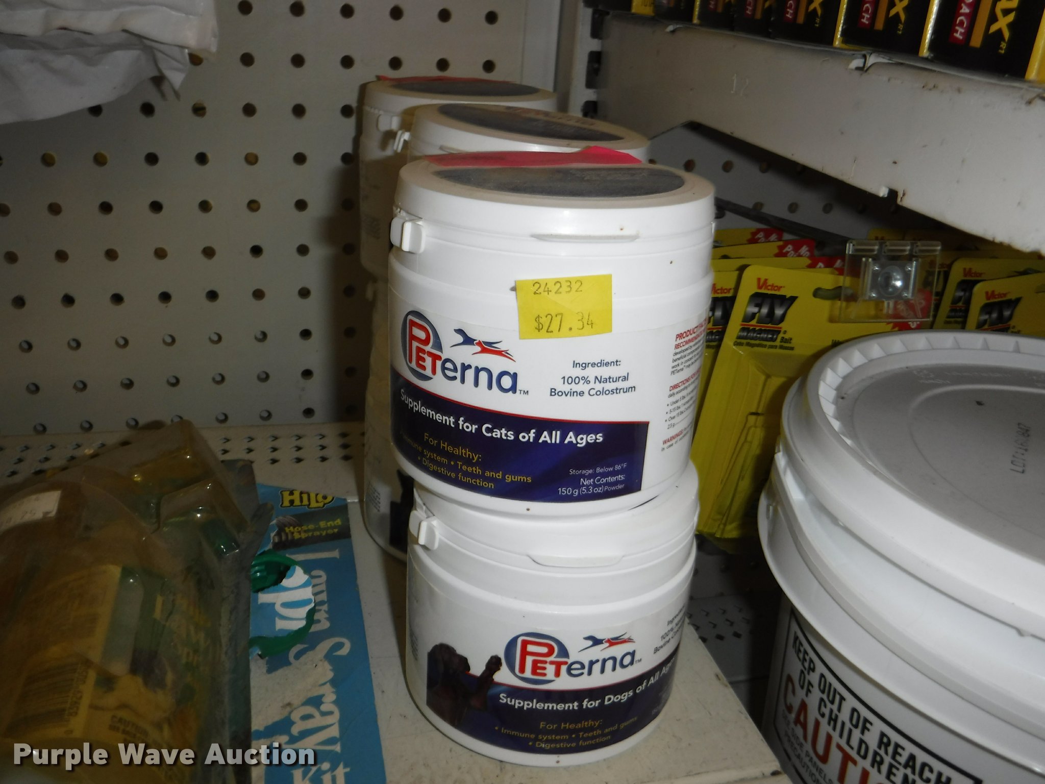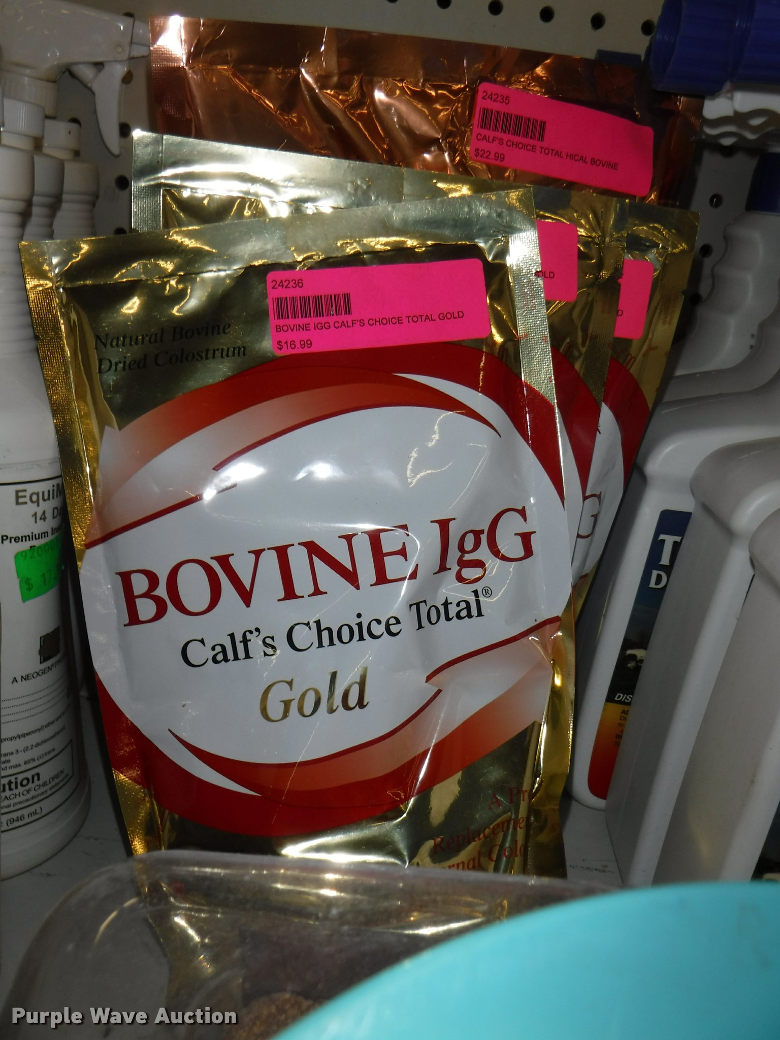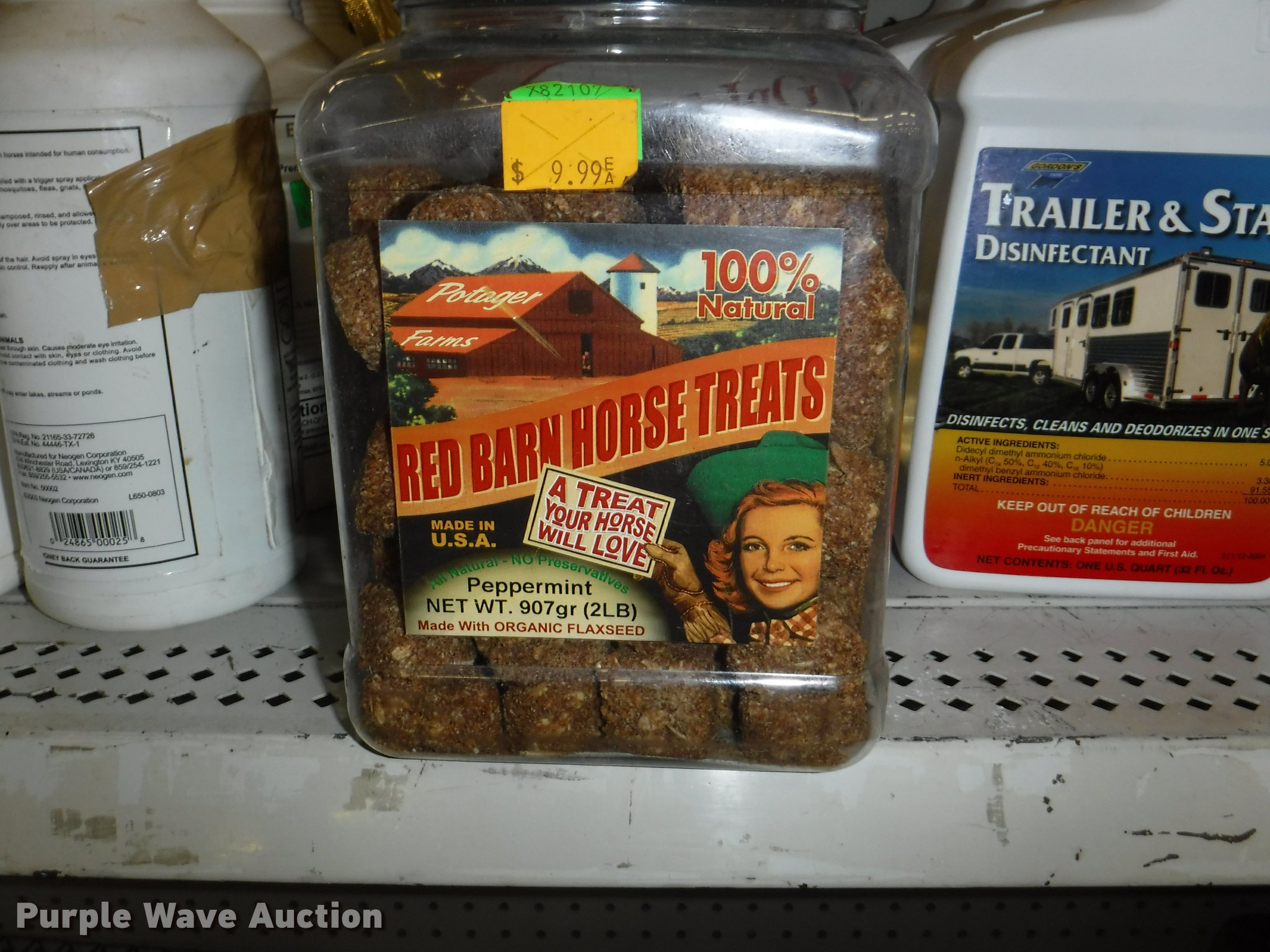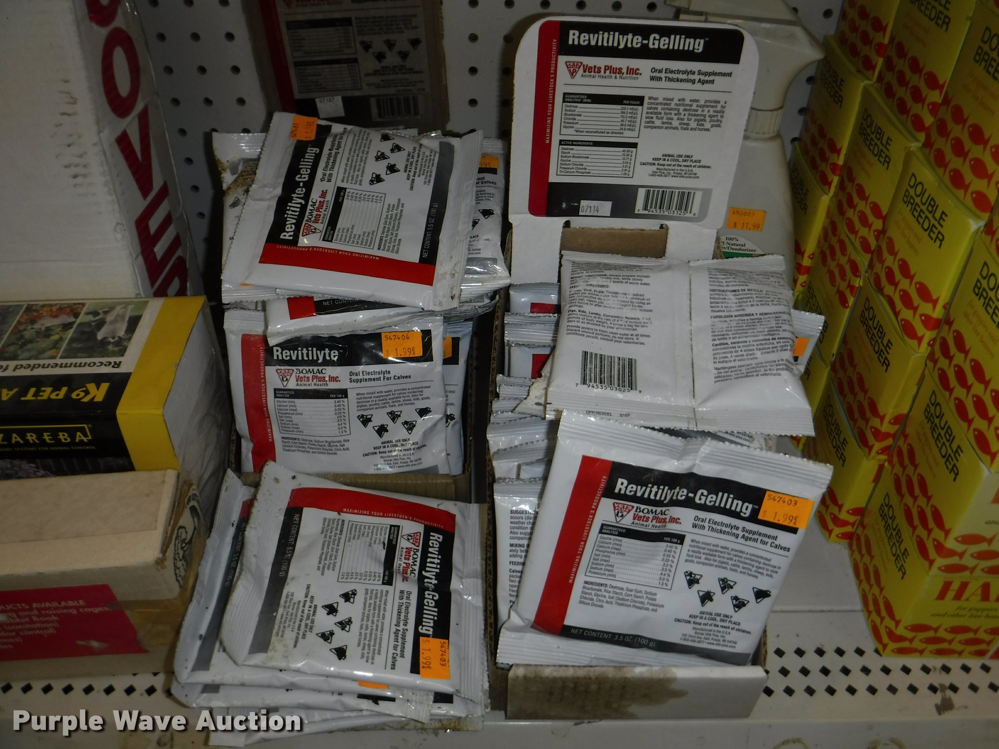 Purple Wave is selling a used Livestock Equip. in Missouri. This item is a Livestock equipment with the following: (78) mineral blocks, (5) alfalfa cubes, 20 lbs bags, (8) pet carriers, 50 lbs salt bags, (2) Chicken hutches, (6) frame kits, Poultry feeder/waterers, (4) aluminum trash cans, (2) Dogloo mats, Livestock syringes, 3cc, 5cc, 50cc to 60cc, (7) 25' rolls of poultry fence, (20) 14 day Equimax, Horse treats, Bovine milk supplements, (22) trailer and stall disinfectant, Live animal trap, Stain/odor eliminator, Bite away, Puppy food, Cattle ear tags and insecticide, Leg support padding, Soothing liniment, Ezee portable corral, Simmons water hydrant, (11) collapsible dog boxes, Buckets, Stack-n-Stor 40, Wall mounted dispenser, (2) Hyper feed bins, Halters, Automatic waterers, Revitilyte calf supplement, Muck cart, Weatherguard kennel cover, Little Giant incubator, Sandman fish filter cartridges, Hartz double breeders, Stake tie-outs, Fish and turtle food, Heater water bottles, Cat toys and beds, Bark collars, (3) cat treat jars, Brushes, Dog collars and leashes, Thermo beds, Handy Camel bag clips, Food bowls, Watering bowl and fountain, Flea and tick collars, Ant bait traps, Rodent traps and bait, Mole traps, Cat turbo scratchers, Litter liners, (2) clean up claws and more