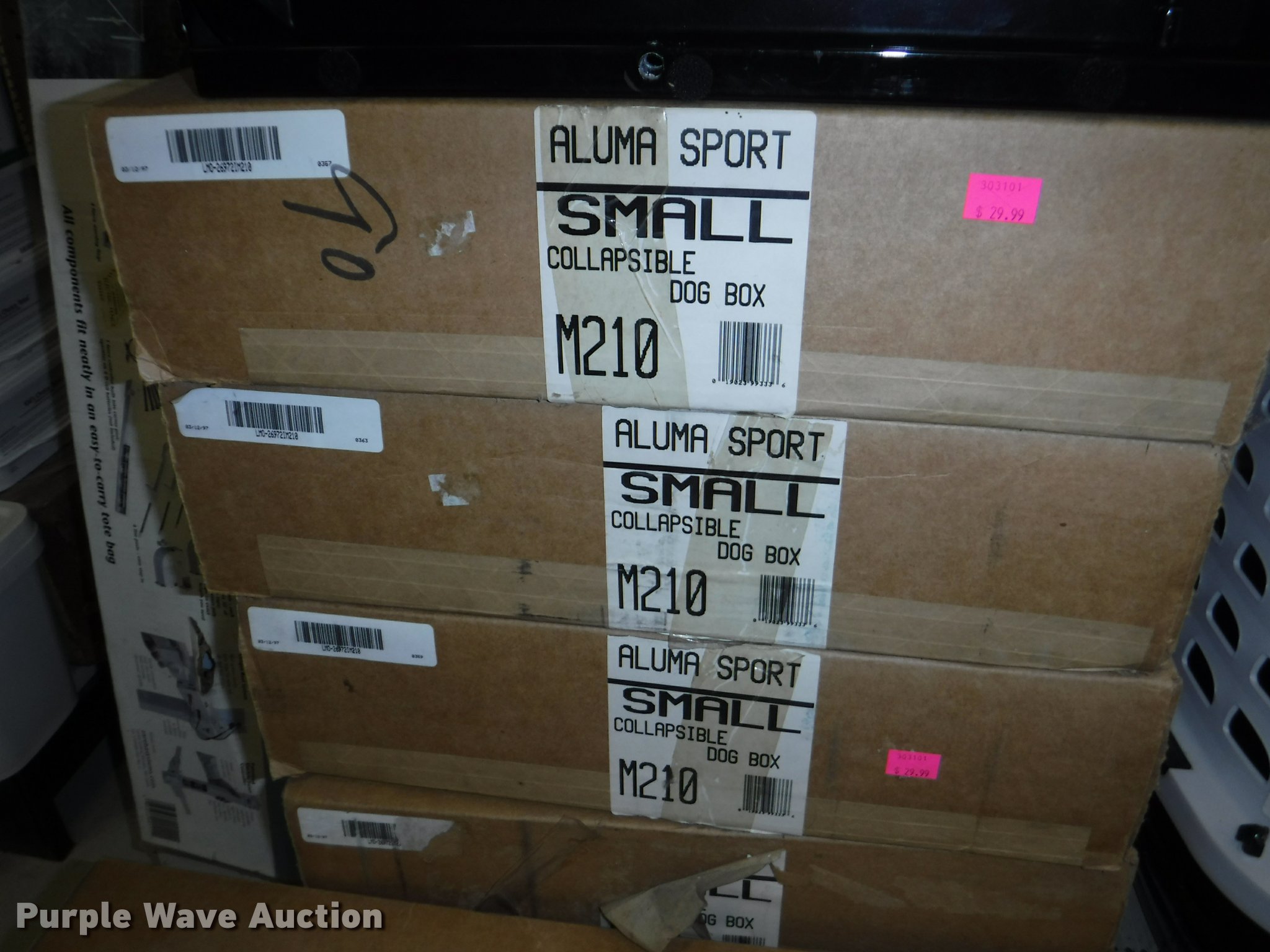 - (11) collapsible dog boxes