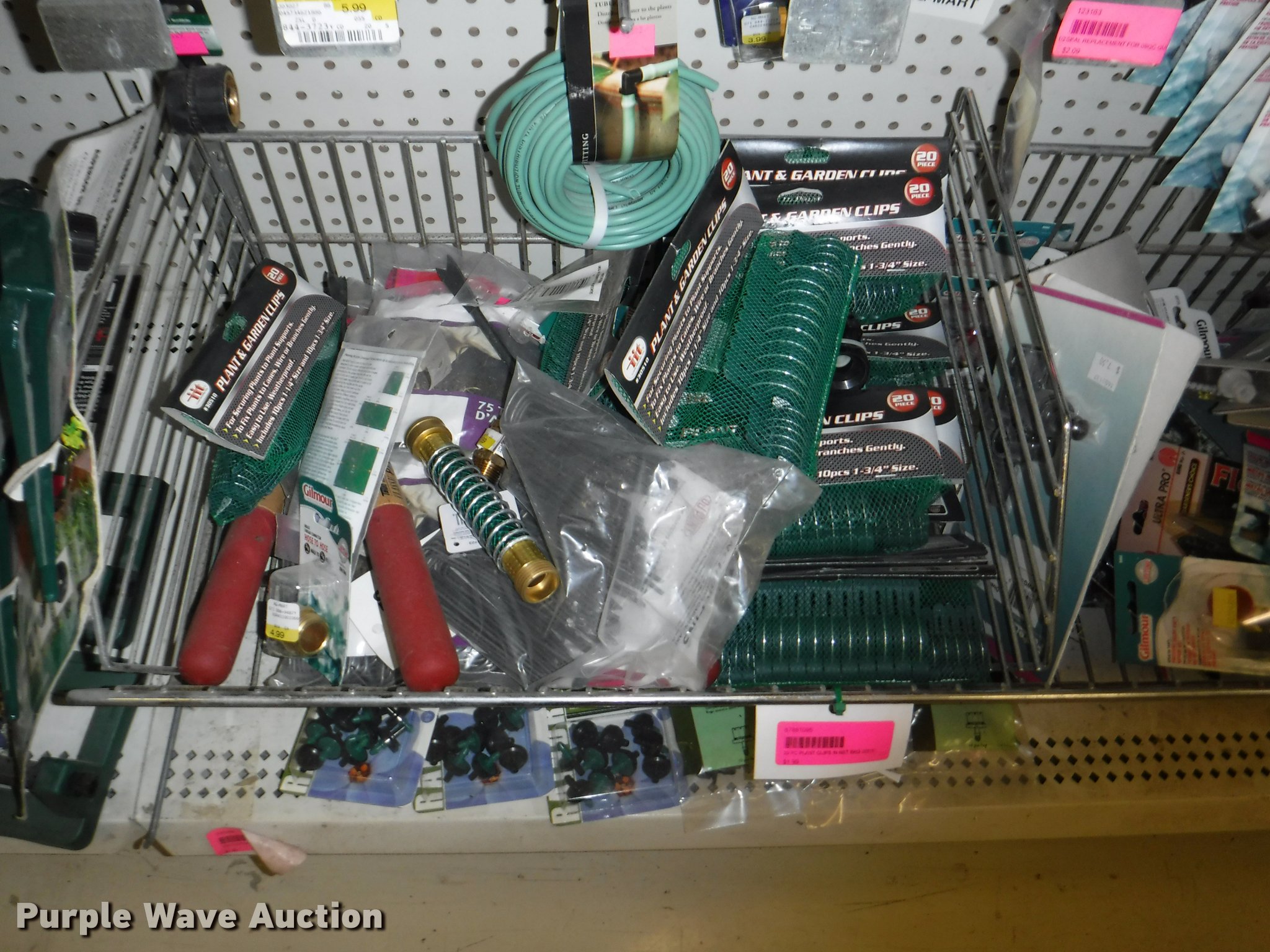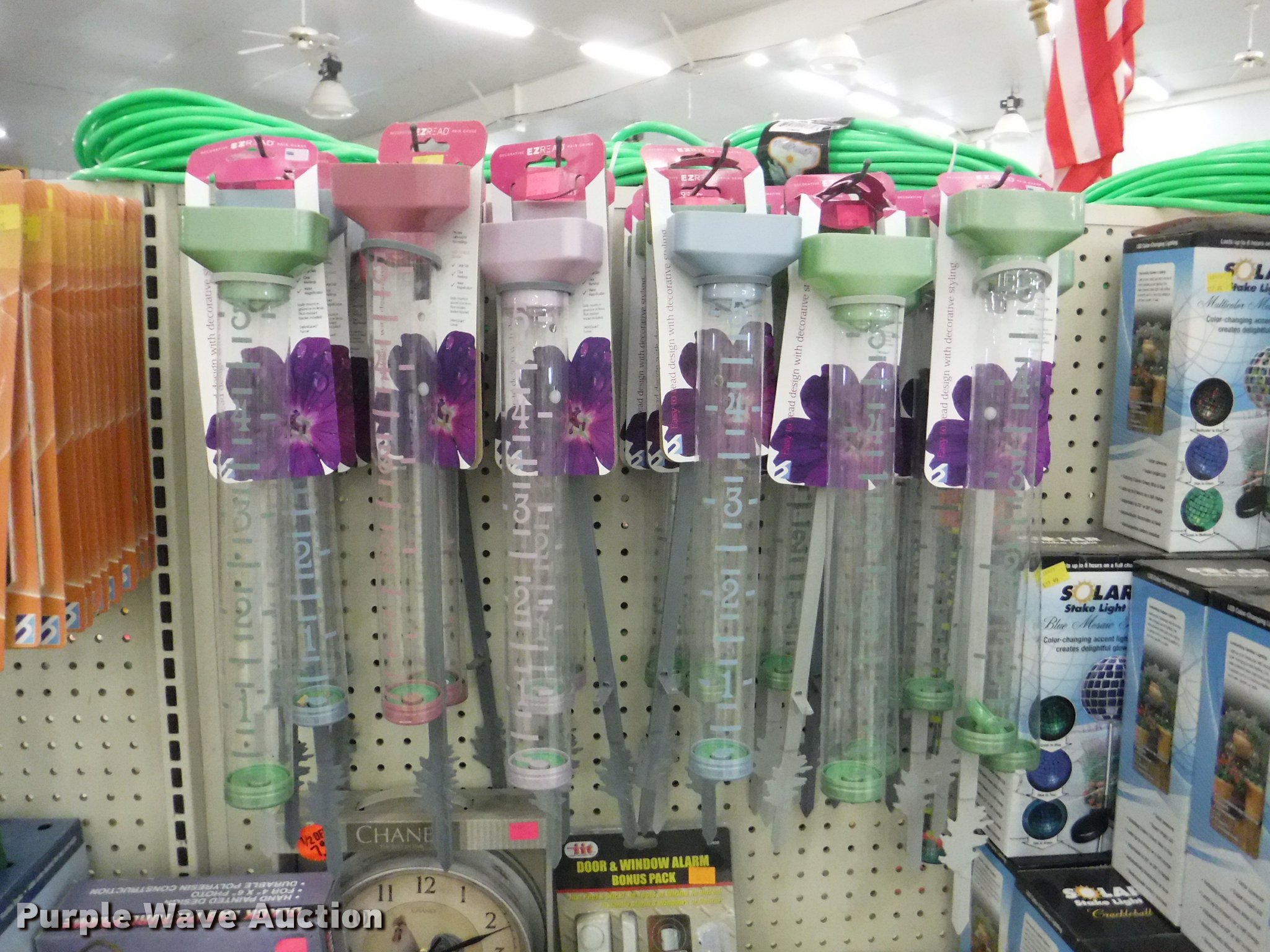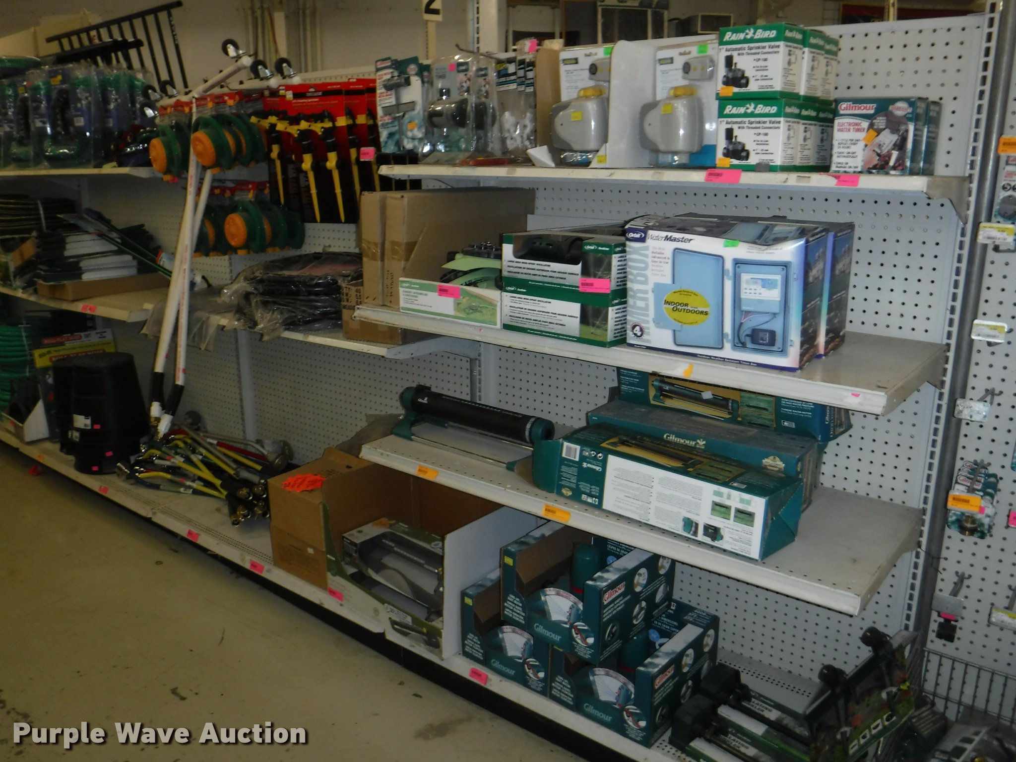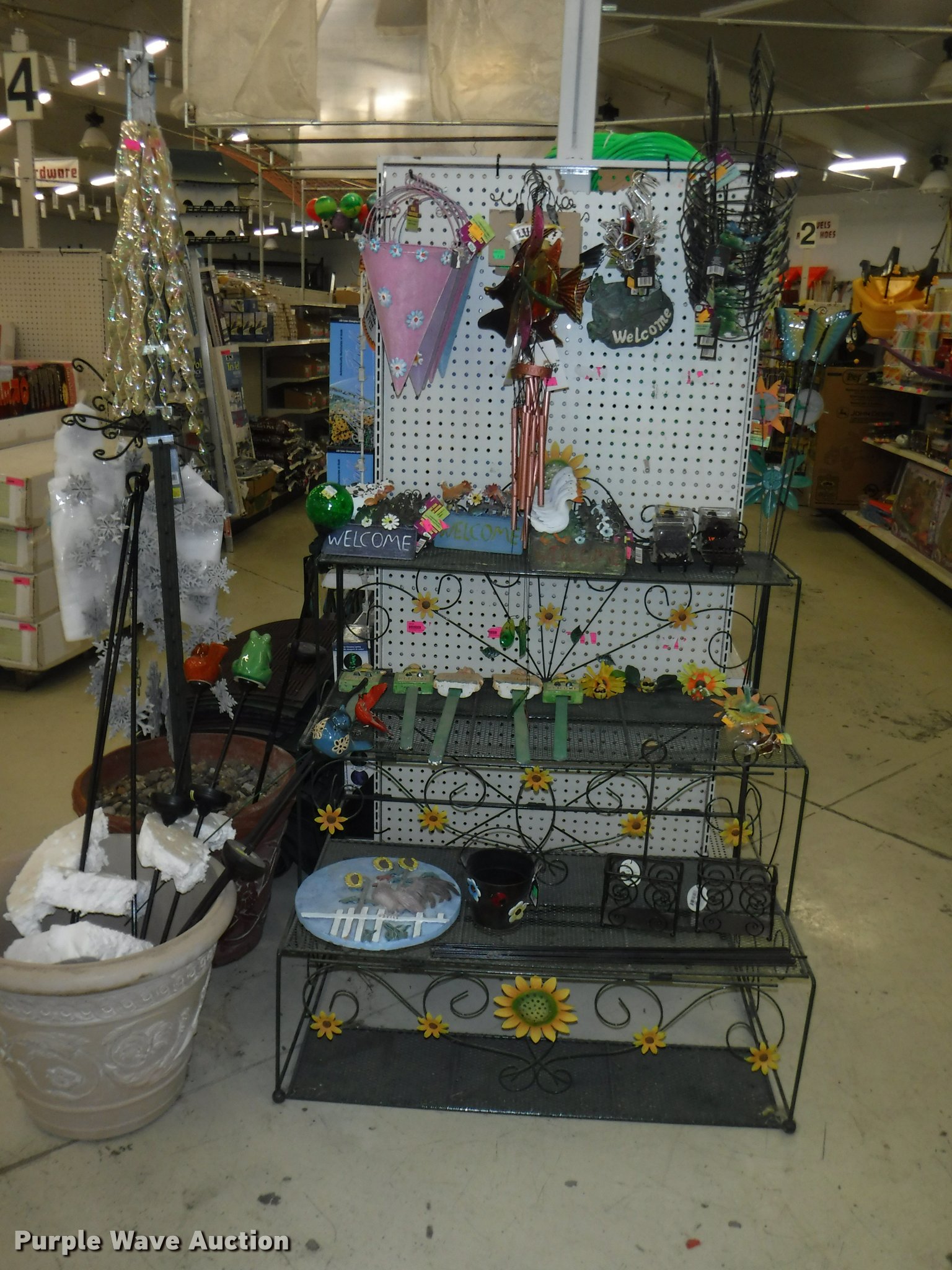 Purple Wave is selling a used Lawn and Garden in Missouri. This item is a Lawn and garden accessories with the following: Solar stake globes and lights, Door mats, Rain gauges, Thermometers, Wind chimes, Irrigation parts, Hose couplers and connectors, Sprinklers, Hose wands, Trash grabbers, 50' hose sets, Hose hangers, (25) water hoses, Pond filter, Greenhouse, Needs to be disassembled, Pond chemicals, (16) greenhouses in boxes, One display model